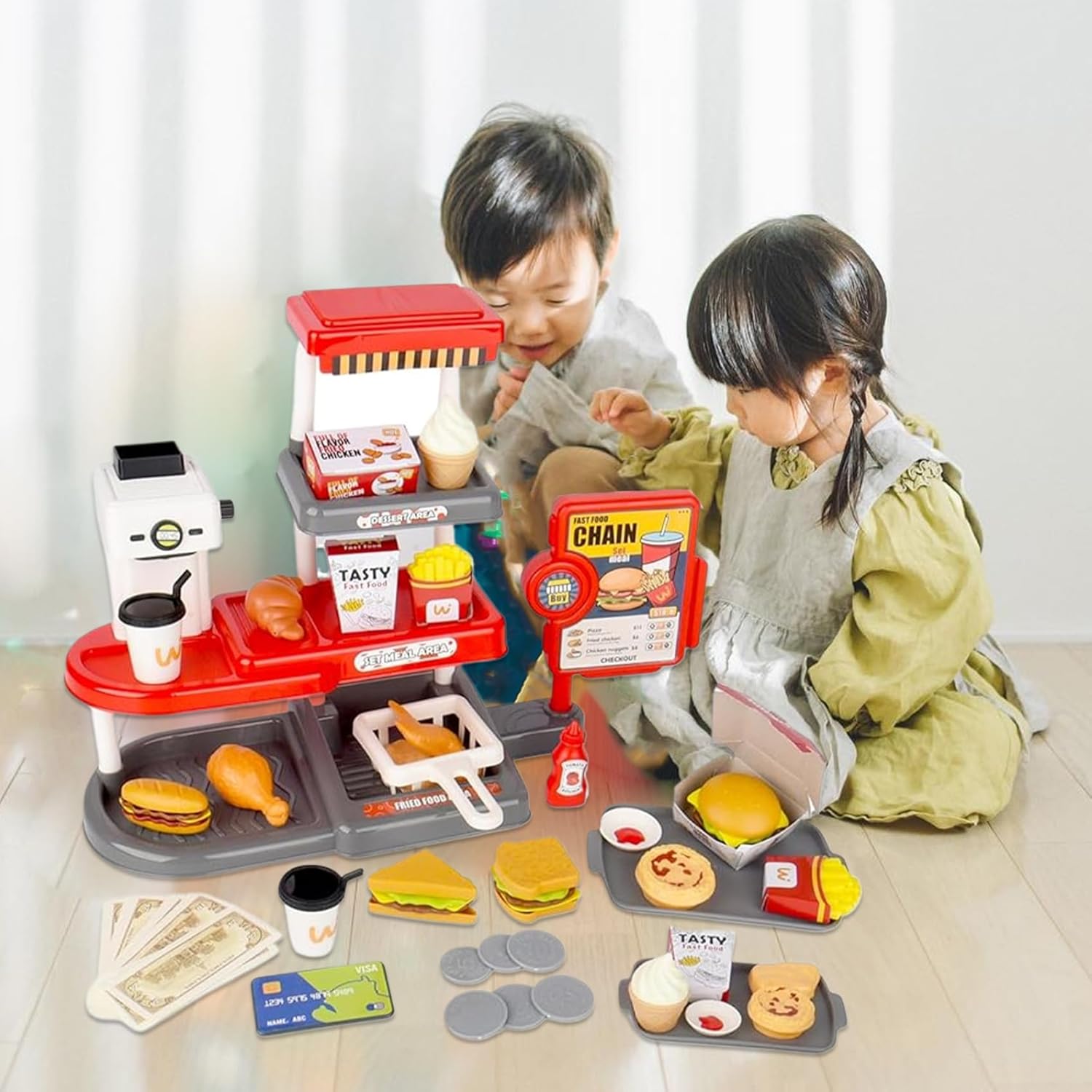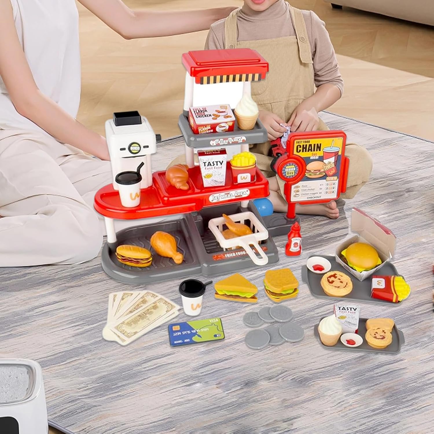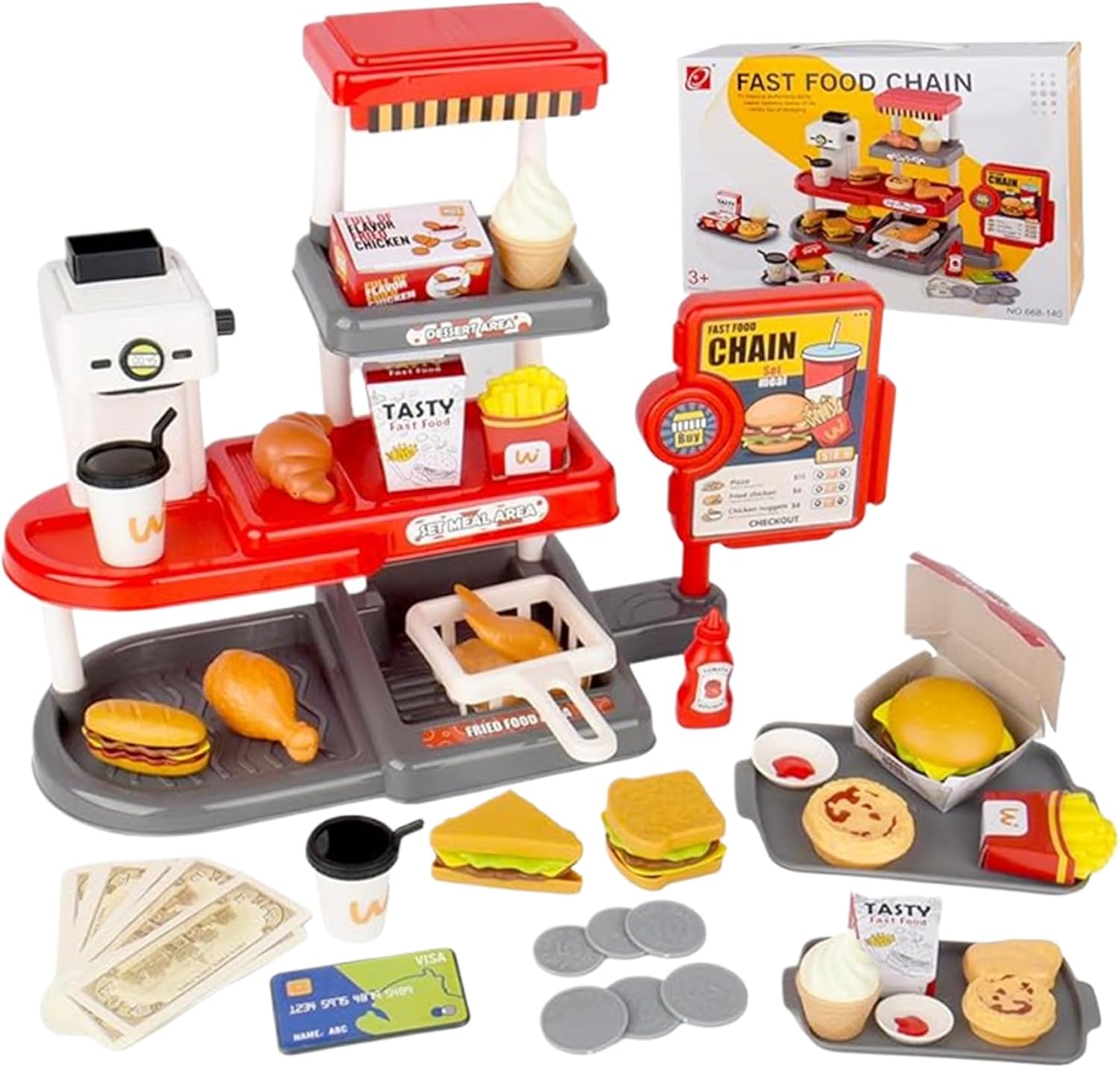 Materiali plastici sicuri: realizzato in plastica atossica e di qualità, questo set di giocattoli da cucina è sicuro per i bambini dai 3 anni in su..La struttura garantisce che possa resistere a giochi difficili, offrendo intrattenimento di lunga durata per i tuoi piccoli. Perfetto per i bambini: questo set da gioco da cucina è l'ideale per compleanni, vacanze o qualsiasi occasione speciale..Le sue funzionalità complete e gli elementi interattivi delizieranno sicuramente i bambini, offrendo ore di gioco fantasioso e divertimento. Set completo da 71 pezzi: questo set da gioco da cucina per bambini comprende 71 pezzi, offrendo una gamma di giocattoli per stimolare il gioco fantasioso..Dal distributore d'acqua, al registratore di cassa, all'hamburger e ad altri alimenti per il gioco, questo set fornisce tutto ciò di cui i bambini hanno bisogno per un'esperienza di cucina completa. Interattivo e coinvolgente: progettato con funzionalità alimentate a batteria, questo set da gioco include suoni che imitano i veri elettrodomestici da cucina, migliorando l'esperienza interattiva..I bambini adoreranno i rumori realistici, rendendo il loro tempo di gioco più coinvolgente e divertente. Educativo e di sviluppo: giocare con questo set da cucina aiuta i bambini a sviluppare abilità essenziali come la coordinazione occhio-mano, le capacità motorie e l'interazione sociale..Incoraggia il gioco di ruolo e la creatività, rendendolo un eccellente strumento educativo per le giovani menti.