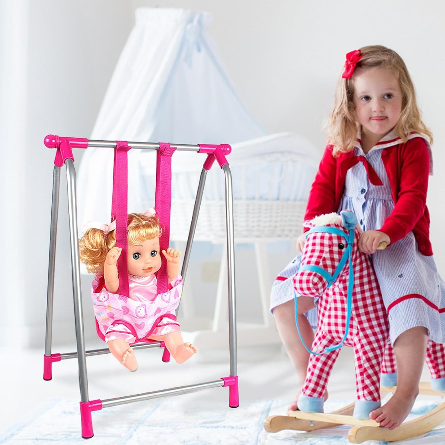 Design incantevole e colorato: questo set di carrozzine per bambole ha colori carini e vivaci e stampe a cuore uniche che gli conferiscono un design incantevole e colorato. La stampa arcobaleno abbagliante aggiunge fascino e bellezza al set rendendolo irresistibile per i bambini. Ideale per giochi di ruolo: con questo set di passeggini per bambole, i tuoi bambini possono divertirsi a fingere di essere mamma o papà e portare la loro bambola neonata ovunque tu vada. Puoi mettere il tuo peluche preferito sul passeggino e goderti il viaggio. Ore di divertimento e creatività: questo set di carrozzine per bambole è perfetto per i veri giochi dell'asilo, in modo che le bambine possano vivere l'immaginazione dei loro bambini e offrire ore di gioco di ruolo. Ideale da regalare: sorprendi i tuoi piccoli con questo giocattolo realistico con cui giocare con le loro bambole preferite mamma o papà. Questo set di passeggino per bambole è perfetto per le ragazze che amano giocare di ruolo e inventare. È un ottimo regalo di compleanno o di Natale che farà sorridere il loro viso. Giocattoli per la scuola materna: il tuo bambino adorerà giocare con questo set di carrozzine per bambole, composto da una culla, un'altalena, un dondolo e un seggiolone. Il set incoraggia il gioco immaginativo e creativo.