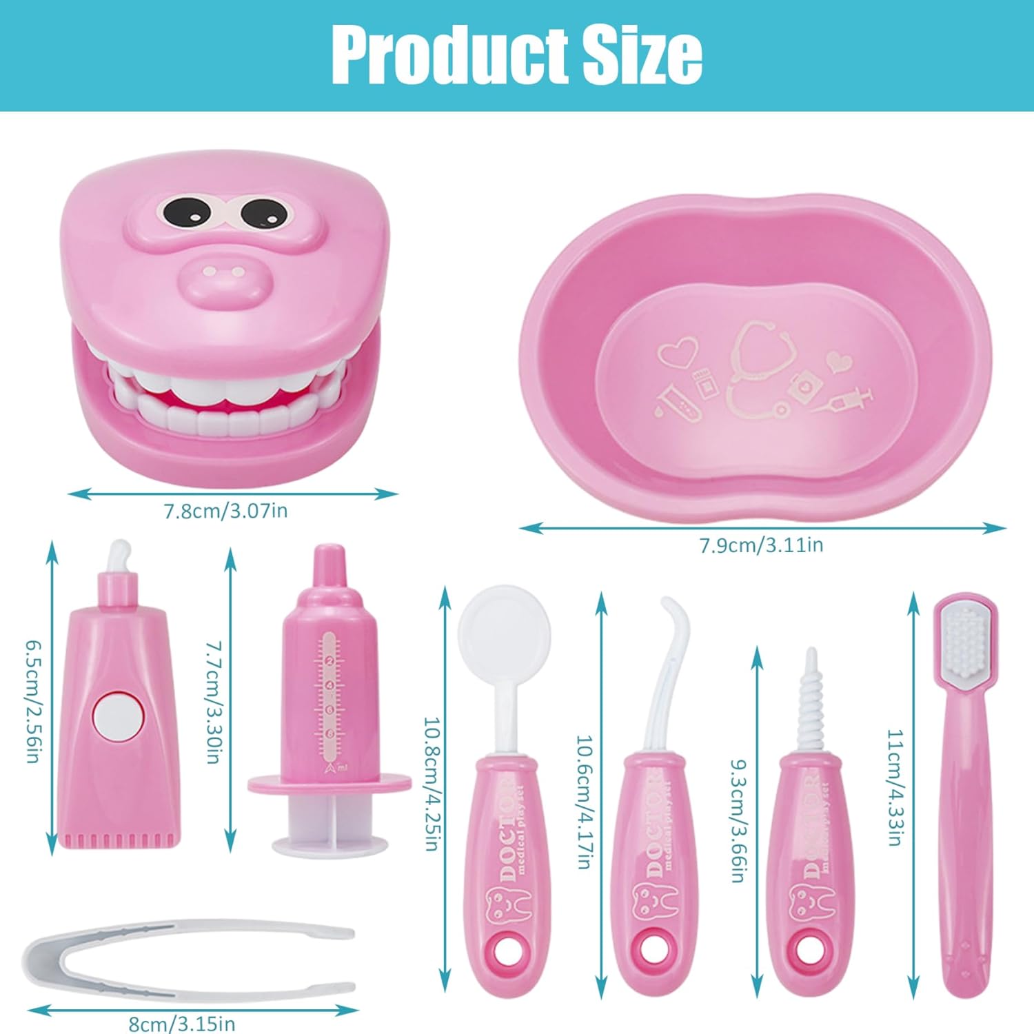 Educativo e divertente: non solo il tuo bambino si divertirà a giocare al dentista, ma imparerà anche l'importanza dell'igiene dentale, delle cure dentistiche e di come un dentista aiuta le persone... È un ottimo modo per rendere piacevole l'apprendimento! Ideale per ragazzi e ragazze dai 4 anni in su: questo set da gioco dal dentista è perfetto per ragazzi e ragazze. È un'esperienza interattiva e pratica che intratterrà i bambini mentre svilupperà preziose abilità di vita. Incoraggia il gioco fantasioso: perfetto per stimolare la creatività, questo kit da dentista consente ai bambini di giocare nei panni di dentisti e pazienti. Incoraggia l'interazione sociale e il gioco fantasioso. Esperienza dentista realistica: questo set include strumenti dentisti essenziali, così tuo figlio può giocare di ruolo ed esercitare le proprie abilità dentista. È un ottimo modo per insegnare loro le cure dentistiche in modo divertente e coinvolgente. Design sicuro e liscio: realizzato con materiali ABS atossici con bordi lisci, questo set da gioco è sicuro per i bambini piccoli. Ogni pezzo è costruito per durare e per essere delicato sulle mani dei più piccoli.