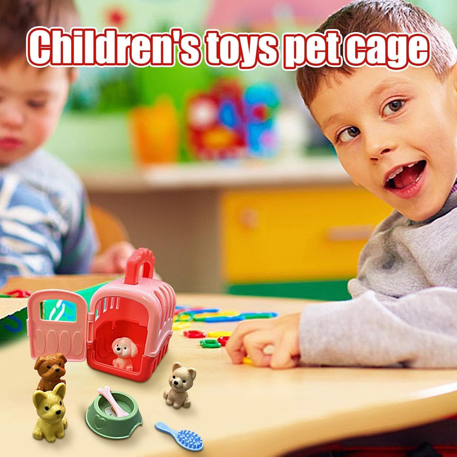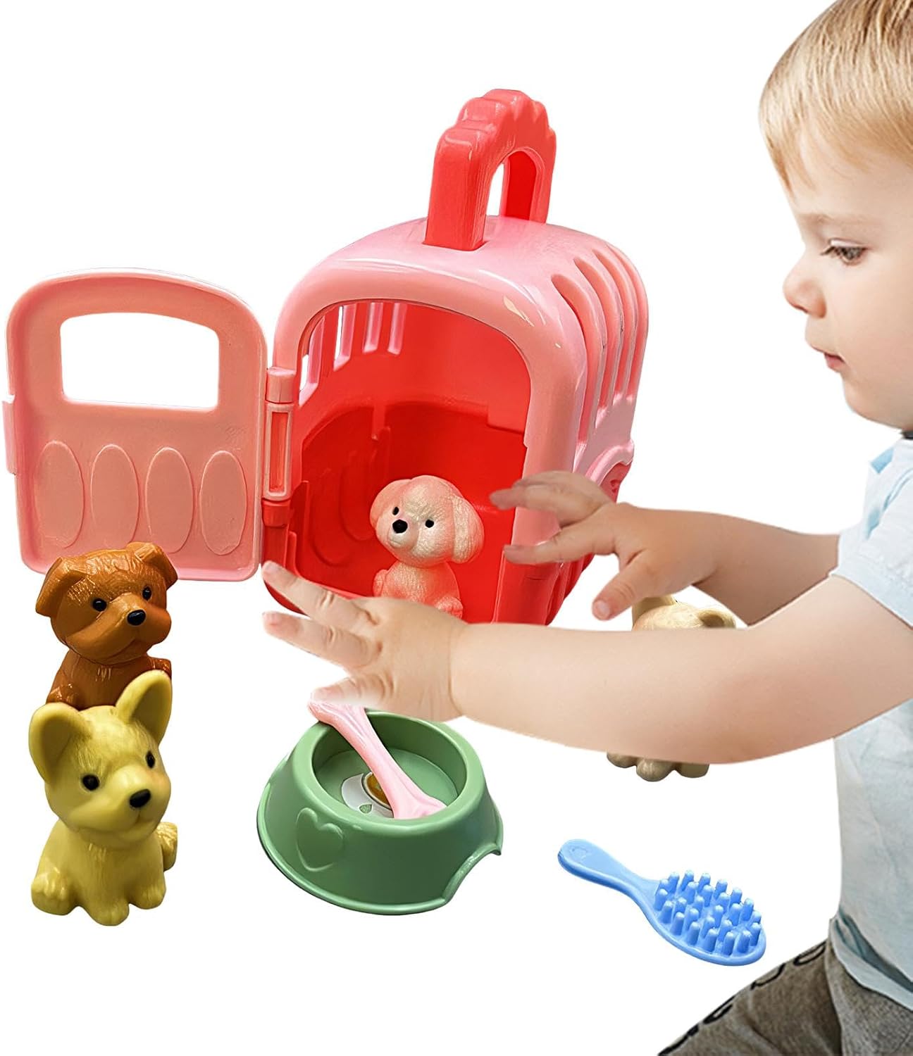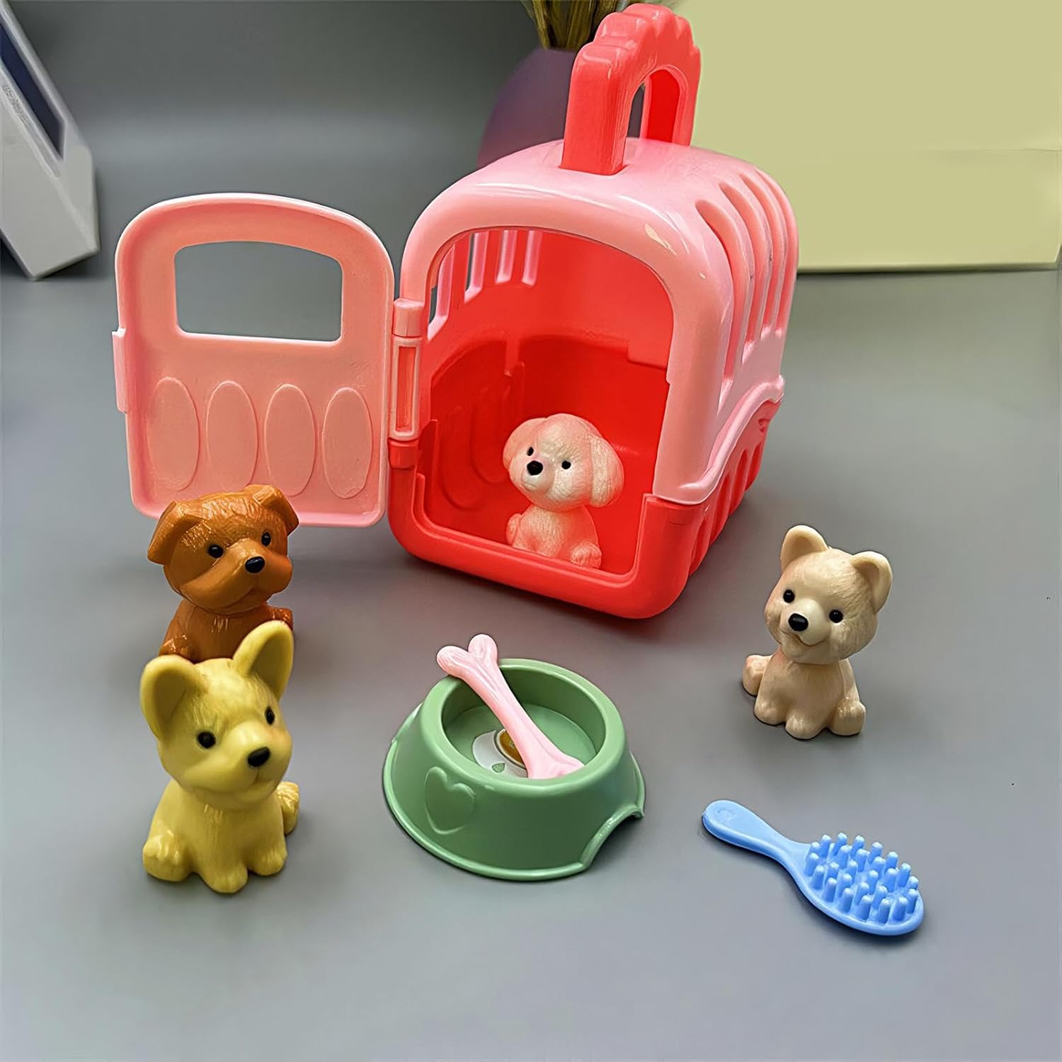 Set utile: migliora l'esperienza genitoriale di tuo figlio con il nostro set di gioco tutto compreso. Include 1 gabbia per animali, 4 giocattoli, una ciotola, un osso e una spazzola: tutto ciò di cui il tuo bambino ha bisogno per prendersi cura dei suoi amici pelosi. Durata garantita: sapientemente realizzato in materiale PP, questo set da gioco con gabbia per la cura degli animali domestici, di dimensioni 10x8,5x6 cm, garantisce durata ed è ideale per le mani piccole, migliorando il di gioco senza la preoccupazione di rotture. Migliora il pensiero creativo: questo set da gioco in gabbia per la cura degli animali domestici può stimolare l'immaginazione dei bambini, fungendo da eccellente risorsa per lo sviluppo del cervello e migliorando la creatività. Divertimento portatile: ricco di divertenti per ore di gioco, il set da gioco Pet Care Cage è perfetto per le vacanze e i viaggi su strada. I bambini possono godersi il divertimento portatile sempre e ovunque grazie al suo design leggero e compatto. Ottimo regalo: sblocca la creatività e più divertimento con questo set da gioco con gabbia per la cura degli animali domestici: un regalo eccellente per ragazzi e ragazze dai 3 anni in su. Perfetto per feste a tema, vacanze o come di gioco, nutre le giovani menti e stimola il gioco fantasioso come nessun altro.