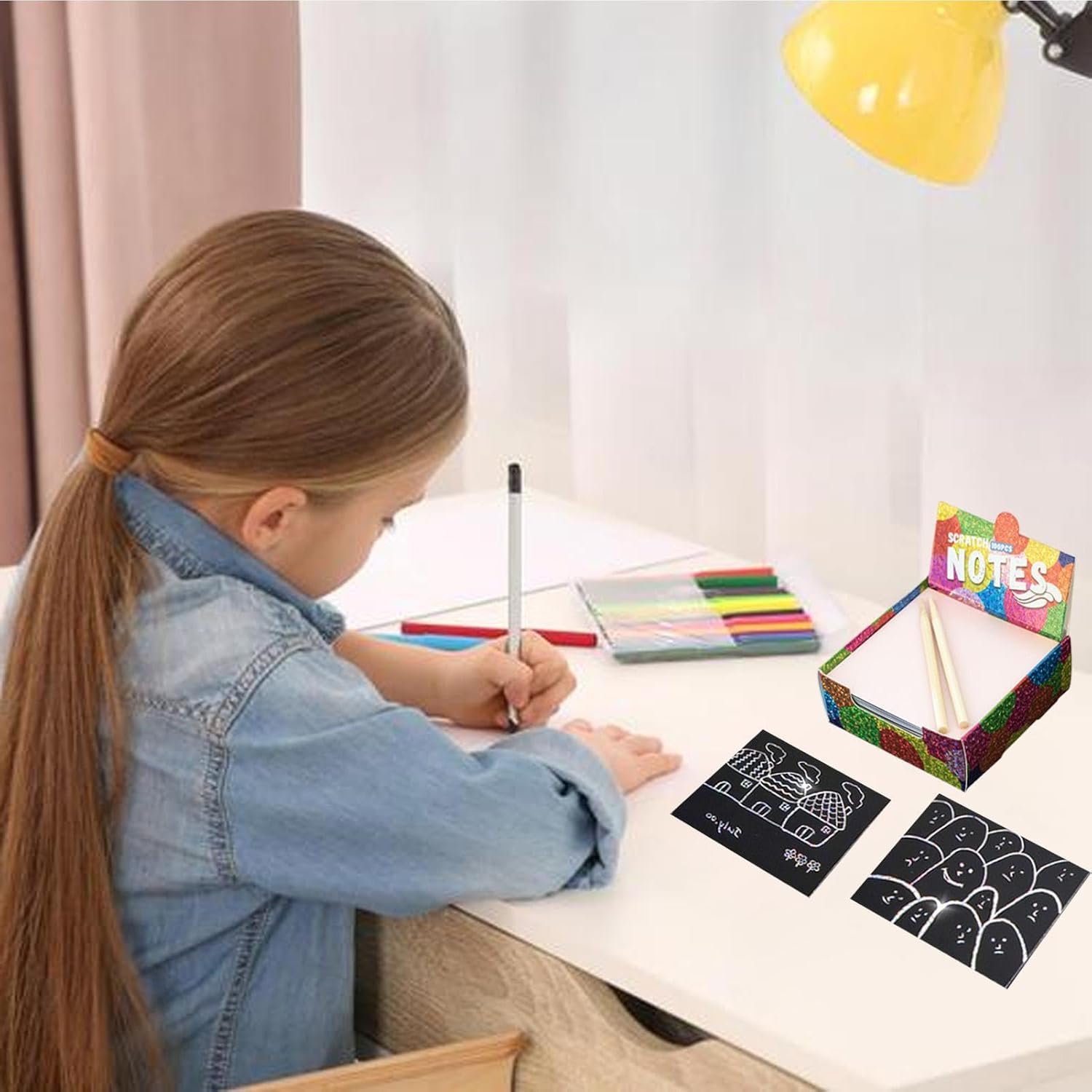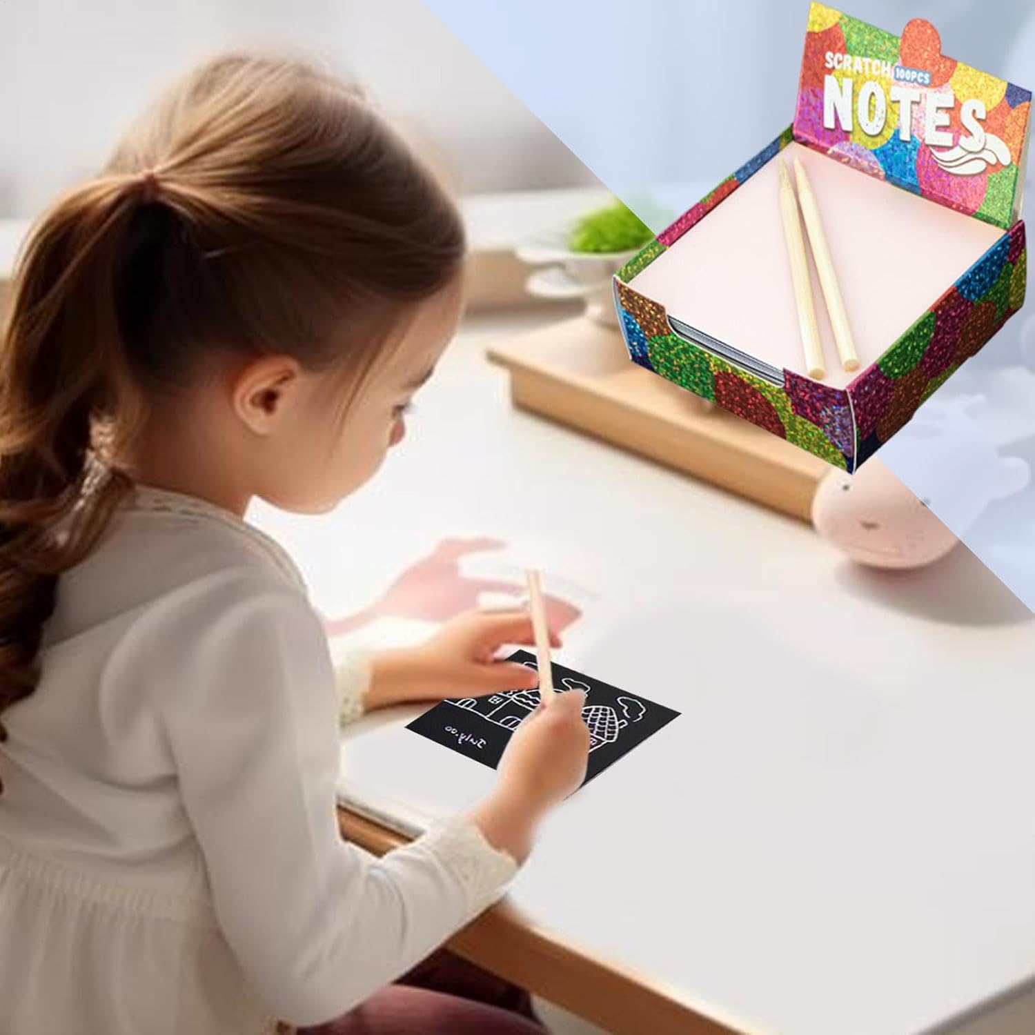 Trasportato comodamente: incoraggia la creatività all'aperto con il set artistico Scratch Paper. Questa attività portatile consente ai bambini di esprimersi sempre e ovunque. Usalo per tenere organizzati appunti o idee e come un modo divertente per prendere appunti di studio o promemoria importanti Una fonte di divertimento: incoraggia la creatività e il divertimento, consentendo ai bambini di produrre facilmente bellissime opere d'arte con facilità. Scopri design squisiti con un semplice graffio in pochi secondi, rendendo l'arte semplice e divertente per tutti Design multiuso: lascia correre la tua creatività con il design versatile del Scratch Paper Art Set e il righello per bordi incluso, che ti consente di grattare facilmente motivi attraenti. Questo set è il regalo creativo perfetto per compleanni e festival Un kit completo di carta da grattare: avvicina la tua famiglia con il kit artistico di carta da grattare tutto compreso. Bambini e genitori possono creare utilizzando il simpatico orsetto e i modelli inglesi e due penne incluse, favorendo un forte legame e creatività Per essere creativi: avvia la passione dei bambini per l'arte con il set artistico Scratch Paper. Incoraggia la loro creatività, originalità e capacità di risoluzione dei problemi mentre disegnano e colorano sui 100 gratta e inclusi nel set
