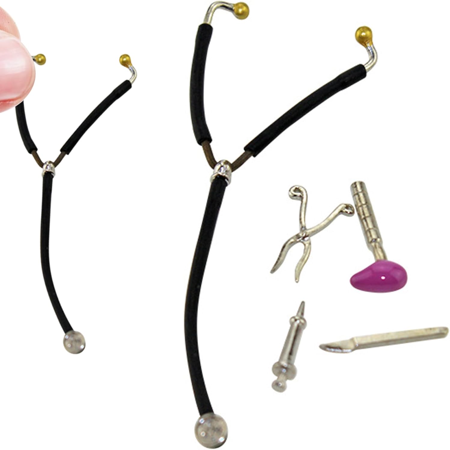 Design realistico: i medici delle case delle bambole hanno una lavorazione eccellente, un design di simulazione, adatto per la collezione di case delle bambole. Questi mini stetoscopi sono realizzati con cura con attenzione ai dettagli, replicando l'aspetto delle vere attrezzature dei medici..Sono dotati di piccoli diaframmi, auricolari e tubi per un aspetto realistico. Unico: stetoscopio per casa delle bambole Può essere usato come giocattolo o decorazione, spazio di archiviazione portatile, quindi puoi portarlo con te, facile da usare, sarà perfetto per Natale, compleanno, viaggi, Capodanno, vacanze, ecc. Accessori per la casa delle bambole: migliora la tua esperienza con la casa delle bambole con questo set di stetoscopi giocattolo da 5 pezzi..È progettato per adattarsi perfettamente alle case delle bambole in scala 1:12, aggiungendo un tocco di autenticità al tuo mondo in miniatura. Con questo set, i bambini possono creare i propri scenari da Dottori e fingere di diagnosticare e curare i loro giocattoli. Materiali: questo modello di mini stetoscopio è realizzato in lega di qualità, resistente..e duraturo, potrà accompagnarti a lungo. Giocattoli educativi: questo stetoscopio giocattolo per casa delle bambole fornisce ai bambini oggetti di scena di qualità, che aiutano a coltivare la loro abilità pratica, immaginazione, capacità di autoespressione e capacità di percezione logica.