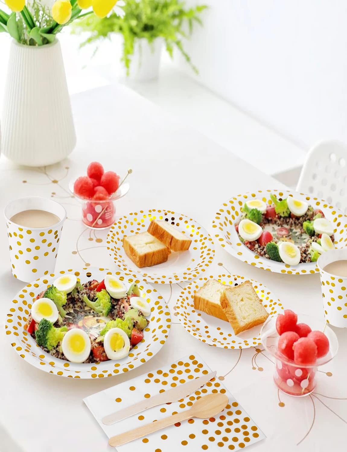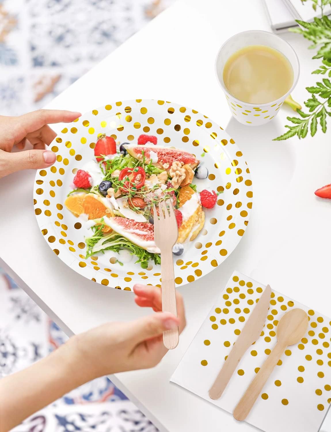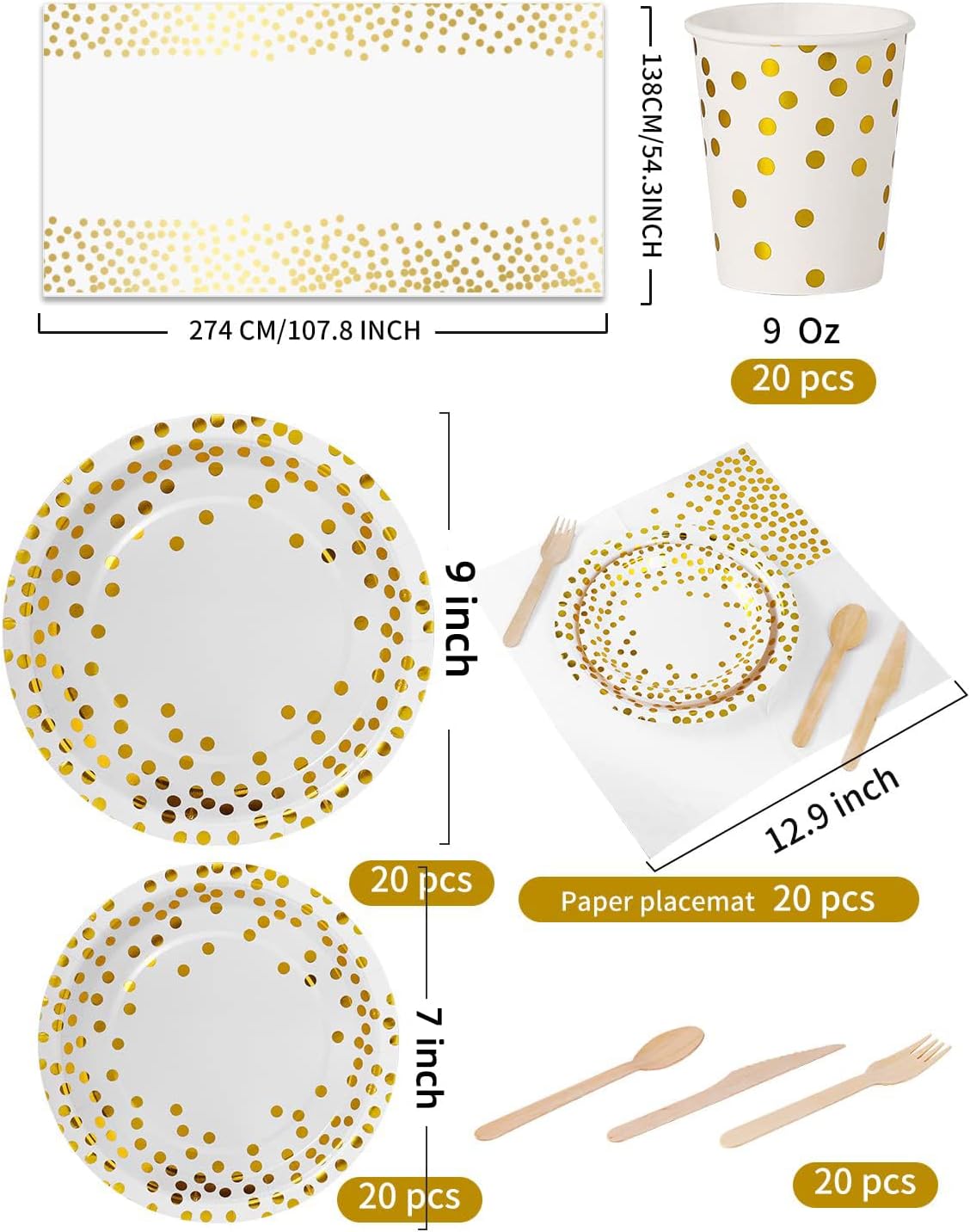 ❤【Misura del Servizio Perfetto】-141 pezzi di stoviglie di carta per compleanno, inclusi 20 piatti da 9 pollici, 20 piatti da 7 pollici, 20 tovaglioli, 20 da Tazze, 20 da Coltelli in legno, 20 da Forchette in legno, 20 da Cucchiai in legno e 1 coperta da tavolo. ❤【Materiale 100% di Alta Qualità】-Le stoviglie Riutilizzabile Nkaiso in sono realizzate in carta alimentare, sono totalmente ecologiche, non tossiche e biodegradabili. 100% alimentare, non tossico. Le stoviglie sono realizzate con carta sostenibile e biodegradabile, sicura per te e per i tuoi ospiti.I coltelli、cucchiai e forchette sono realizzati in legno. ❤【Design Raffinato】- Il set per feste Nkaiso le stoviglie in carta possono lasciare alla riunione e alla festa uno stile di moda ed eleganza, che diventa la scelta della maggior parte delle persone per anniversario, addio al nubilato, matrimonio, baby shower, decorazioni e progetti fai-da-te ecc. ❤【Pratiche Forniture per Feste】-L'uso di tazze e piatti riutilizzabile consente di pulire rapidamente il sito dopo ogni riunione, risparmiando ore di lavaggio dei piatti dopo la festa. ❤【Ampia applicazione】-Il set per feste Nkaiso è ideale per dolci, torte, snack, dessert, spiedini, verdure ecc., Servire i tuoi ospiti nella vita quotidiana o nelle feste, nella festa in usare le nostre stoviglie è molto comodo e utile.