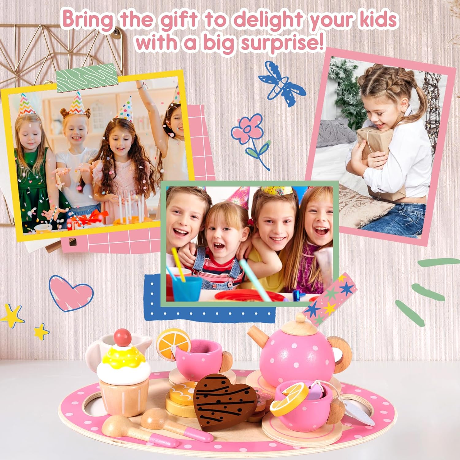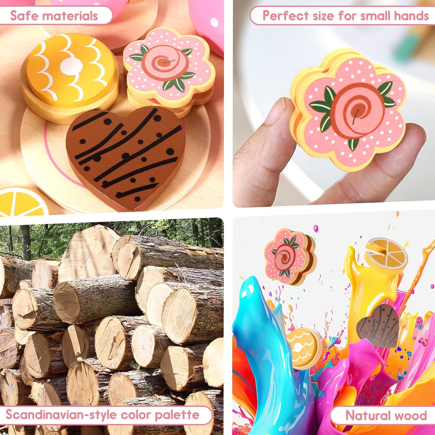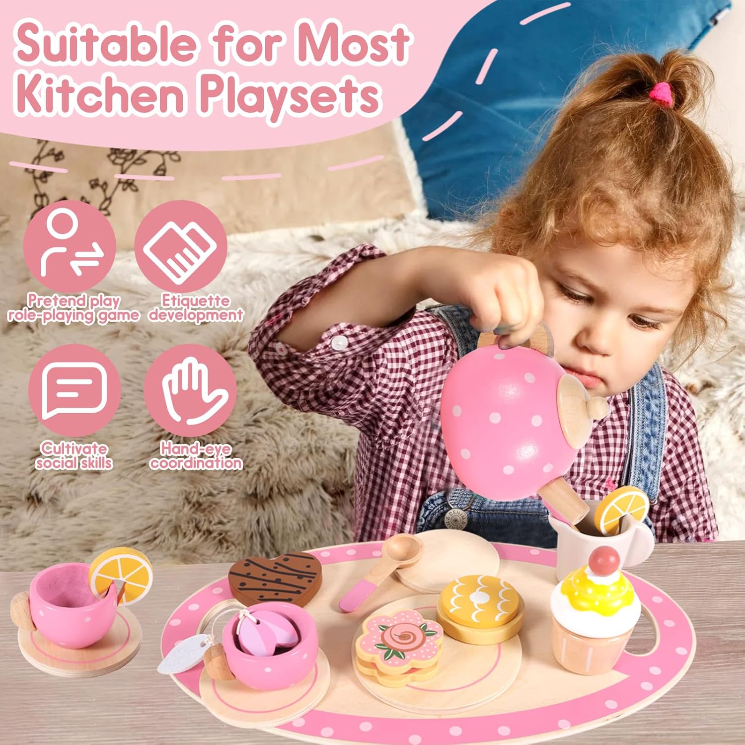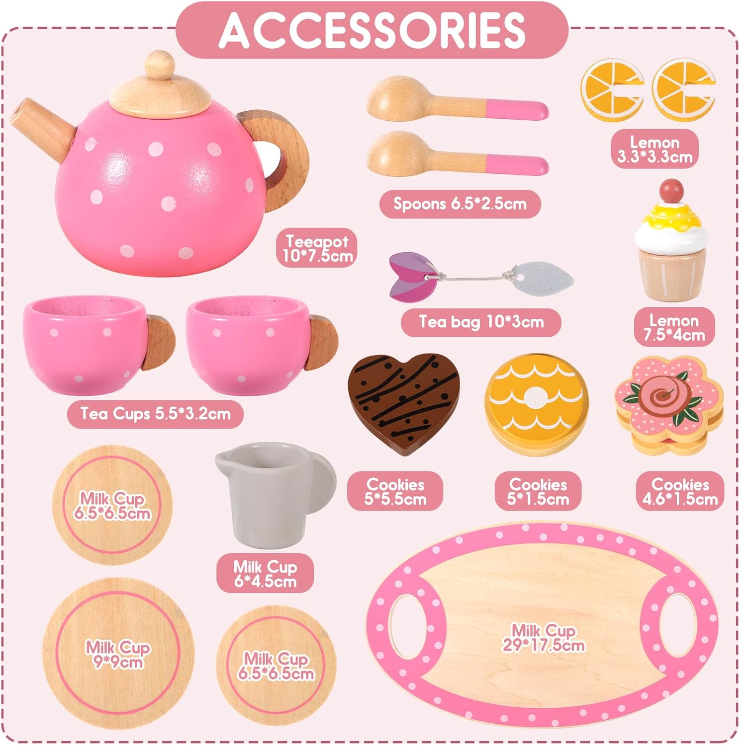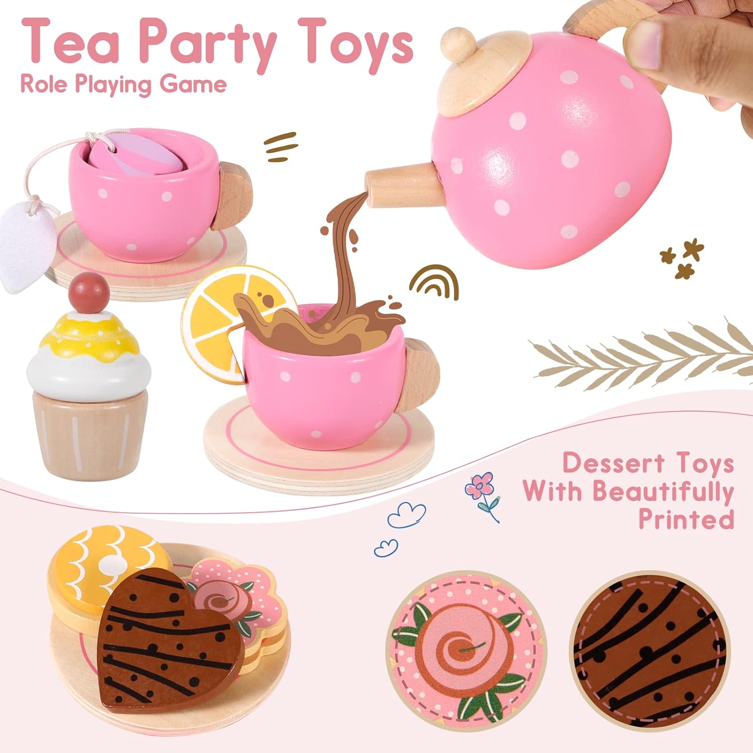 🌸🌸SET DA TÈ LEGNO: Riceverai un Set da Tè per Bambini,che include 1 piattino a pois rosa,1 teiera a pois rosa,2 tazze da tè a pois rosa,1 piattino grande,2 piattini piccoli,1 lattiera,2 cucchiai con manico rosa,2 fette di limone,1 cheesecake a forma di fiore,1 torta,1 biscotto dell'amore,1 biscotto,1 bustina di tè 🍰🍰MATERIALE SICURO: Il set da tè di legno è sicuro e non tossico e il set da tè in legno per bambini è realizzato in legno naturale al rivestito con vernice a base d'acqua ecologica, ma è anche sicuro per i tuoi piccoli. Perché non contiene sostanze chimiche nocive 🍩🍩GIOCO DI IMITAZIONI: Set da Tè Giocattoli per da tè per bambini sono ben progettati e i servizi da tè rosa sono più attraenti per le piccole principesse. I bambini possono invitare amici e familiari a imparare a utilizzare il servizio da tè per migliorare l'interazione e la comunicazione. Questo sarà un buon gioco interattivo genitore-figlio 🧁🧁CUCINA BAMBINI GIOCHI D'IMITAZIONE: Questo simpatico set da tè gioco per bambini è appositamente progettato per i giochi di simulazione, che possono stimolare l'immaginazione dei più piccoli e migliorare la loro creatività, abilità sociali, nonché coordinazione pratica, indipendenza e fiducia in se stessi 🎁🎁REGALO PREZIOSO PER LA TUA PRINCIPESSA: Ogni bambina ama fare cosplay e questo set da tea party è appositamente progettato per le bambine.Gli accessori in legno sicuri e durevoli sono l'ideale.Perfetto come regalo per compleanni,Natale,Ringraziamento,Pasqua