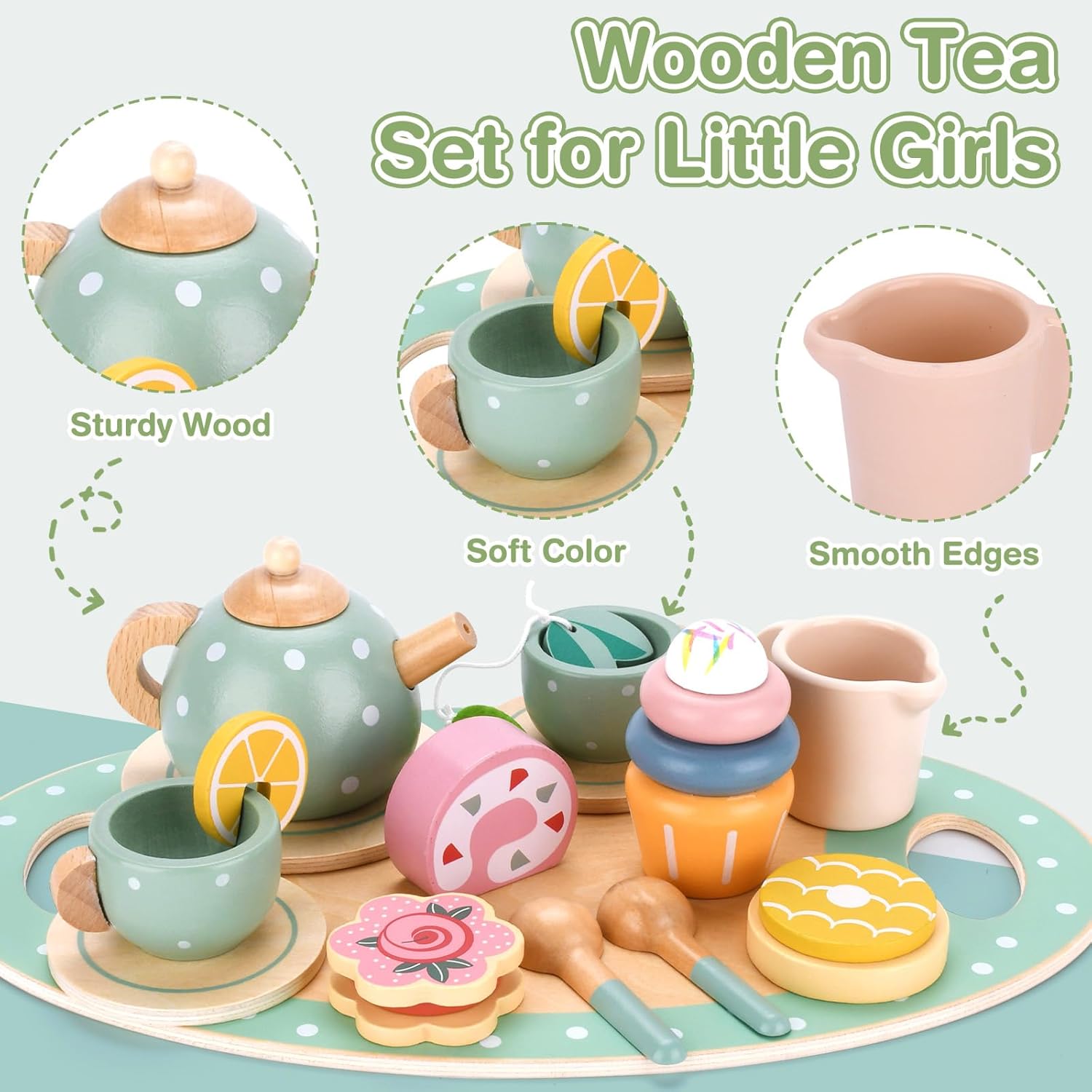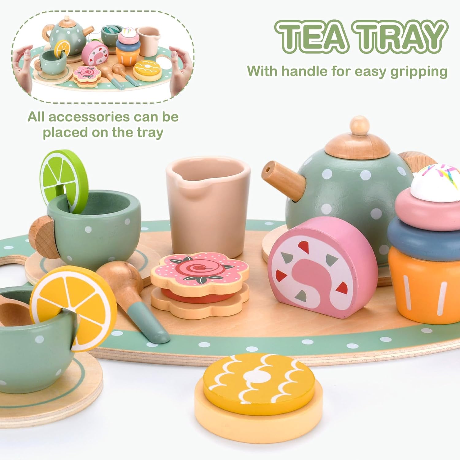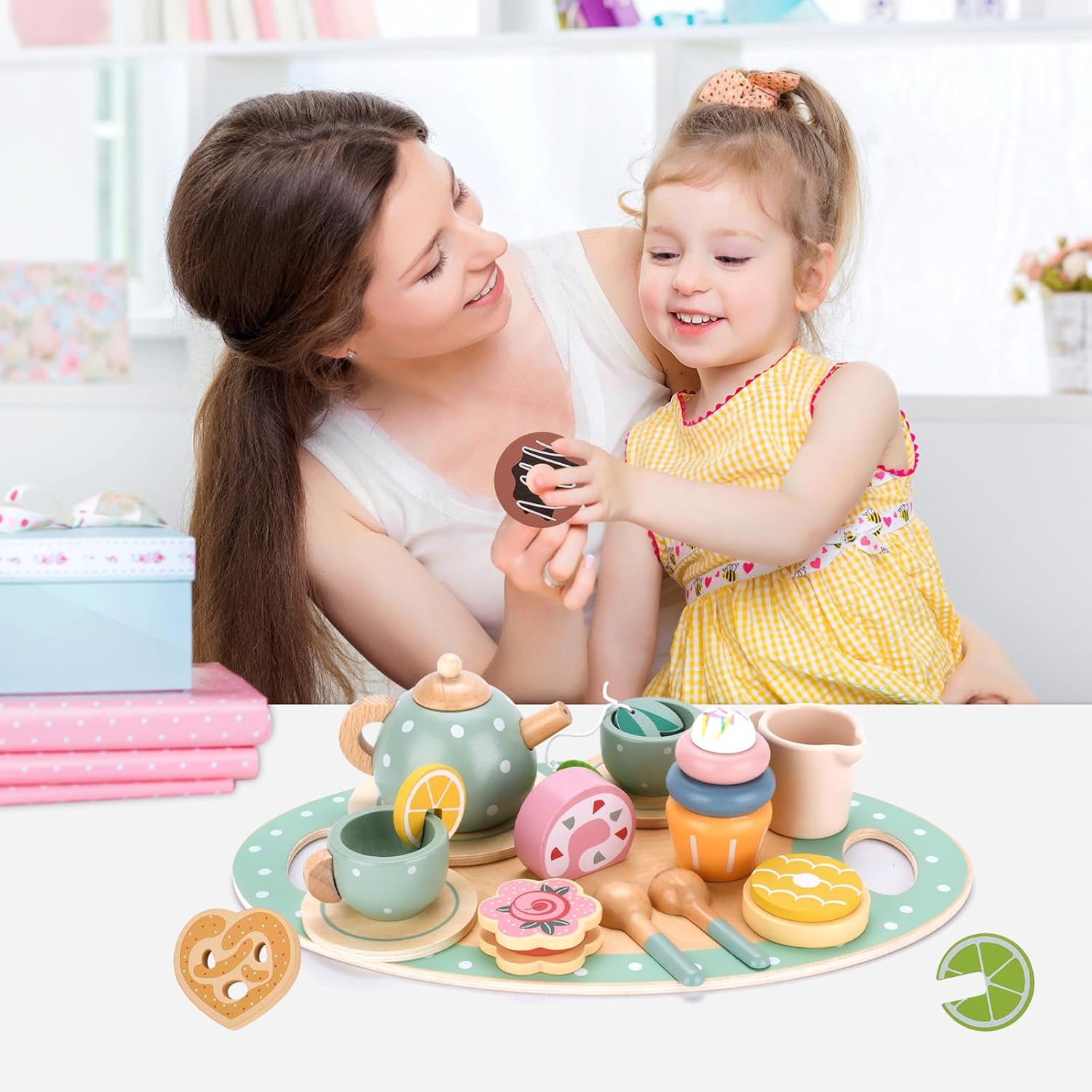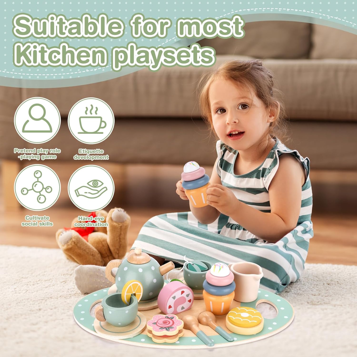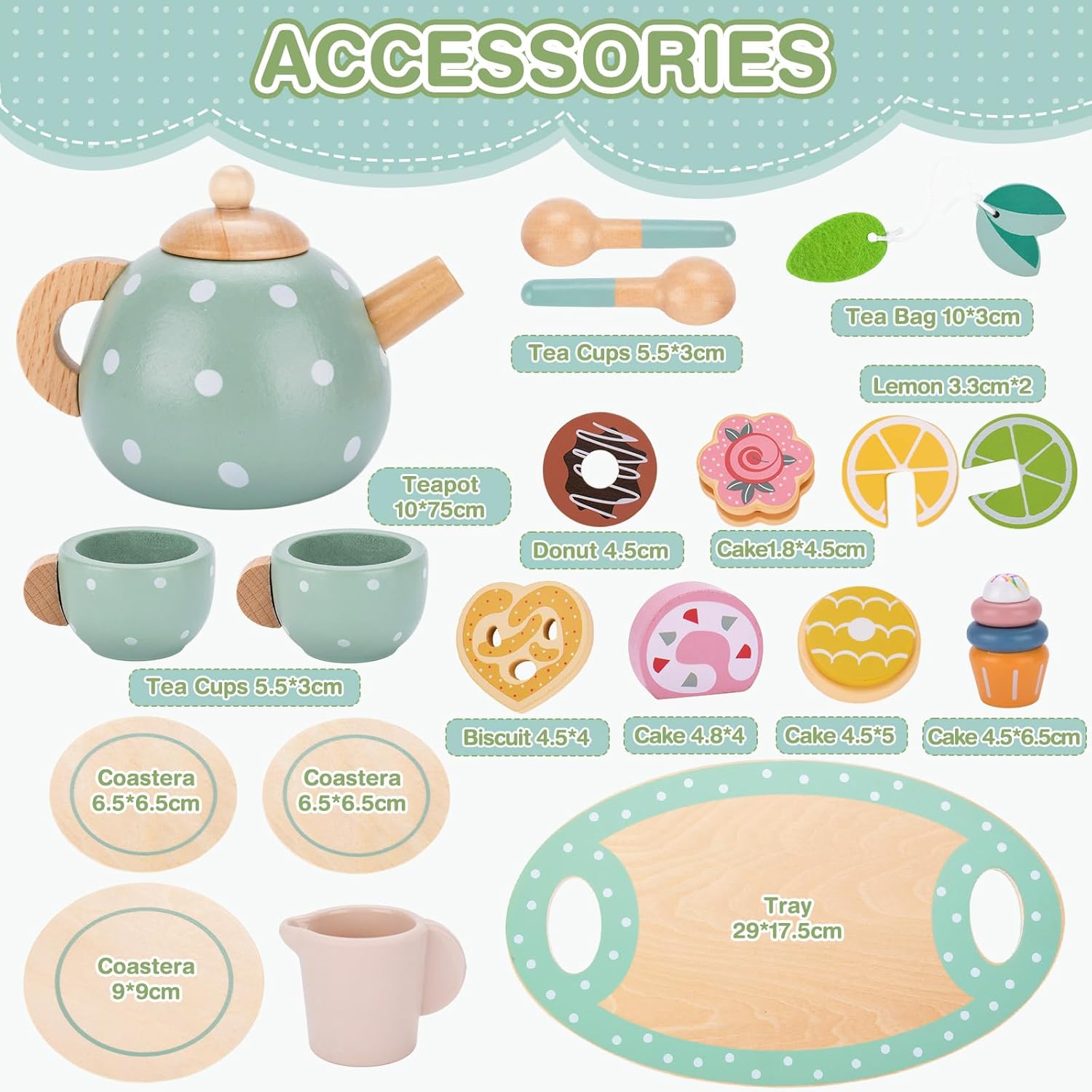 🍰SET DA TÈ IN LEGNO - Questo set da tè in legno per bambini include una teiera, un vassoio in legno, due sottobicchieri da 6,5 cm, un sottobicchiere da 9 cm, due tazze da tè, due cucchiaini, una bustina di tè, una cheesecake, un panino, due fette di limone, una lattiera, due biscotti e due tortine. Progettato per bambini dai 3 anni in su, il set presenta un design a pois con bordi morbidi. Questo lo rende robusto, infrangibile e sicuro per le manine dei più piccoli. 🧁MATERIALI DI ALTA QUALITÀ - Questo set da tè per bambini è realizzato in legno di alta qualità ed è rivestito con un rullo di vernice a base d'acqua sicuro per una finitura uniforme e inodore. La teiera, le tazze, il piattino e gli altri accessori sono lisci e senza sbavature. Il rivestimento, adatto agli alimenti e sicuro, ha una tonalità verde chiaro e il motivo a pois è resistente e rimarrà come nuovo anche dopo anni di utilizzo. 🎂IMPRESSIONANTE GIOCO DI RUOLO IN CUCINA - Questo set da tè per bambini è perfetto per il gioco di ruolo e simula una vera scena del tè pomeridiano. Attività come versare l'acqua e servire il tè promuovono la coordinazione occhio-mano, incoraggiano le abilità sociali e aiutano i bambini a classificare il cibo e ad apprendere le buone maniere a tavola. ✨RISVEGLIA UNA CREATIVITÀ ILLIMITATA - Il gioco di ruolo aperto incoraggia i bambini a organizzare feste del tè, assegnare ruoli e sviluppare competenze linguistiche ed emotive attraverso la narrazione. In combinazione con bambole o membri della famiglia, questa attività interattiva promuove la condivisione e la risoluzione dei problemi, gettando le basi per l'educazione della prima infanzia. 🎁IL REGALO IDEALE - Ogni bambina ama i giochi di ruolo e questo set da tè per bambini è stato progettato appositamente per loro. Viene fornito in confezione regalo. È perfetto come regalo per compleanni, cosplay, Natale, Ringraziamento, Pasqua e altre occasioni.
