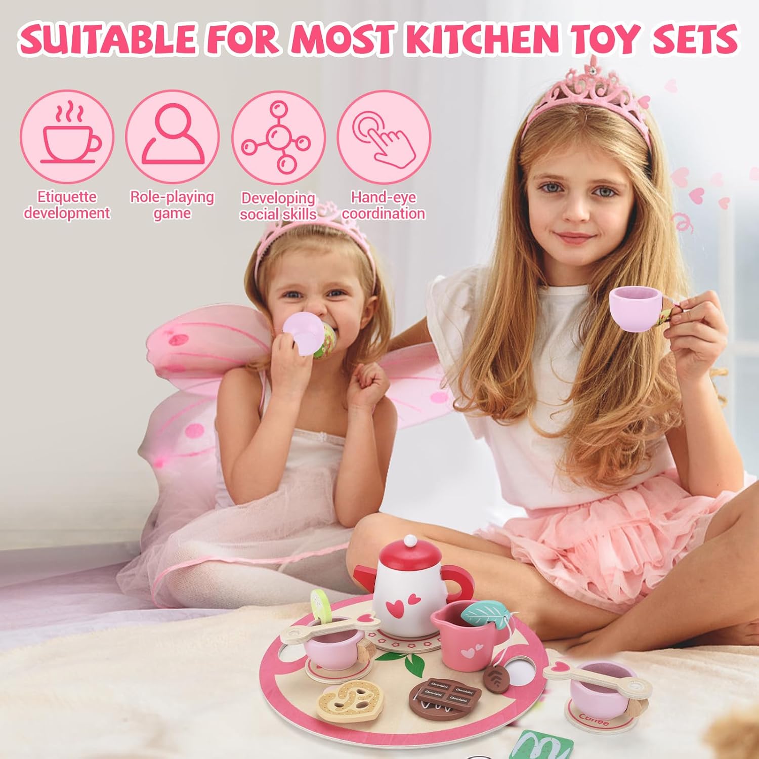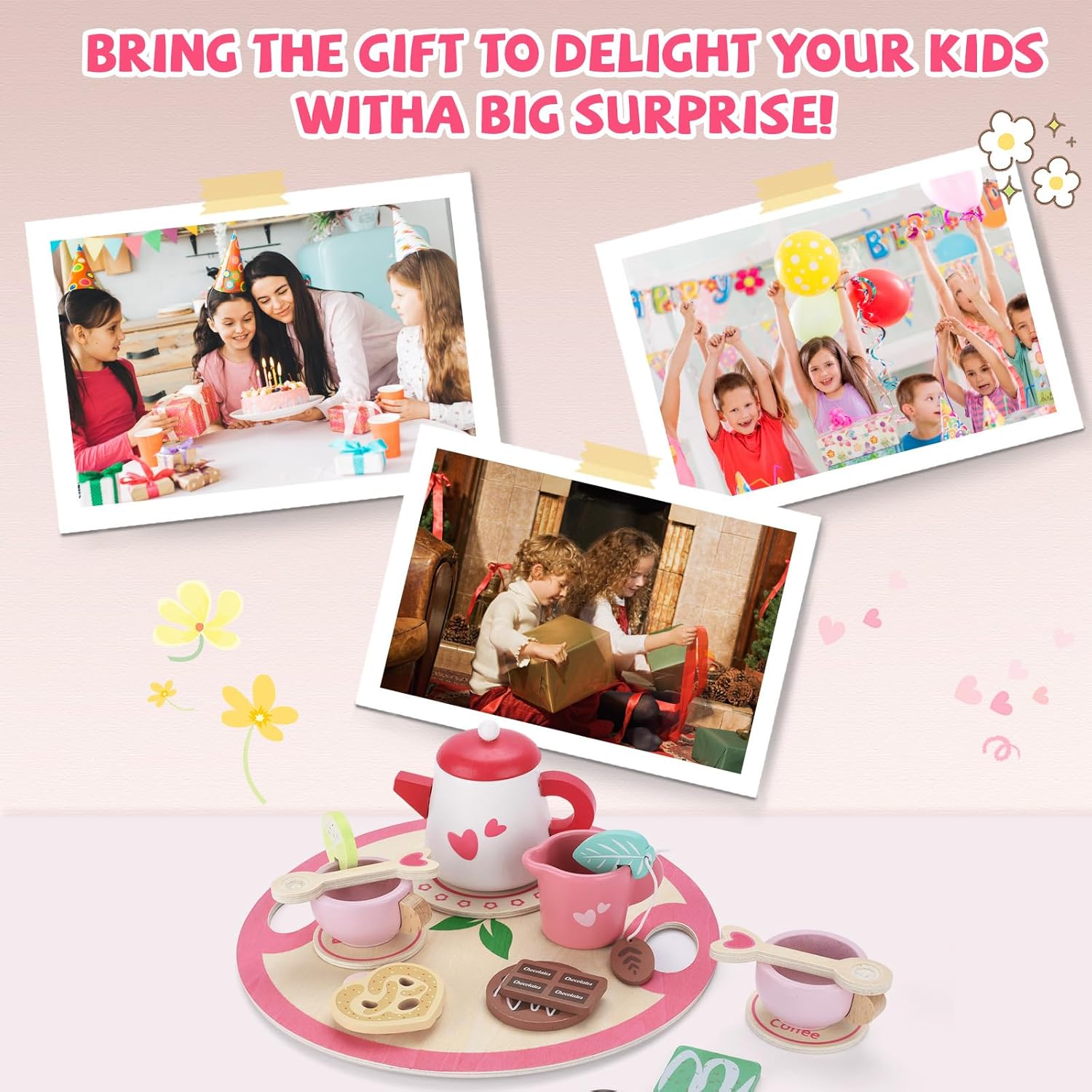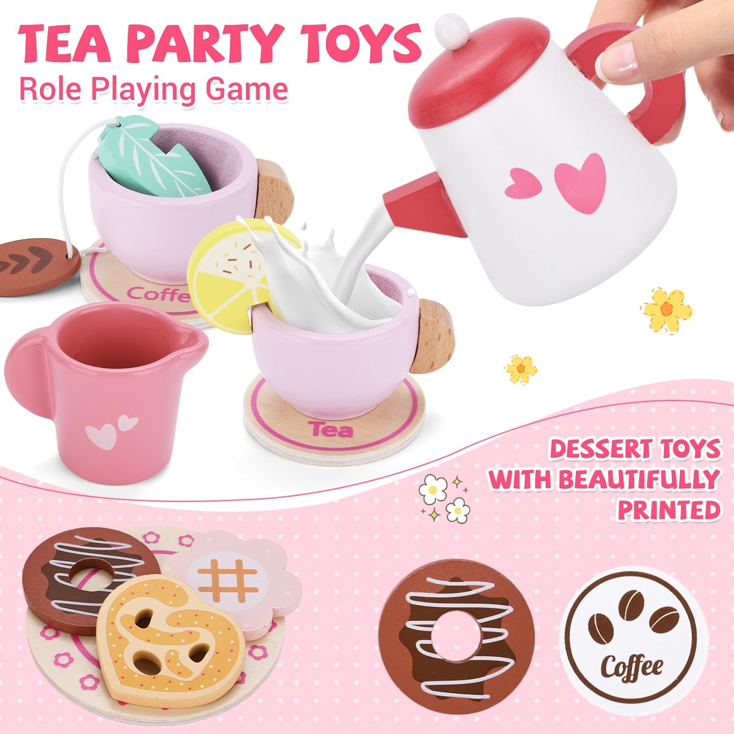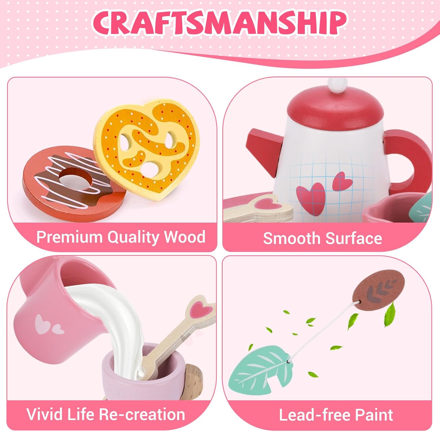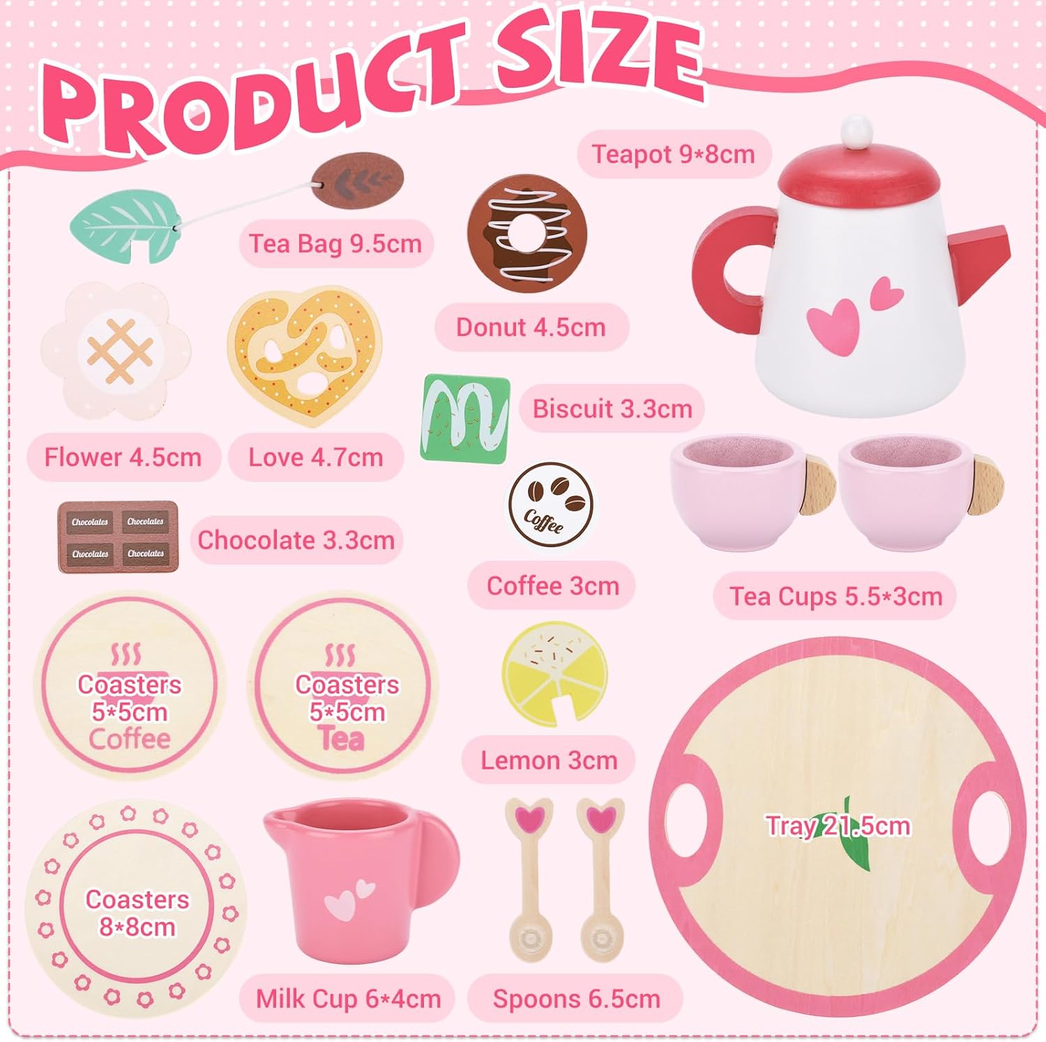 🍰🍰SET DA TÈ IN LEGNO - Contiene: 1 x piattino rosa (21,5 cm), 1 teiera rosa a forma di cuore, 2 tazze da tè rosa, 1 tazza da tè grande, 1 piattino, 2 cucchiaini con manico a forma di cuore, 1 fetta di limone, 1 biscotto a forma di fiore, 1 ciambella, 1 biscotto a forma di cuore, 1 biscotto verde, 1 bustina di caffè, 1 cioccolatino e 1 bustina di tè. Offre ai bambini un divertimento senza fine e stimola la loro fantasia. 🧁🧁SICURO E DUREVOLE - Questo set da tè in legno per bambini è realizzato in legno di alta qualità, è robusto e durevole, ha una superficie liscia e senza sbavature ed è verniciato con vernice a base d'acqua sicura. Dal design accattivante. Sicuro da riutilizzare e con cui giocare. 🍩🍩GIOCO DI RUOLO IMPRESSIONANTE IN CUCINA - Questo set da tè per bambini è perfetto per il gioco di ruolo e simula una vera scena del tè pomeridiano. Attività come versare l'acqua e servire il tè promuovono la coordinazione occhio-mano, migliorano le capacità sociali e aiutano i bambini a classificare il cibo e ad apprendere le buone maniere a tavola. ✨✨CREATIVITÀ UNIVERSALE - Il gioco di ruolo aperto incoraggia i bambini a pianificare il tè, assegnare ruoli e sviluppare competenze linguistiche ed emotive attraverso la narrazione. In combinazione con bambole o membri della famiglia, questa attività interattiva promuove la condivisione e la risoluzione dei problemi, gettando le basi per la prima infanzia. 🎁🎁IL REGALO IDEALE - Ogni bambina ama il gioco di ruolo e questo set da tè per bambini è progettato appositamente per loro. Confezionato. Perfetto come regalo di compleanno, cosplay, Natale, Ringraziamento, Pasqua e altre occasioni.