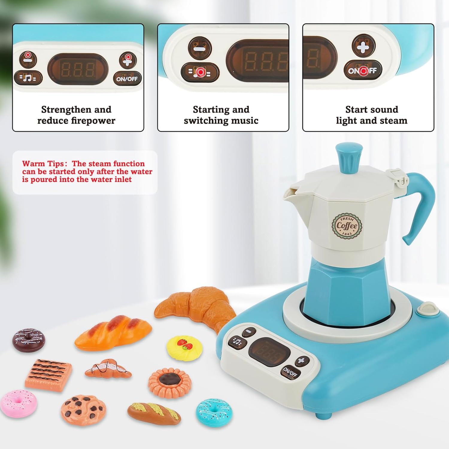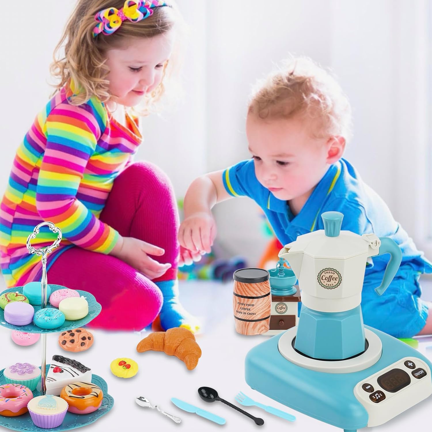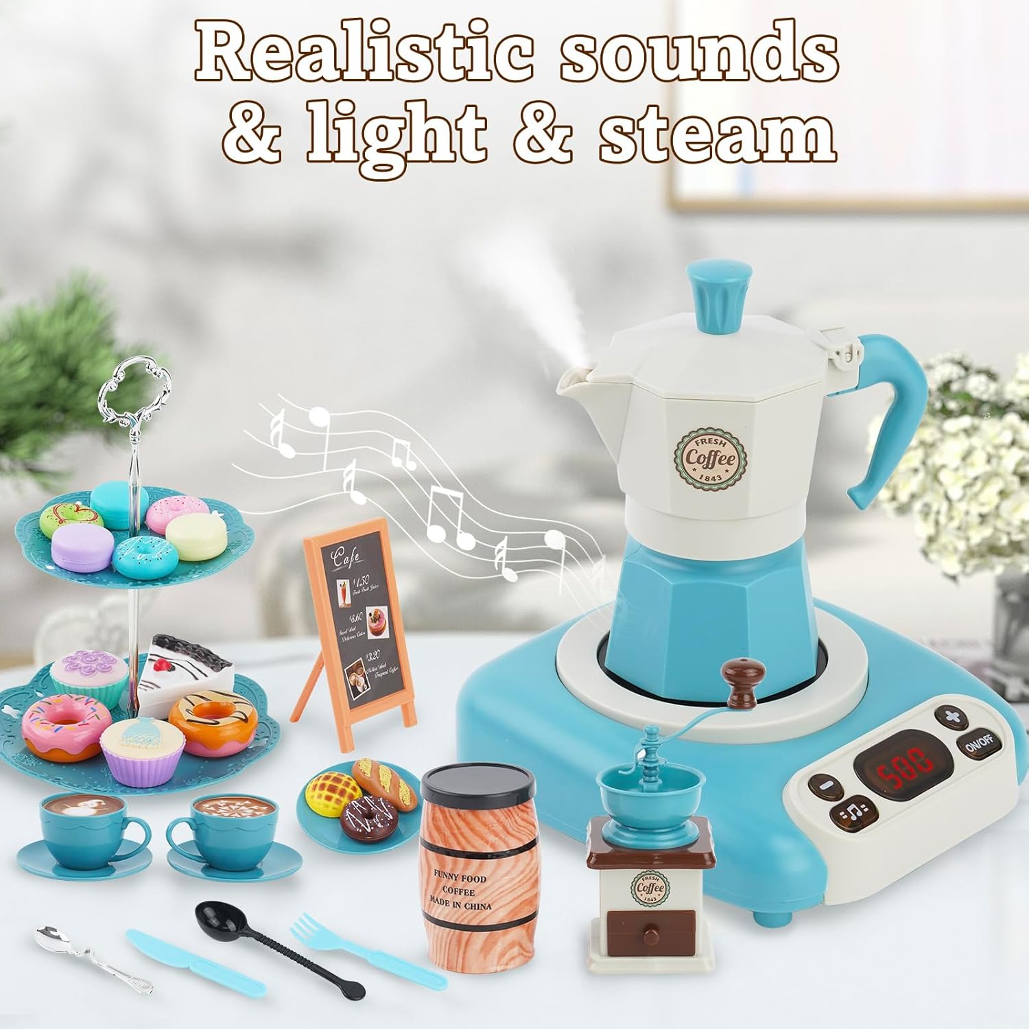 Set da tè per bambini: set da tè da 41 pezzi, include un set per la macchina del caffè: 1 barile per il caffè,1 caffettiera,3 gelati, 1 macinacaffè,2 tazze da caffè,2 bicchieri di carta per il caffè,1 barattolo per il caffè,1 cucchiaio,3 piatti, 1 pinza per alimenti,1 tavola decorativa, 1 scatola regalo,set da dessert con cibo finto, include 2 coltelli, 2 forchette,1 alzatina per torte a 2 livelli,17 dessert. Ottimo per giochi di ruolo e di finzione,crea ore di divertimento per i bambini. Sicuro e durevole: il set da tè finto è realizzato in materiale ABS sicuro, è resistente e ha i bordi lisci. Lascia che i bambini si divertano per infinite ore con i genitori e gli amici. Divertimento senza fine e stimola la creatività: questo set da tè giocattolo assicura che le vostre bambine siano completamente attrezzate per dedicarsi a ore di gioco di finzione fantasioso. Aiuta a migliorare le loro capacità comunicative e linguistiche, stimola l'immaginazione, la creatività e la coordinazione occhio-mano. Set realistico per macchina da caffè e dessert: questi finti dessert sono attraenti come il cibo vero, rendendo i bambini più interessati a questi giocattoli per dessert. Il frullatore per caffè può simulare il processo di macinatura del caffè, incoraggiando le capacità pratiche dei più piccoli. Miglior regalo: fantastico set da tè finto per bambine! Questo set è perfetto come regalo di Natale, Halloween, compleanno, Pasqua, attività scolastiche, ecc. È un set da tè giocattolo così portatile che le bambine possono giocare sia in casa che all'aperto.