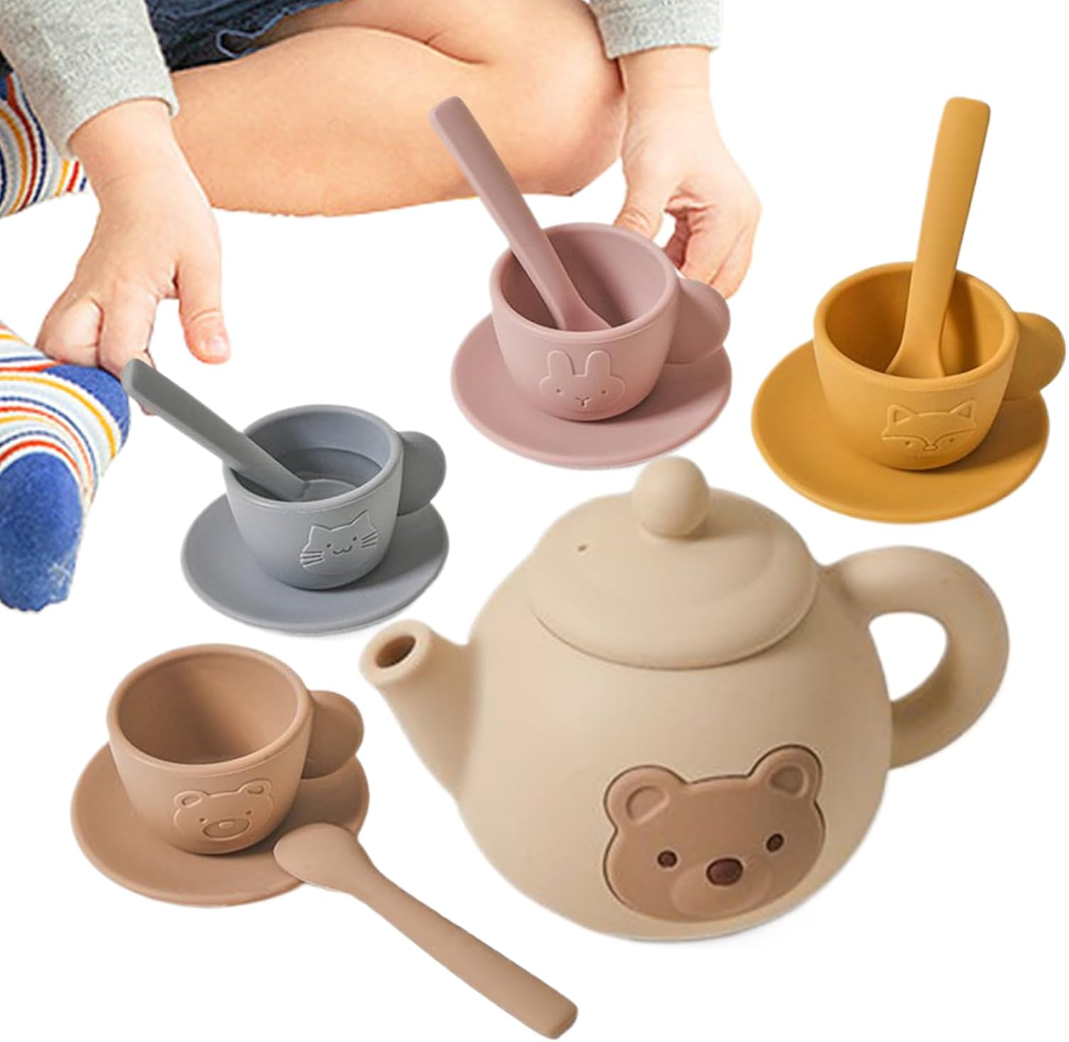 Design resistente: la struttura in morbido silicone offre un'eccellente resistenza all'usura e recupero della deformazione per una durata quotidiana affidabile, con superfici lisce progettate per una facile pulizia e un fascino duraturo. Gioco di imitazione: l'inclusione della teiera realistica e del set da tè con animali ispira la creatività durante l'ora del tè sviluppando in modo naturale il divertimento interattivo attraverso scenari immaginari. Regalo perfetto: supporta la creazione di amicizie e l'espressione creativa, questo set teatrale è progettato per varie occasioni, consentendo loro di immergersi in scenari di gioco di ruolo che promuovono lo sviluppo sociale e le gioiose interazioni di gruppo. Divertimento d'imitazione coinvolgente: rafforza le capacità motorie, migliora la coordinazione e coltiva l'etichetta sociale coinvolgendoli in scenari realistici di tè. Apprendimento precoce: soddisfa le esigenze di sviluppo dei bambini di 3-6 anni promuovendo incontri tra, empatia e integrazione armoniosa con le interazioni familiari per un apprendimento arricchito.