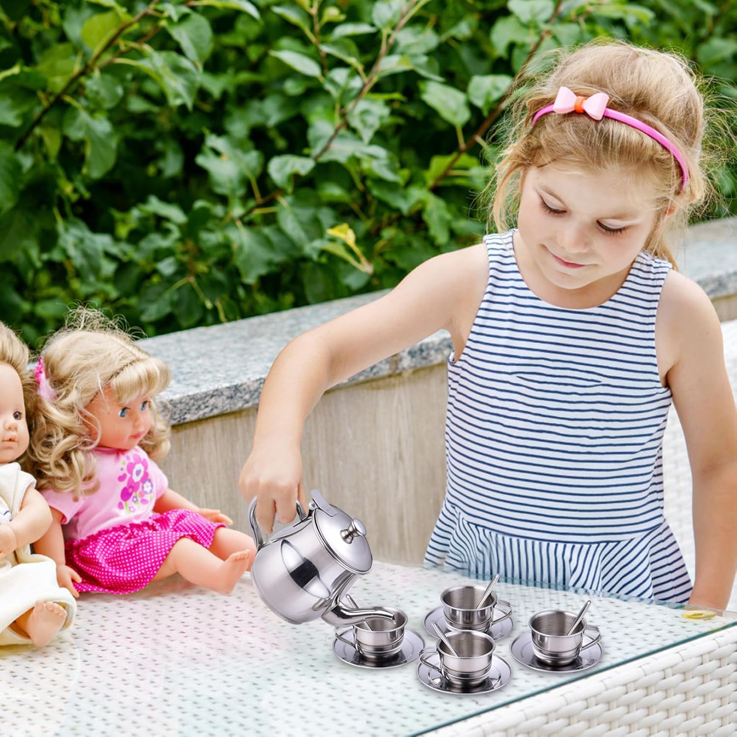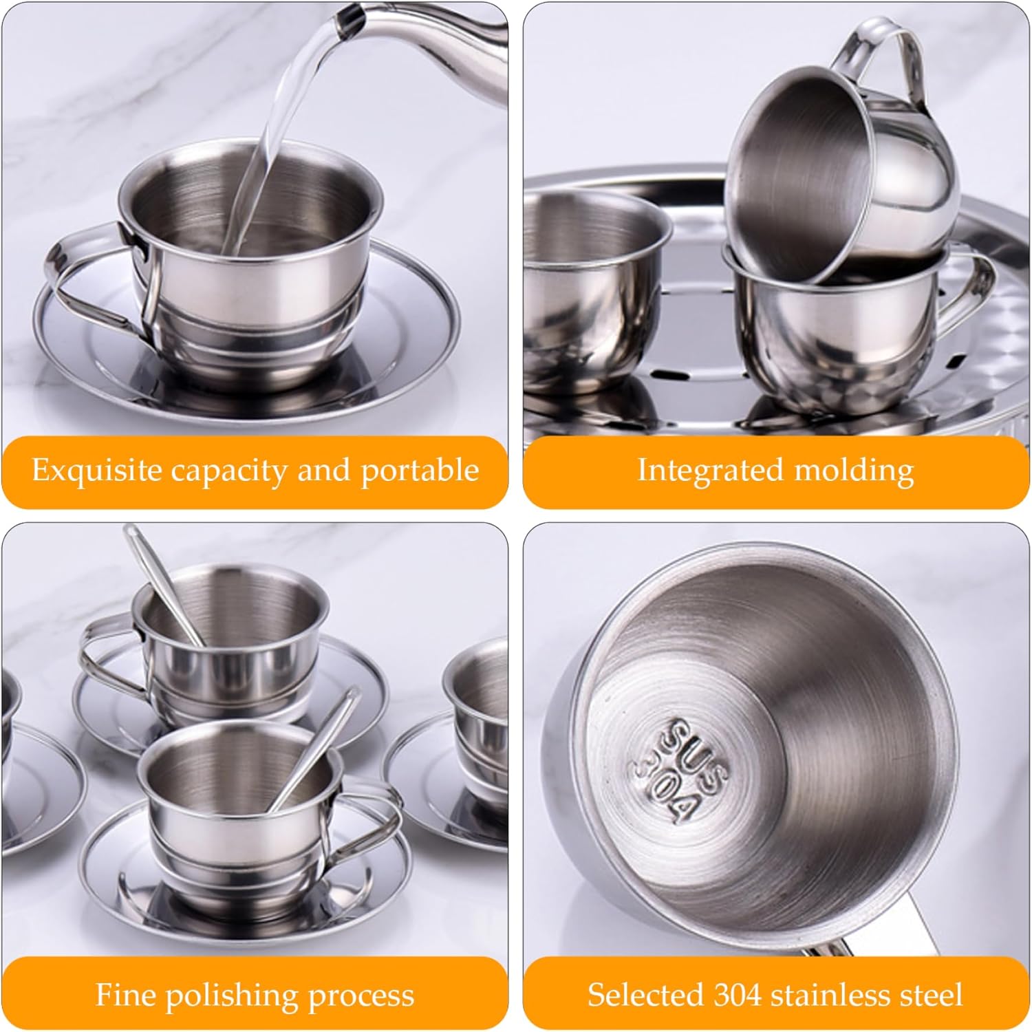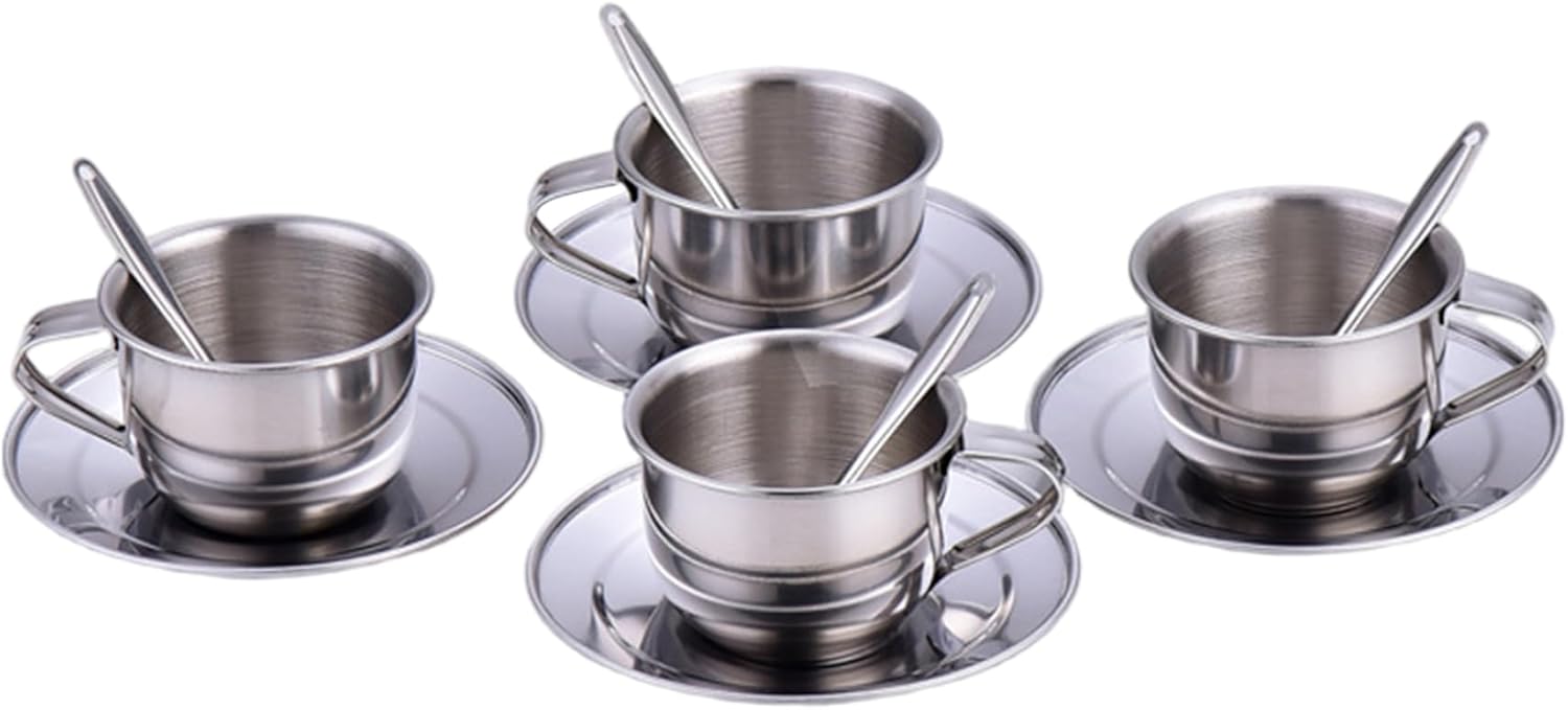 Robusta e facile da pulire: la costruzione in acciaio inossidabile garantisce longevità e manutenzione senza problemi;.Le salviette superficiali lisce e resistenti alla ruggine puliscono rapidamente per mantenere l'igiene una priorità assoluta Neutro e elegante di genere: progettato sia per ragazze che per ragazzi, questo elegante set da tè presenta una finitura in acciaio inossidabile senza tempo che completa qualsiasi sala giochi con fascino e inclusività moderni Coppe compatte da 70 ml: ogni set include quattro tazze da 70 ml, perfettamente dimensionate per piccole mani, consentendo una presa comoda e una maneggevolezza e una maneggevolezza promuovendo il gioco sociale tra i bambini Design sicuro resistente al calore: realizzato in acciaio inossidabile resistente al calore, questo set da tè per bambini garantisce un gioco sicuro senza il rischio di ustioni o rotture, rendendolo ideale per l'immaginazione attiva dei bambini Essentials completo: il set viene fornito con quattro tazze, quattro piattini e quattro cucchiai, fornendo tutto il necessario per un'esperienza coinvolgente per il tea party che incoraggia la condivisione e il gioco di ruolo