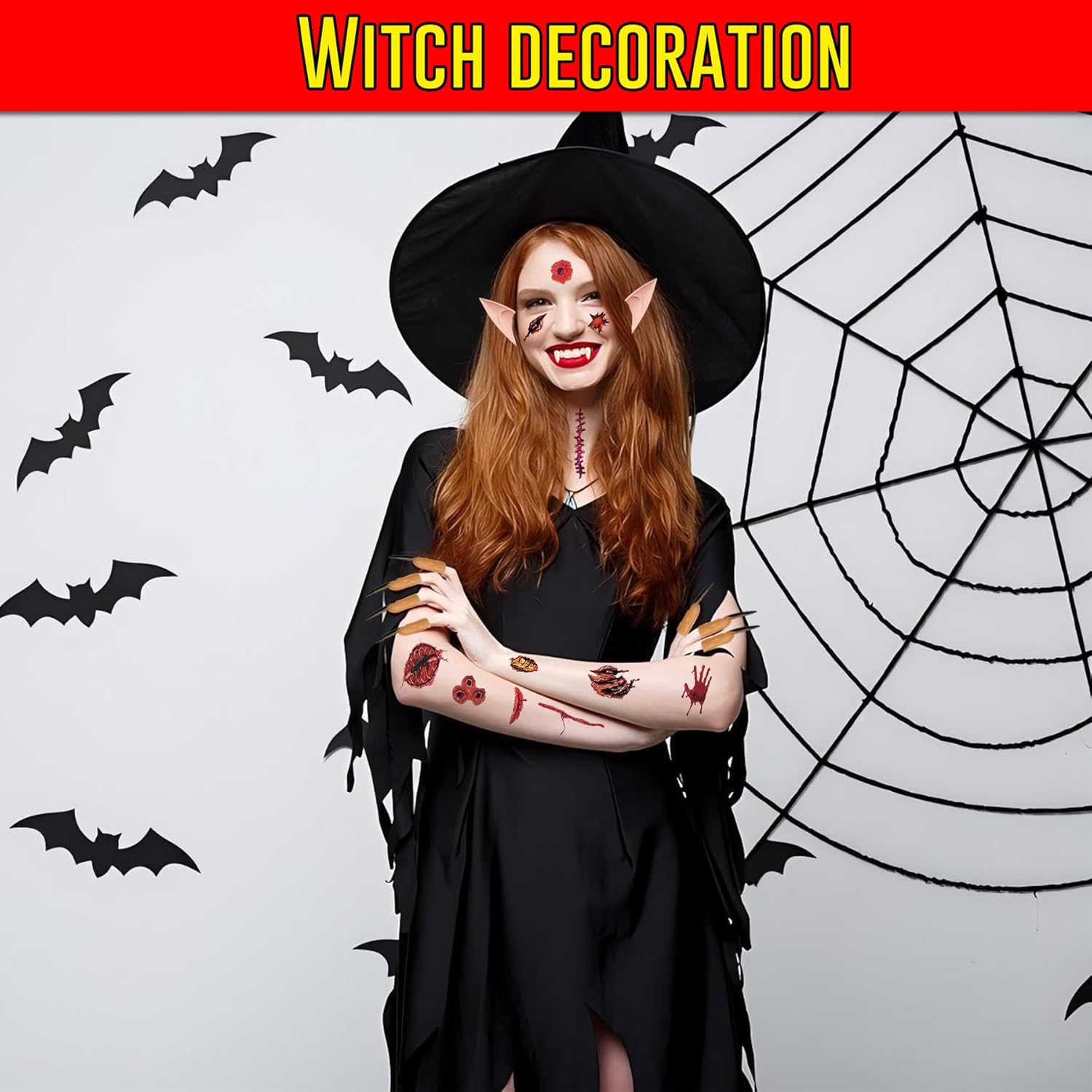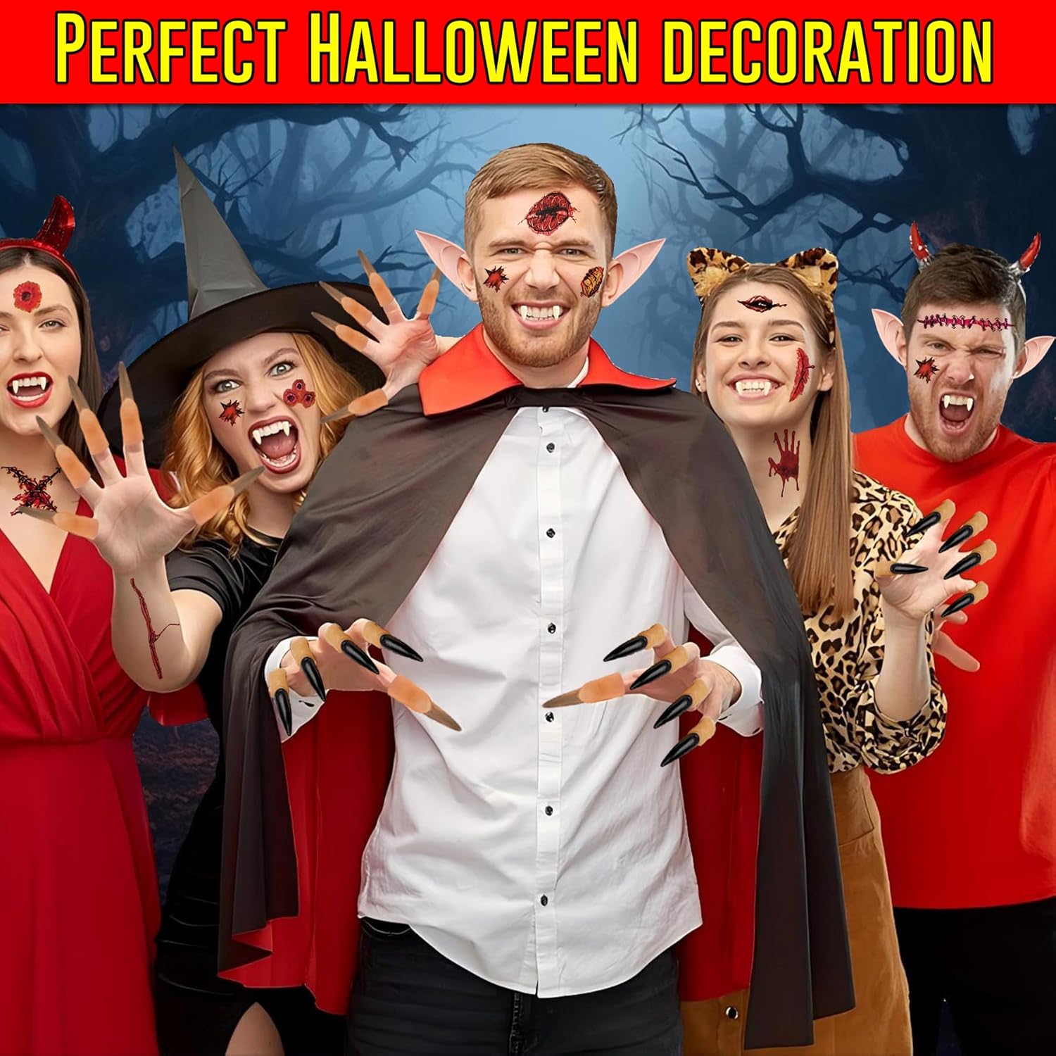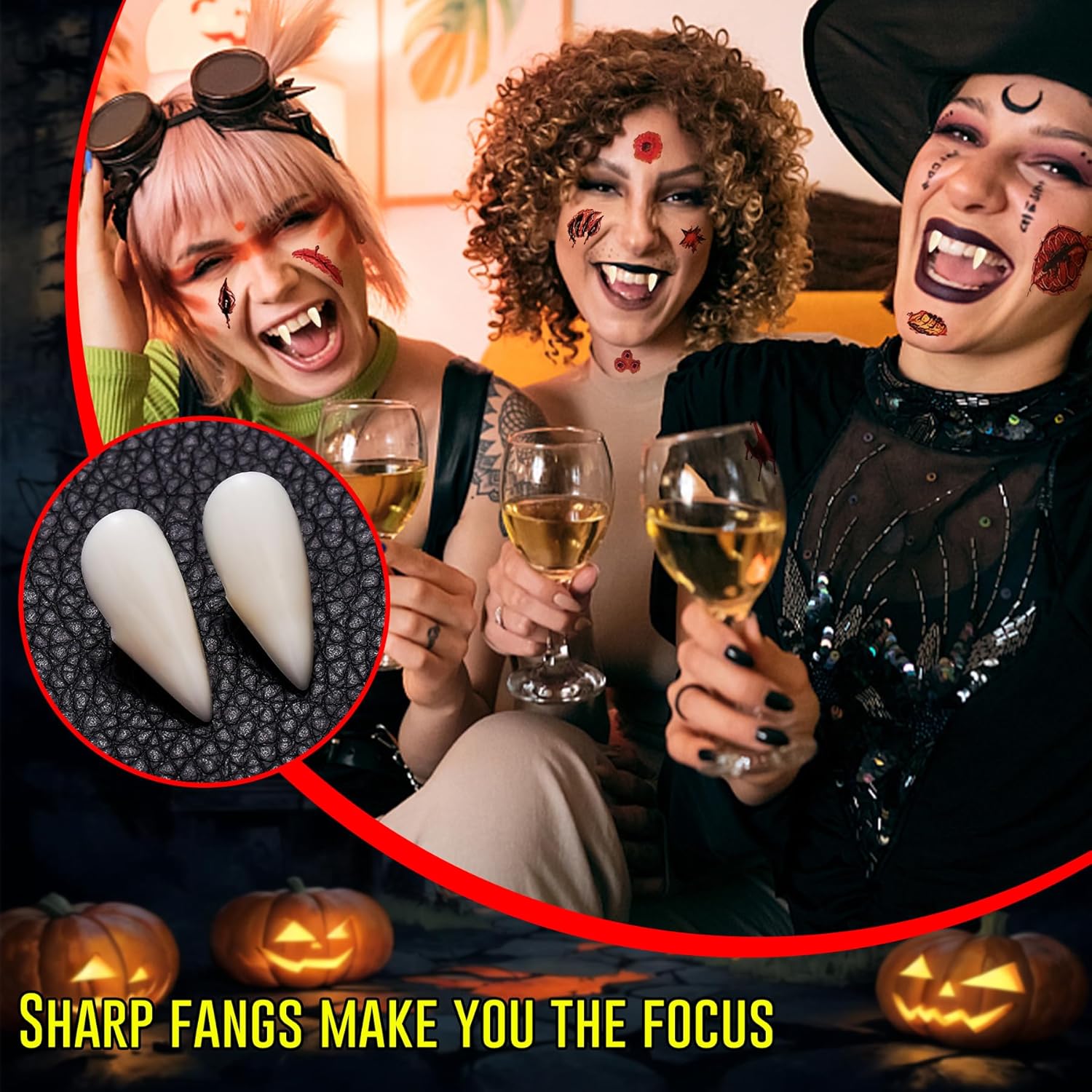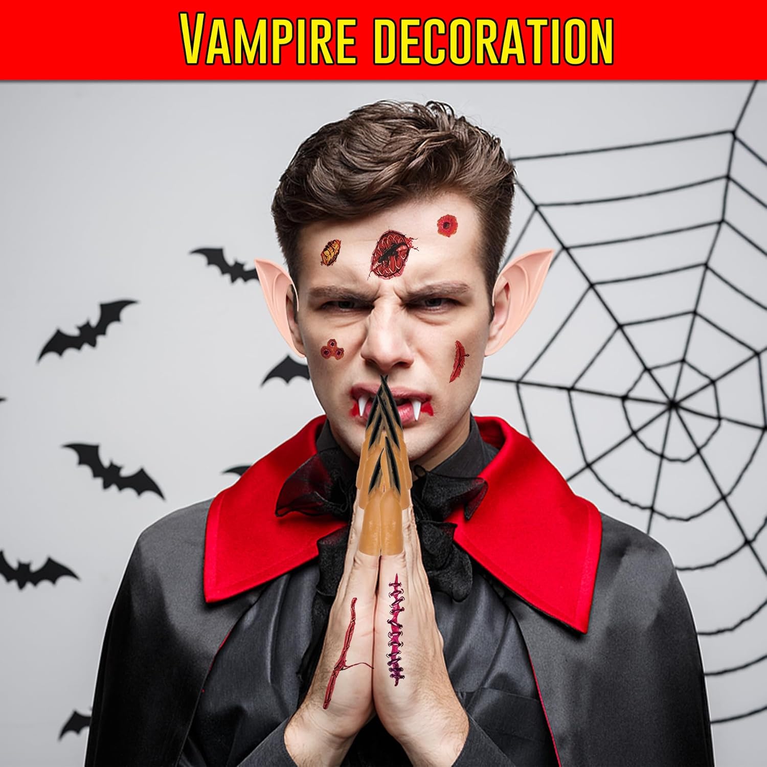 Set da vampiro 28 pezzi per Halloween e cosplay: Set completo con 4 paia di denti da vampiro, 2 paia di orecchie elfo in due misure, 10 unghie nere lunghe, 6 tatuaggi horror. Ideale per travestimenti, feste a tema, carnevale e spettacoli teatrali Materiali sicuri, delicati sulla pelle e realistici: Zanne in resina lucida, orecchie e unghie flessibili ipoallergeniche. Comfort ottimale e vestibilità naturale per adulti e bambini. Materiali di qualità scelti per uso ripetuto e sicurezza durante ogni festa Applicazione facile, igiene e riutilizzo garantiti: Zanne regolabili con granuli termici, nessun adesivo permanente richiesto. Tutti gli accessori possono essere lavati e riutilizzati, mantenendo igiene e facilità d’uso per ogni occasione speciale o cosplay Creatività senza limiti – personalizzazione look: Orecchie elfo di due lunghezze, unghie nere e tatuaggi cicatrici permettono di creare personaggi unici, effetti horror e fantasy. Perfetto per Halloween, giochi di ruolo, cosplay, teatro e feste a tema Esperienza di travestimento realistica e coinvolgente: Il set permette di trasformarsi in pochi minuti grazie a zanne facili da applicare, orecchie elfo flessibili e dettagli horror, offrendo un’esperienza immersiva per chi desidera stupire durante Halloween, cosplay o feste in maschera Ampia compatibilità e facilità di utilizzo: Gli accessori sono stati progettati per adattarsi a diverse forme del viso e mani, garantendo comfort e stabilità sia ad adulti che ragazzi. La confezione ordinata agevola il trasporto e l’organizzazione prima di ogni evento o spettacolo Valore aggiunto e versatilità del kit: Un’unica confezione soddisfa esigenze diverse: dal party horror al teatro scolastico, ogni componente può essere utilizzato separatamente o combinato per effetti originali, massimizzando la creatività e l’investimento di ogni cliente