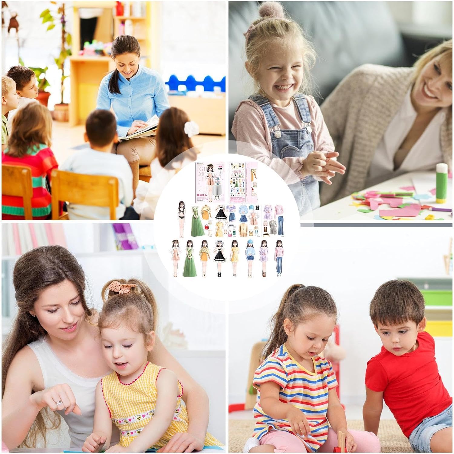Coltiva talenti unici: apri la porta della creatività ai bambini con bambole magnetiche da vestire. Immergili in un gioco fantasioso e guardali mentre generano più combinazioni di vestiti, usando la propria immaginazione per dare vita alle bambole. Libera creatività: esplora la tua creatività e divertiti con le bambole magnetiche da vestire creando combinazioni di abiti uniche e posizionandole ovunque per un'attività divertente e coinvolgente. Divertimento creativo: i colori vivaci dei vestiti delle bambole magnetiche ispirano più combinazioni, incoraggiando i bambini a esplorare diversi abbinamenti di modelli. I colori vivaci cattureranno sicuramente l'attenzione di ogni bambino, regalando ore di gioco creativo. Divertimento portatile: porta il divertimento ovunque con le bambole magnetiche da vestire. Questo set compatto è facile da trasportare e perfetto per il gioco a casa o in viaggio. Coinvolgenti e sicure: queste bambole magnetiche da vestire sono adatte per le bambine dai 4 ai 7 anni, che possono divertirsi a creare abiti e scenari diversi con loro. I magneti sono sicuri e convenienti, garantendo un gioco fluido e sicuro. I bordi sono lucidi e i materiali sono durevoli, rendendoli progettati per bambini dai 3 anni in su.