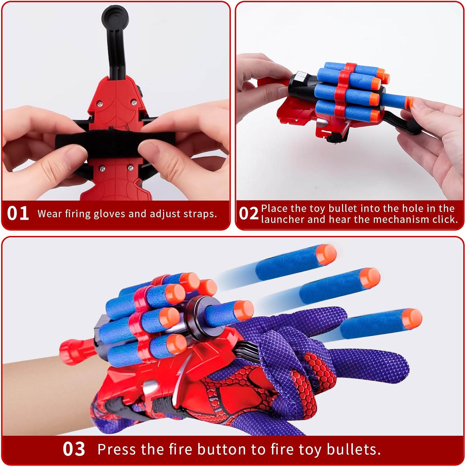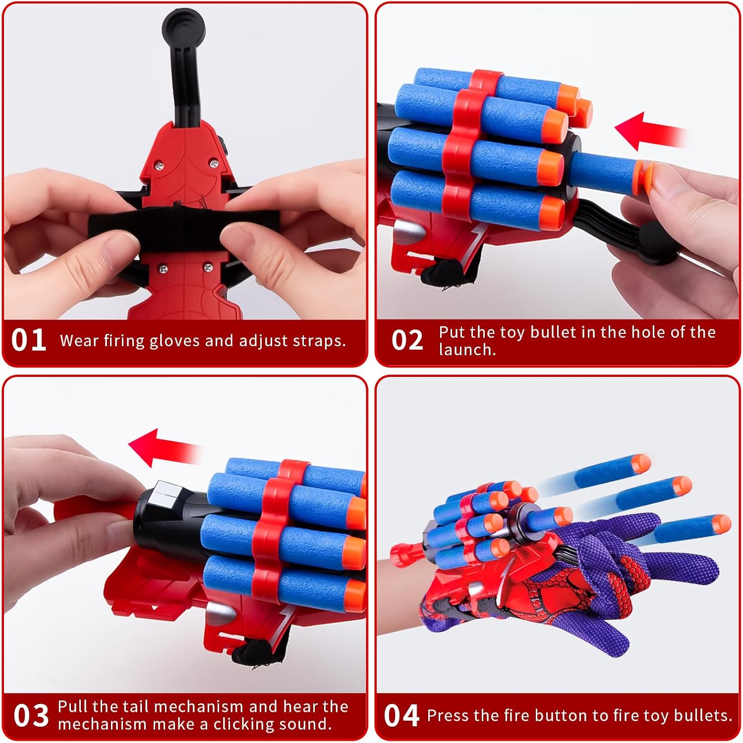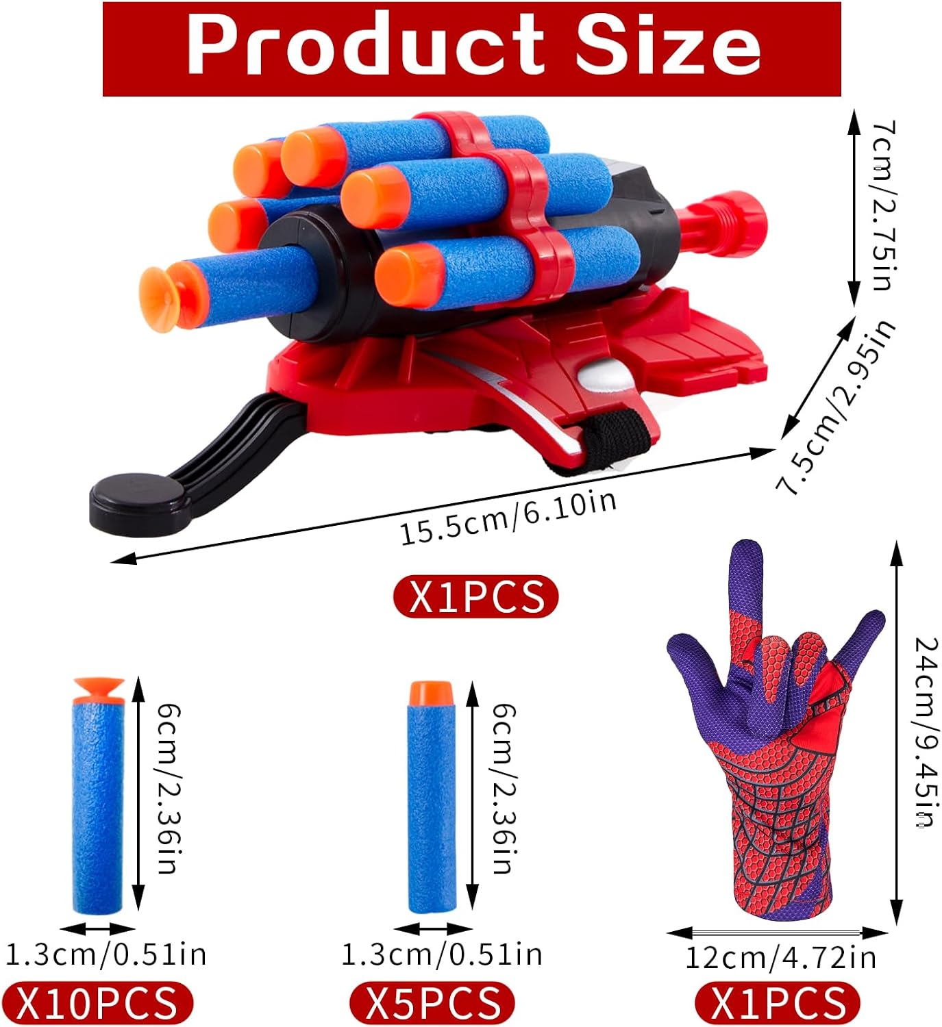 🕸【Spider Launcher Glove】Il set di web shooter spider contiene un lanciatore, un guanto, 5 proiettili di spugna con punte rotonde e 10 proiettili di spugna con ventose. Indossando questo spider giocattolo puoi imitare l'eroe ragno nel film, che è un must per gli appassionati di cinema. 🤟【Funzionamento semplice】Dopo aver indossato il spara ragnatele spider, inserire il proiettile nel foro del trasmettitore, quindi tirare il meccanismo rosso all'estremità del trasmettitore e sentire il clic del meccanismo. Infine premi il pulsante di avvio e sei pronto per giocare. 🕷【Materiale di alta qualità】 Il spider giocattoli è realizzato in plastica di alta qualità, che non si danneggia facilmente e ha una portata fino a cinque metri. I proiettili sono realizzati in spugna e silicone morbido e non danneggiano le persone durante il gioco. 🎯【Design raffinato】 Il design del guanto spider è ispirato all'eroe ragno del film, quindi il launcher utilizza la stessa combinazione di colori, che è molto bella e bella. Con un trasmettitore puoi imitare le scene dei film. 🎁【Regalo perfetto】 Ogni bambino che ama gli eroi ragno adorerà questo regalo. Puoi regalare questo spider giocattolo ai bambini durante feste di compleanno, feste a tema ragno, Halloween, carnevale e varie occasioni.