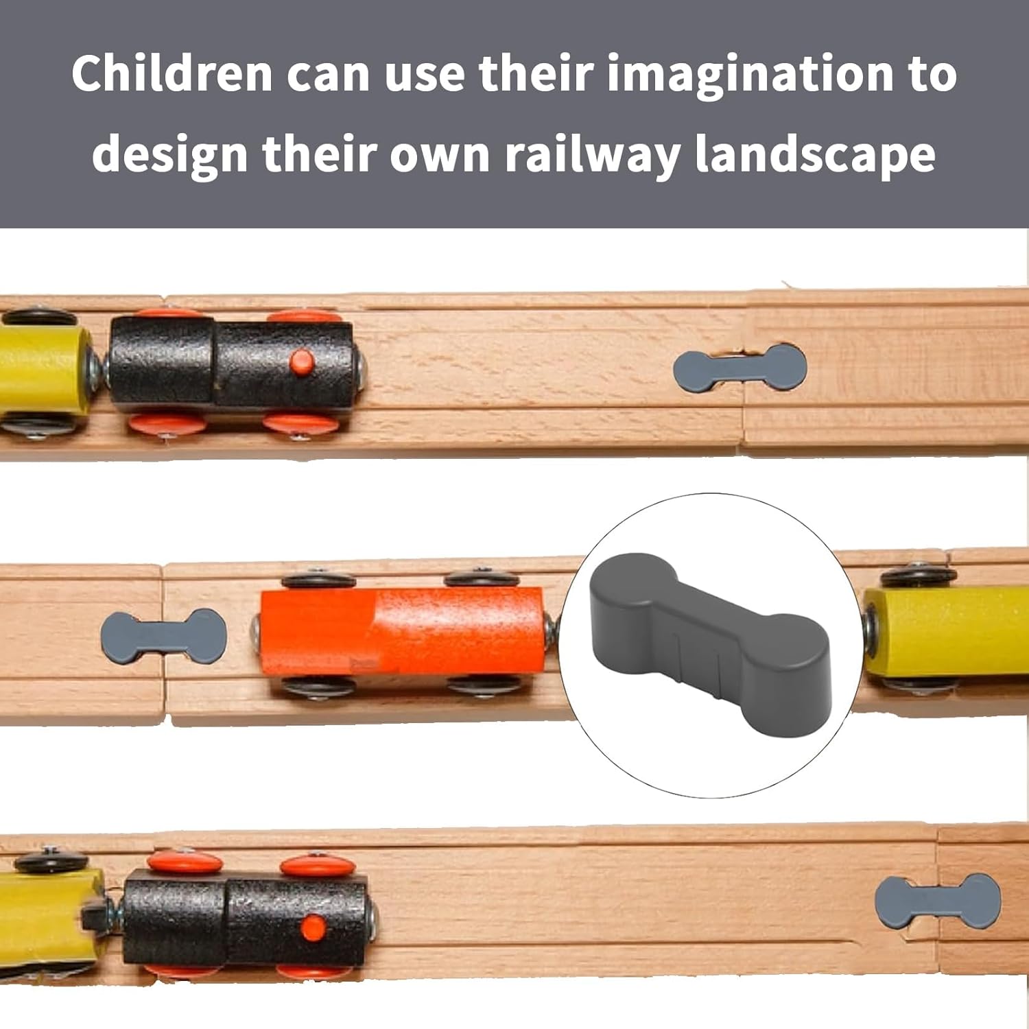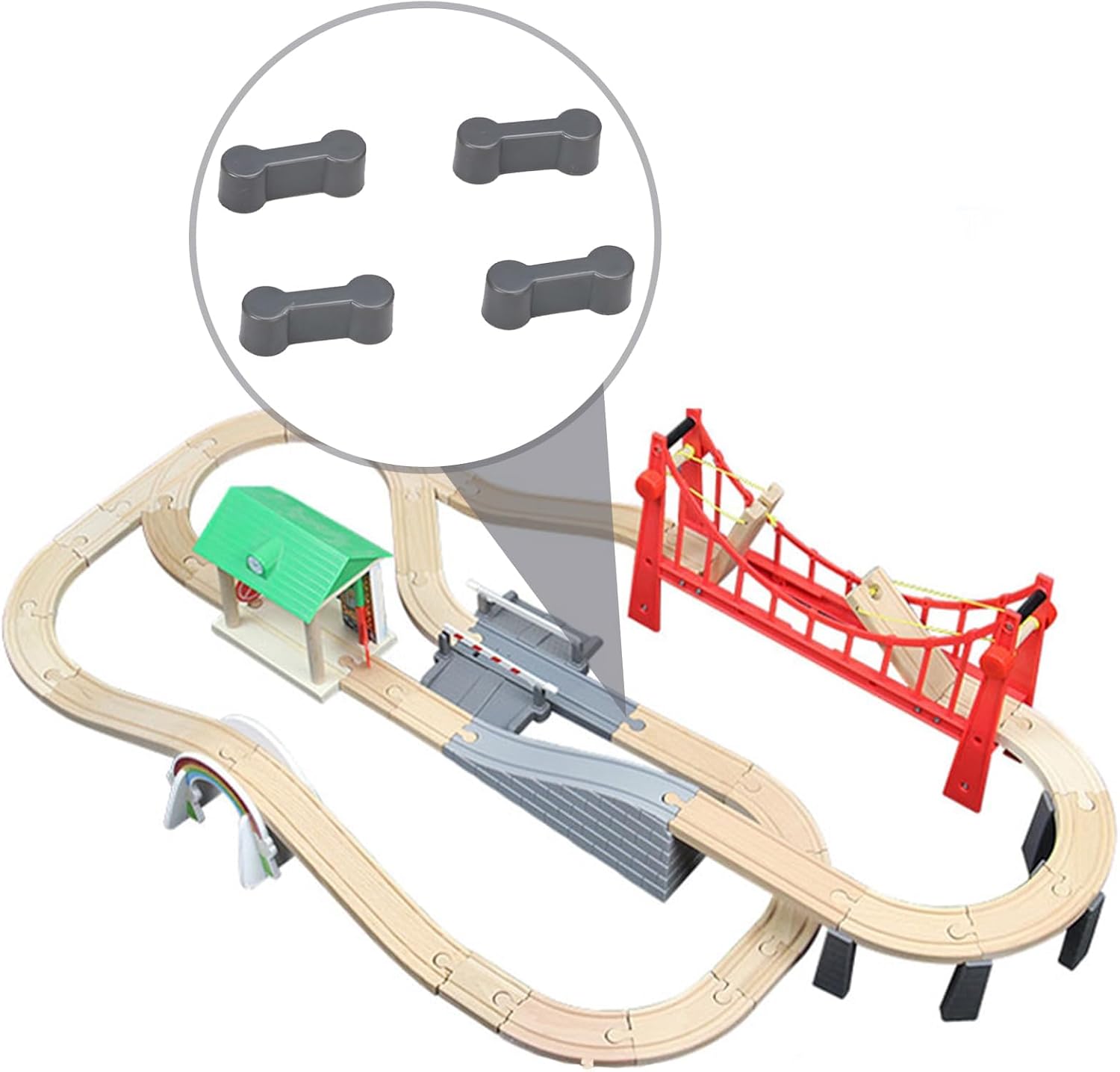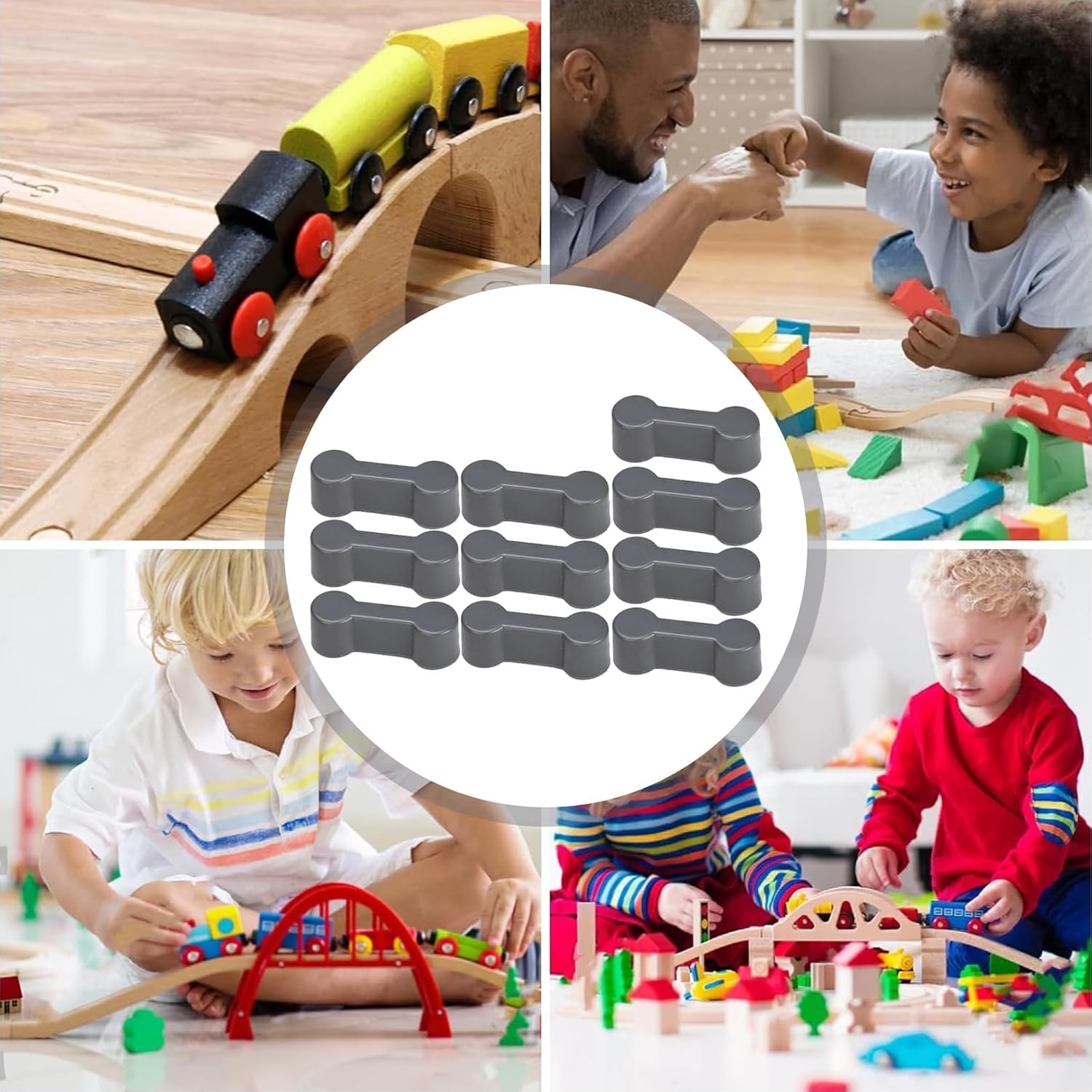 Ampia compatibilità: il nostro set di connettori adattatori per binari in legno da 10 pezzi è compatibile con la maggior parte delle ferrovie in legno. Ti consente di collegare insieme diverse rotaie in legno e progettare una linea ferroviaria diversificata e individuale. Valore educativo: giocare con le ferrovie in legno favorisce lo sviluppo delle capacità motorie, la coordinazione occhio-mano e il pensiero creativo nei bambini. Costruendo e progettando le proprie linee ferroviarie, apprendono anche i concetti di base della logica e dell'orientamento spaziale. I nostri connettori adattatori per binari in legno offrono quindi non solo divertimento, ma anche un valore educativo per bambini di tutte le età. Facile da usare: i nostri adattatori sono facili da usare e consentono ai bambini di costruire la propria linea ferroviaria. Possono essere facilmente montati in diversi punti delle rotaie per creare i layout di percorso desiderati. Gioco creativo: con il nostro set di adattatori i bambini possono dare libero sfogo alla loro immaginazione e creare il proprio paesaggio ferroviario. Puoi costruire percorsi dritti, curve, incroci e altro ancora per vivere emozionanti avventure. Ideale per eventi: il nostro set di connettori per pista in legno non è adatto solo per uso privato a casa, ma anche per feste di compleanno, appuntamenti di gioco e altri eventi. Offre un modo divertente per i bambini di giocare insieme e creare linee ferroviarie creative.