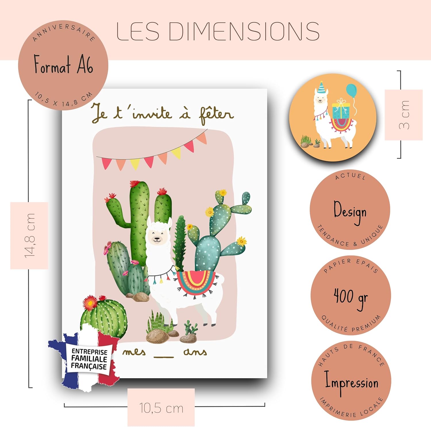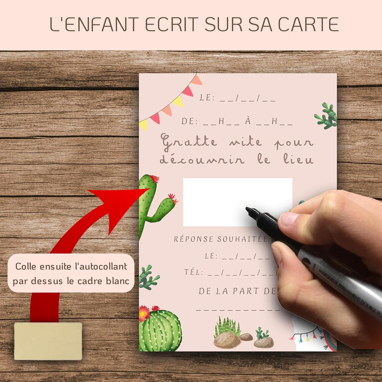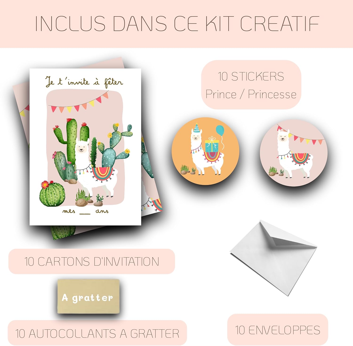 Invito Magico a Gratta - Alpagas & Lamas : Trasforma l'invito in un'avventura emozionante con le carte RXLITE! I tuoi ospiti saranno affascinati dall'enigma dorato da graffiare, rivelando il luogo segreto della festa. Immagina i loro volti illuminati di sorpresa e curiosità. L'avventura inizia appena l'apertura dell'invito! Kit completo di invito Alpaga-Lama : offri un'esperienza creativa indimenticabile con il nostro kit di 10 biglietti d'invito a tema Alpaga-Lama e cactus! Ogni kit include buste, adesivi personalizzabili e adesivi misteriosi da graffiare. Perfetto per rivelare il luogo della festa in modo originale e divertente. Lascia libero sfogo all'immaginazione dei tuoi figli per un invito che esce dall'ordinario! Partecipazione Bambino all'Onore : Coinvolgi tuo figlio nell'organizzazione della sua festa con i nostri biglietti d'invito! Facili da riempire, personalizzare e decorare, trasformano la preparazione in un'attività divertente e creativa. Risveglia il loro entusiasmo lasciandoli scrivere i nomi dei loro amici e incollare gli adesivi da graffiare. Rendi l'invito parte integrante della festa! Invito Mistero - Curiosità Garanzia : Sorprendi e incuriosita con i nostri inviti unici! Ogni biglietto è un invito all'avventura, risvegliando la curiosità dei piccoli ospiti. Niente più biglietti ordinari, i nostri inviti Alpaga-Lama promettono una festa memorabile ed emozionante, piena di sorprese a prima vista. La promessa di un evento straordinario si legge in ogni dettaglio! Kit Made in France – Ecoesponsabile : Scegli l'eccellenza francese con il nostro kit di invito! Progettato e assemblato negli Alti della Francia da RXLITE, un'azienda familiare attenta alla qualità. Ogni elemento riflette il nostro impegno ecocompatibile, con materiali locali e produzione certificata STAMPA VERDE. Offri un invito che unisce creatività, qualità e rispetto dell'ambiente.