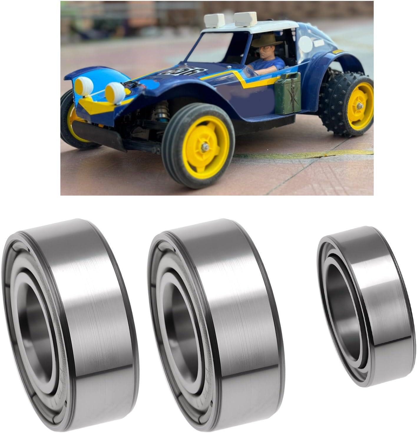 Dimensioni del prodotto : Questo prodotto contiene cuscinetti di due misure, uno con diametro interno di 5 mm, diametro esterno di 11 mm e spessore di 4 mm, e l'altro con diametro interno di 5 mm, diametro esterno di 8 mm e spessore di 2,5 mm. Misurazioni manuali, si prega di considerare lievi errori. Compatibilità : Questo prodotto è compatibile con Tam-iya telaio DT-01, incluso compatibile con Mad Fighter, compatibile con Lunchbox, compatibile con Midnight Pumpkin, compatibile con Grasshopper, ecc. I cuscinetti a sfere sono sigillati con rondelle a Z su entrambi i lati per impedire efficacemente l'ingresso di polvere e sporco. I cuscinetti sono lubrificati con grasso ad alte prestazioni e basso attrito. L'uso di cuscinetti a sfera può ridurre la resistenza all'attrito, aumentando così la velocità, prolungando la durata di una singola batteria e riducendo la manutenzione del veicolo. Materiale del prodotto : Questo prodotto è appositamente progettato e realizzato in materiale metallico, con una lunga durata e non si danneggia facilmente.