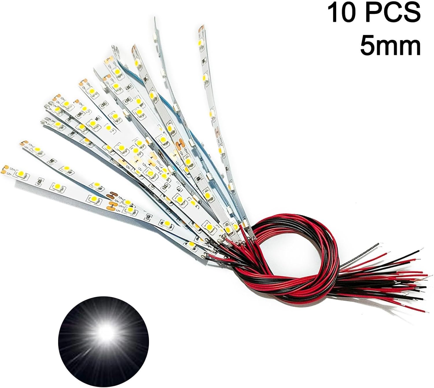 Set di 10 strisce LED flessibili cablate per illuminazione modelli e case delle bambole con un intervallo di tensione di 12 V 18 V (luce bianca)