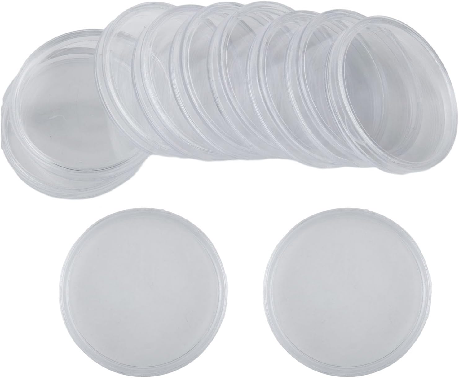Contenitore rotondo in plastica trasparente: realizzate in plastica trasparente, queste capsule portamonete sono progettate con un'apertura a mezzaluna, che lo rende comodo da aprire. Forniscono una protezione sicura per la tua collezione di monete, rimangono in perfette condizioni. Che tu sia un collezionista di monete o stai cercando un perfetto, questo set di 100 capsule per monete è l'ideale. Il diametro di ogni capsula è di circa 38 mm e l'altezza è di circa 5 mm. Sono affidabili e di lunga durata. Perfetto per organizzare ed esporre la tua collezione di monete.