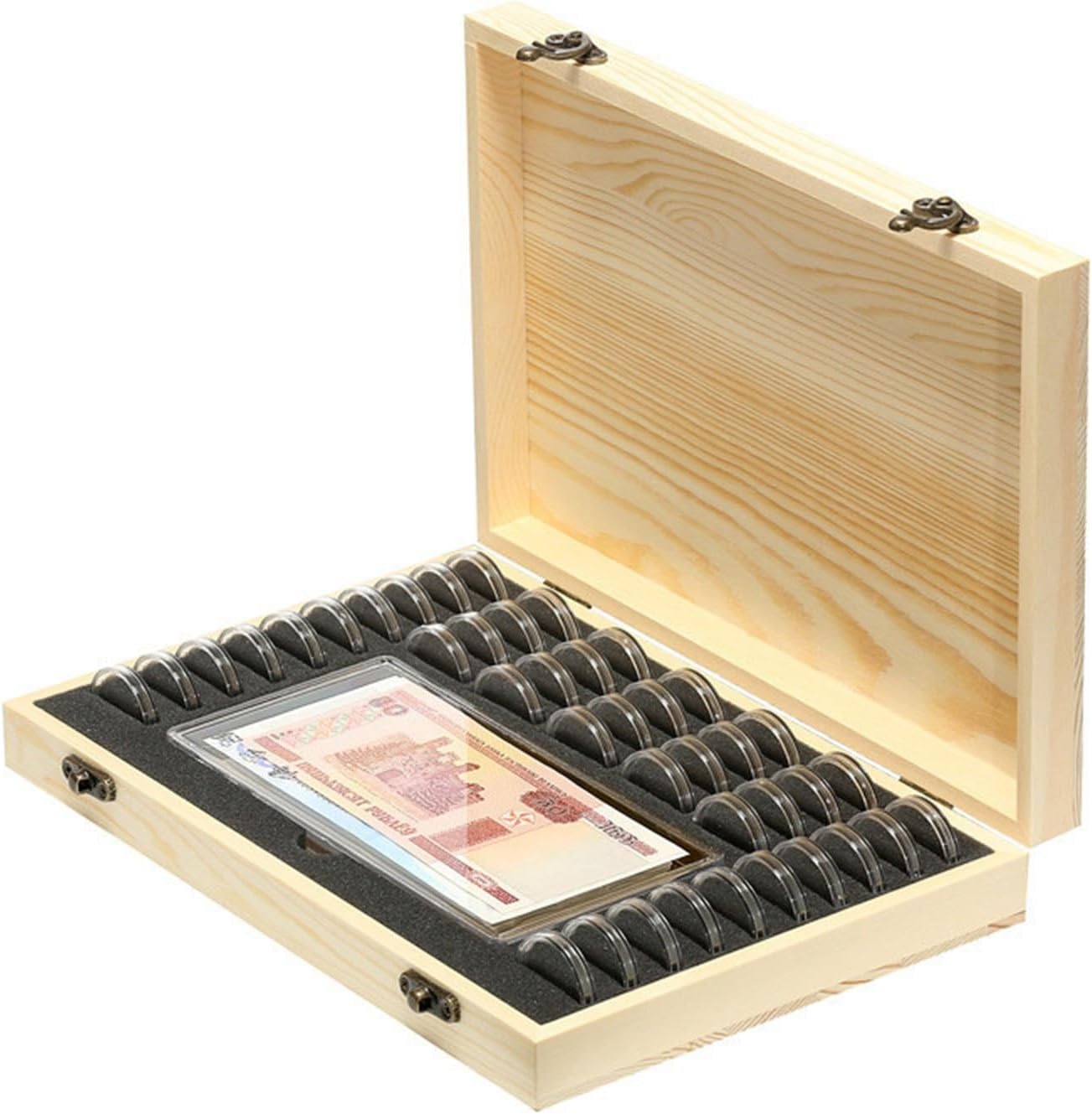 Capsule per monete: queste capsule per monete sono realizzate in plastica, una protezione duratura per la tua collezione di monete. Protezione sicura: progettate per fornire una protezione sicura, queste capsule mantengono le monete al sicuro da polvere, graffi e altri potenziali danni. Colore trasparente: il colore trasparente di queste capsule consente una facile visualizzazione e visualizzazione delle monete, mostrandone la bellezza e i dettagli. Diametro interno: 40 mm: con un diametro interno di 40 mm, queste capsule sono adatte per conservare monete di quelle dimensioni, fornendo una perfetta vestibilità e protezione. La confezione include: riceverai una confezione da 100 capsule per monete, che ti consentono di conservare e organizzare un gran numero di monete.