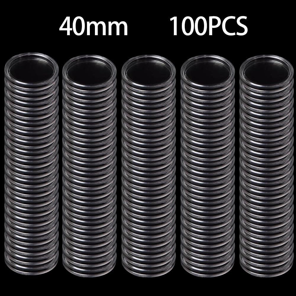 Set di 100 contenitori trasparenti per monete, per conservare ed esporre monete, diametro interno 40 mm