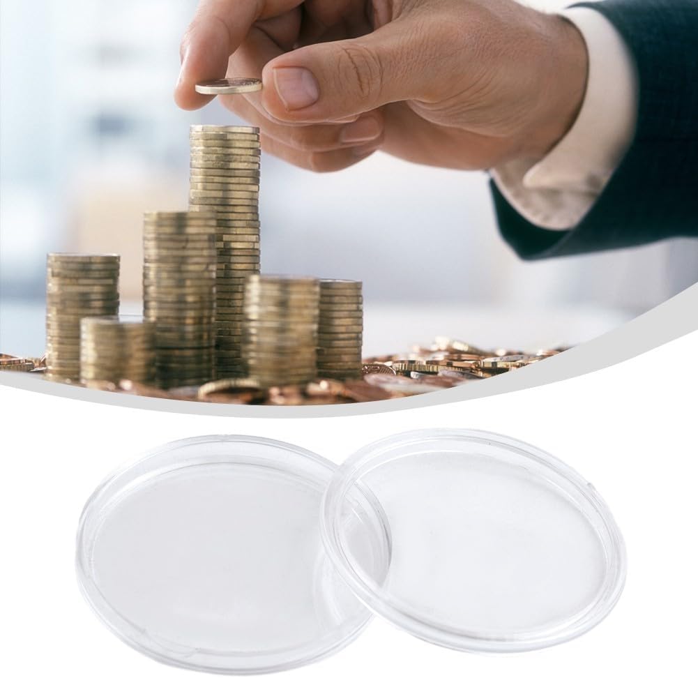 Portamonete rotondo in plastica Realizzato in materiale pratico. Splendidamente intagliato Un must per i collezionisti di monete commemorative. Grande capacità Conserva fino a 100 monete commemorative. Doppia protezione: