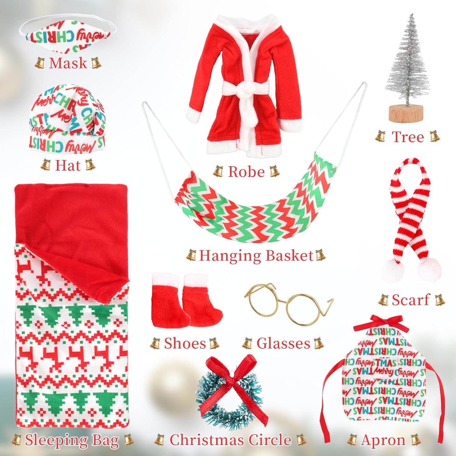 11 vestiti e accessori per bambola da elfo: riceverai 11 accessori, tra cui sacco a pelo a quadri, accappatoio, occhiali, amaca con cuscino, maschera a quadri, grembiule con cappello da chef e molto altro ancora. Una bella combinazione può soddisfare le tue esigenze di decorazioni per bambole. Sono una bella combinazione come regalo di Natale per i tuoi bambini, aggiungendo forti vibrazioni festive! Facile da indossare: i vestiti da scaffale sono facili e veloci da vestire la bambola, le dimensioni sono giuste, sono piccoli e leggeri. Questi accessori sono facili da indossare e renderanno la tua bambola piena di vitalità e adorabile. Abbinamento gratuito: il kit sullo scaffale consente ai bambini di giocare con le loro abilità pratiche e vestire le bambole in base alle proprie preferenze. Gli accessori per vestiti per bambole sono pieni di elementi natalizi, il design a quadri di bufalo si rivolge al tema del festival, i tuoi bambini possono utilizzare questi diversi stili di vestiti per vestirsi per abbinare gratuitamente per stimolare la loro immaginazione. Materiale di alta qualità: i vestiti e gli accessori sullo scaffale sono progettati con elementi natalizi, abbinati a plaid di bufalo rosso e verde, ecc. I sacchi a pelo e i vestiti sono realizzati in cotone e poliestere, morbidi, atossici e inodori, affidabili e confortevoli. Scelta regalo sorprendente: questi accessori per elfi cattivi sono un bel regalo di Natale per bambini, figlie, nipoti, amici e molto altro ancora. Le ragazze possono utilizzare questi accessori per giocare con gli amici. Incontra il sogno delle ragazze di vestirsi! Perfetto anche come regalo di Capodanno, regalo per la festa dei bambini, regali di compleanno, regali di Natale per ragazze!