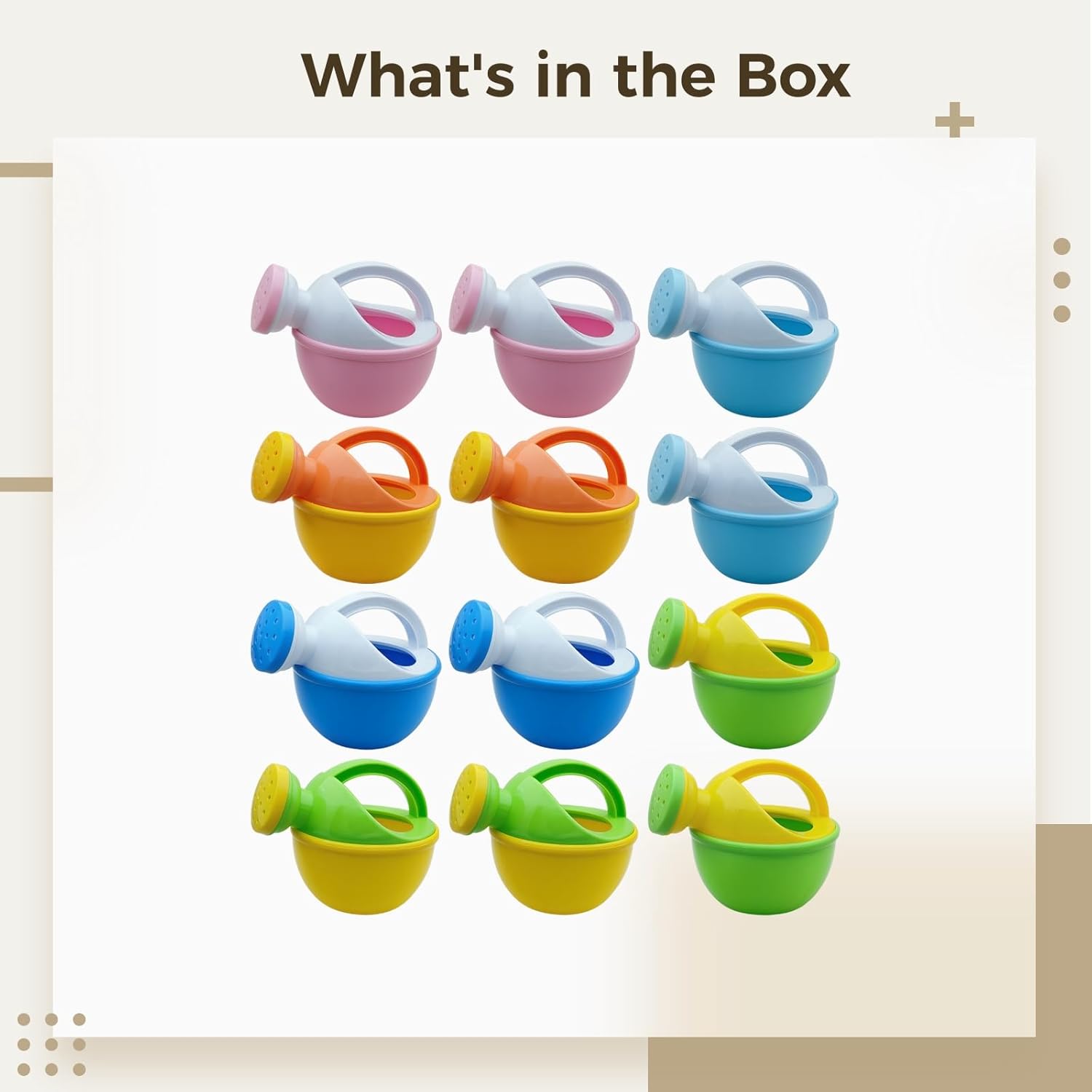 Gioco coinvolgente del bagno: rende il bagno più divertente con annaffiatoi colorati; mantiene i più piccoli intrattenuti e impegnati durante il bagno Stimolante gioco all'aperto: ideale per giocare con sabbia e acqua in spiaggia o nella sabbiera; favorisce la creatività e lo sviluppo delle abilità motorie Colori vivaci: disponibile in quattro colori attraenti: rosa, blu, giallo e verde; progettato per catturare l'attenzione dei bambini Design facile da usare: dispone di un manico robusto perfettamente dimensionato per le mani piccole; la plastica leggera lo rende facile da tenere e versare Lunga durata: realizzato in plastica resistente per resistere all'uso regolare; il delicato getto d'acqua dal piccolo ugello garantisce un gioco sicuro