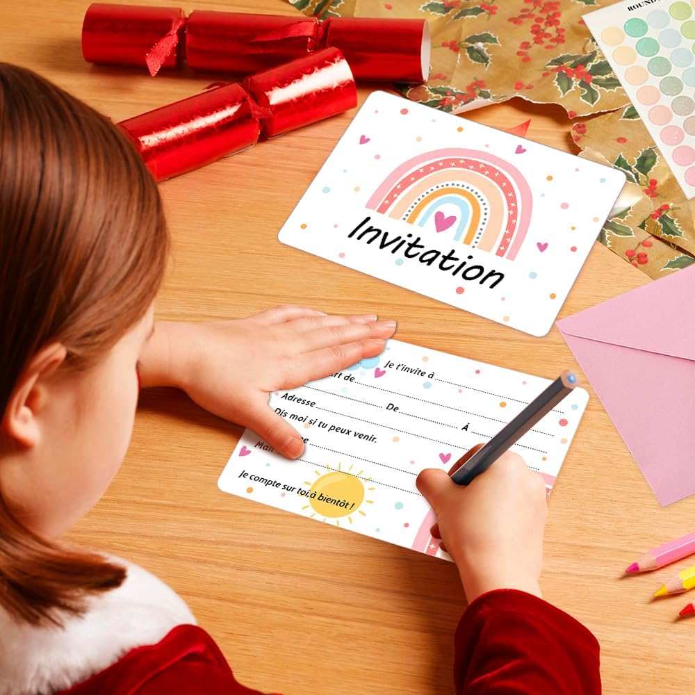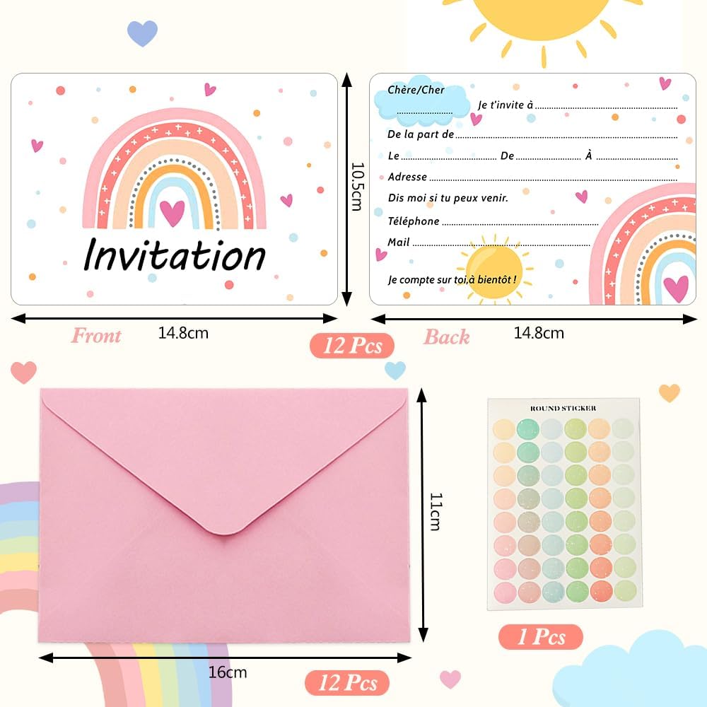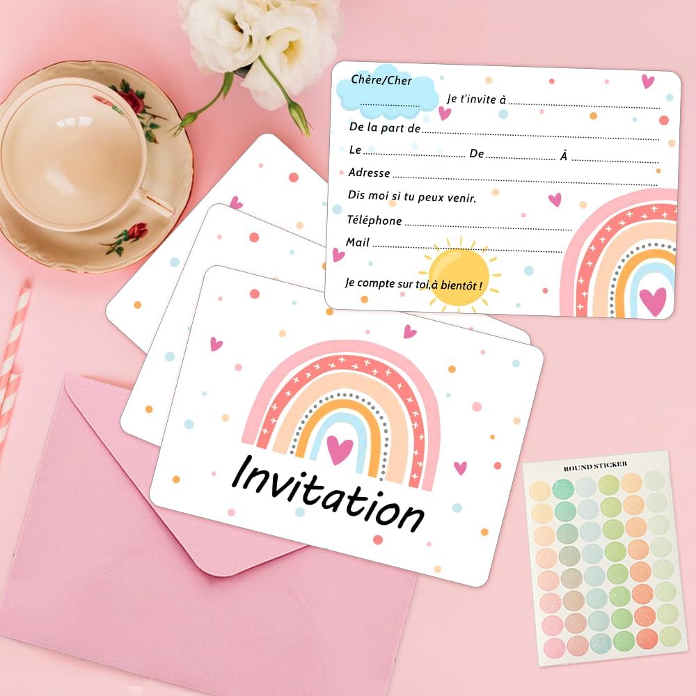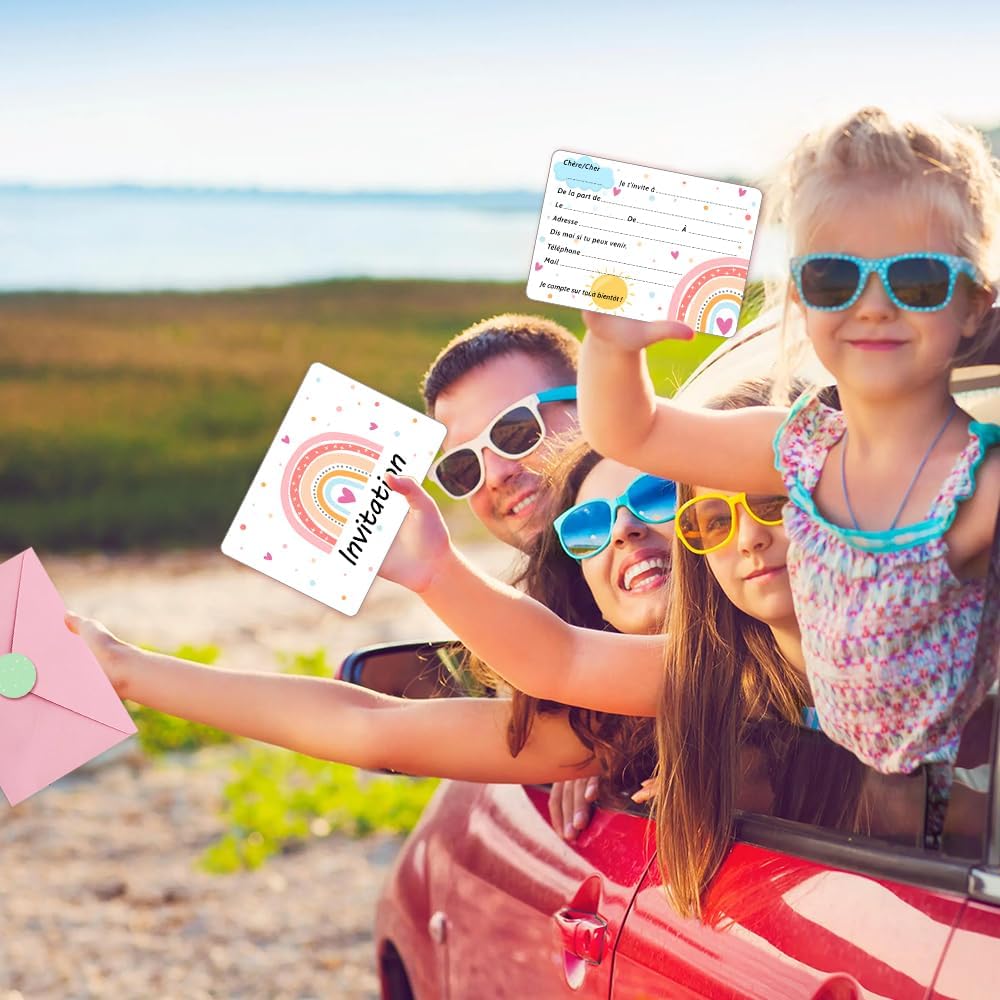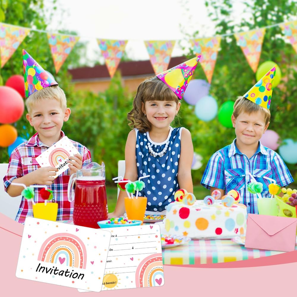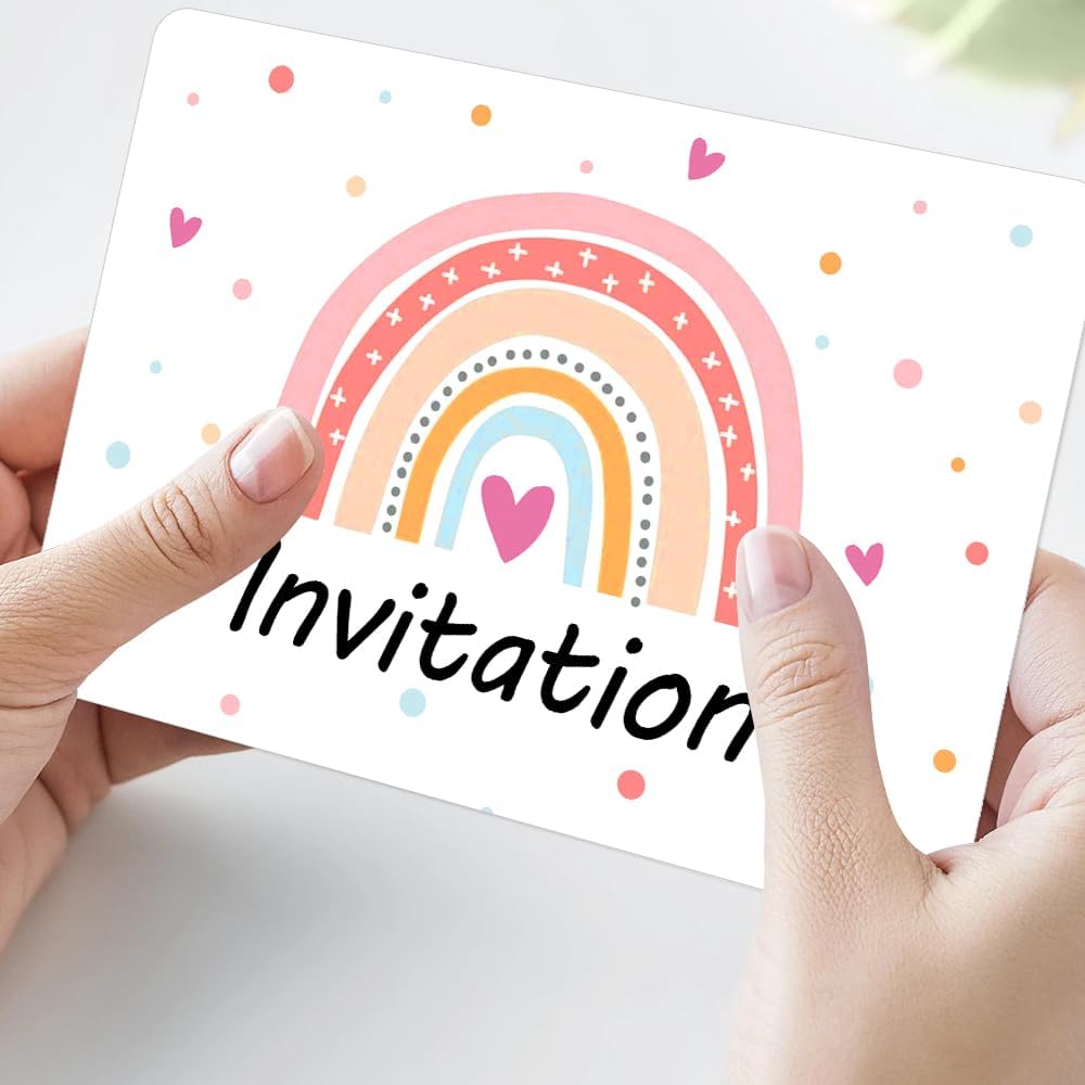 Biglietti d'invito in colori arcobaleno: questi biglietti colorati sono perfetti per qualsiasi celebrazione e portano gioia. Multiuso: per feste di compleanno, baby shower o matrimonio, i biglietti arcobaleno si adattano a qualsiasi occasione. Materiali di alta qualità: realizzato in robusto cartone stampato e rifinito con un rivestimento lucido. Contenuto della confezione: nel set sono inclusi 20 biglietti in formato 10,8 x 15,2 cm (4,25 x 6 pollici) e buste abbinate. Design semplice: i biglietti vuoti lasciano molto spazio per personalizzare con testo o decorazioni.