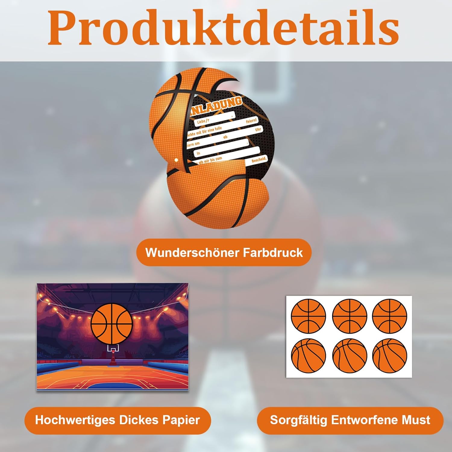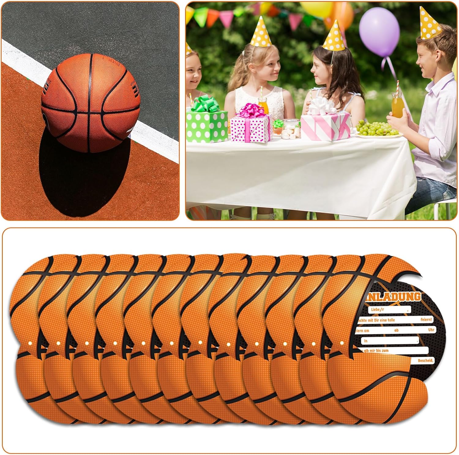 BASKETBALL PARTY – Il fantastico biglietto d'invito per il prossimo compleanno di bambini da basket, per ragazzi e ragazze Divertente invito: gli inviti per feste di basket hanno un diametro di 15 cm e ne riceverai 12 Compilazione rapida: grazie ai campi predefiniti, la compilazione dei biglietti d'invito è più veloce di un lancio di cestino Alta qualità: i biglietti di compleanno sono realizzati con carta da 400 g/m² Stampati in Germania: i nostri biglietti d'invito vengono commissionati esclusivamente da tipografie con produzione ecologica