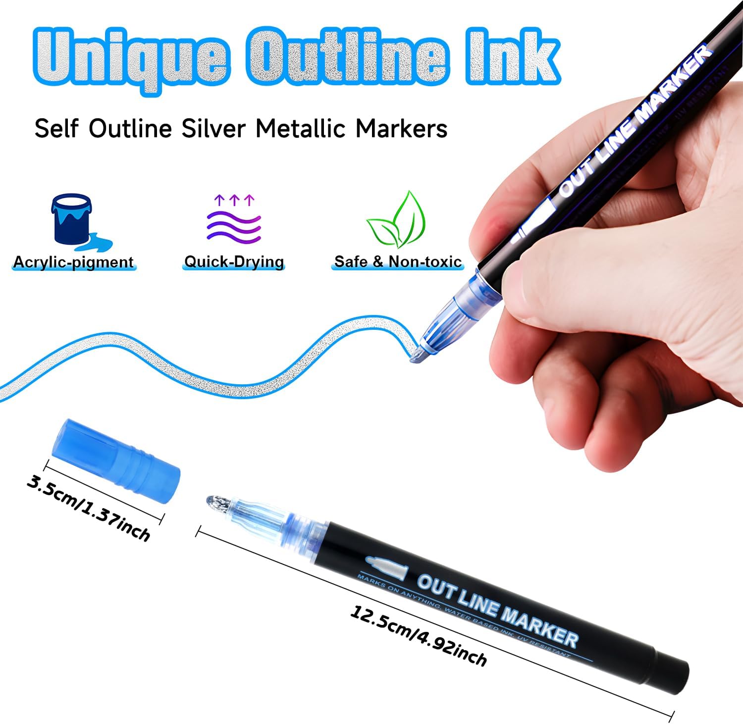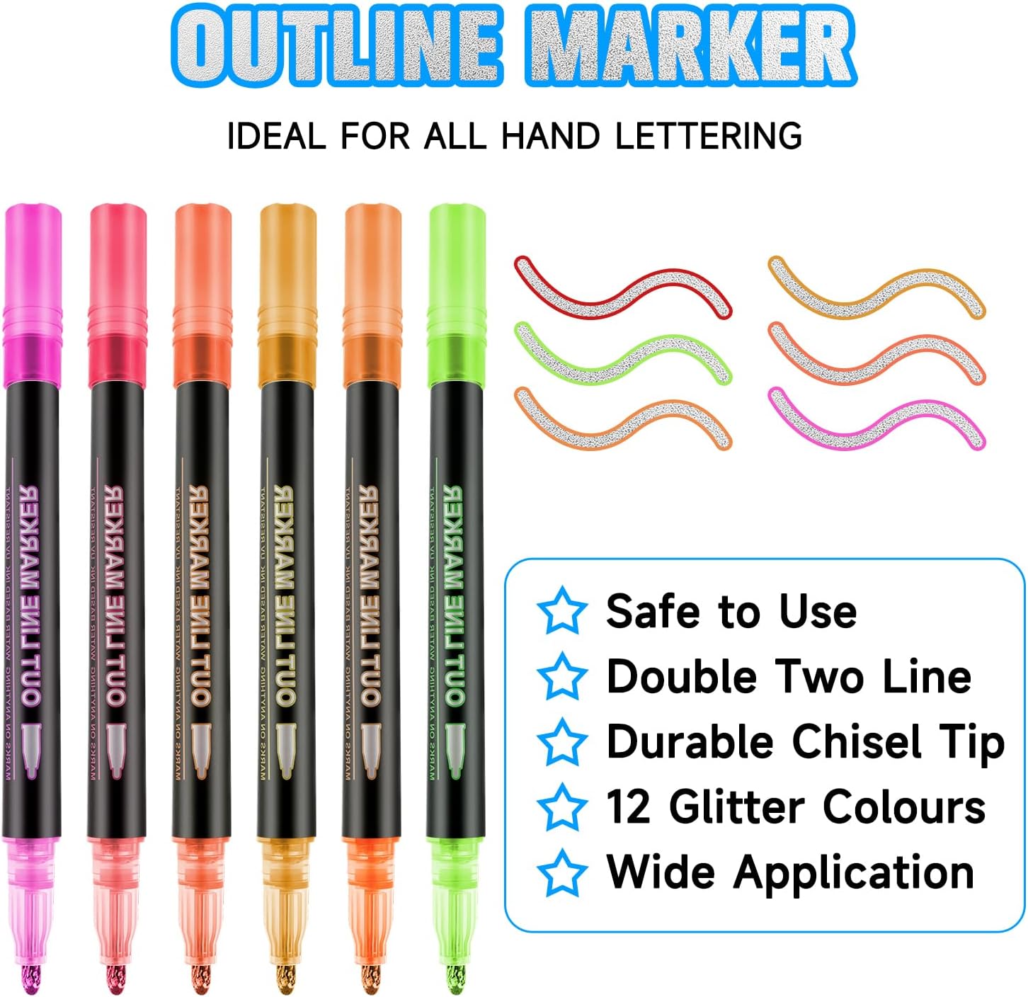 3 effetti magici di pittura: le nostre penne magiche hanno una funzione unica a doppia linea automatica. Disegna automaticamente le doppie linee (argento + colorato) su carta bianca, solo argento su sfondo nero e solo vernice su superfici lisce 12 colori vivaci: 12 colori vivaci con doppia linea e effetto glitter. Con bordo metallico scintillante per incantevoli opere d'arte Utilizzo universale: le matite magiche per bambini sono adatte per carta, legno, vetro, pietre e molto altro ancora. Ideali per scrapbooking, biglietti e progetti fai da te Inchiostro sicuro per bambini: le nostre penne glitterate sono realizzate con inchiostro a base d'acqua, sono realizzate con una punta in nylon ultra fine resistente all'usura e alla pressione, che consente una scrittura liscia. Adulti e bambini possono usarlo in modo sicuro con Regalo perfetto: le matite glitterate sono il miglior regalo per i vostri bambini. Ideale per sacchetti di scuola, compleanni per bambini e Natale, con elegante confezione. I bambini adoreranno dipingere con i pennarelli glitterati di MOTIBACK e con le penne glitterate creano sempre fantastiche opere d'arte