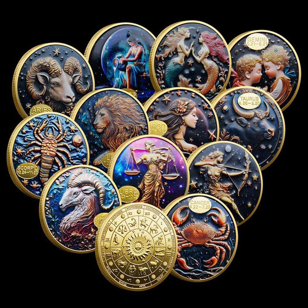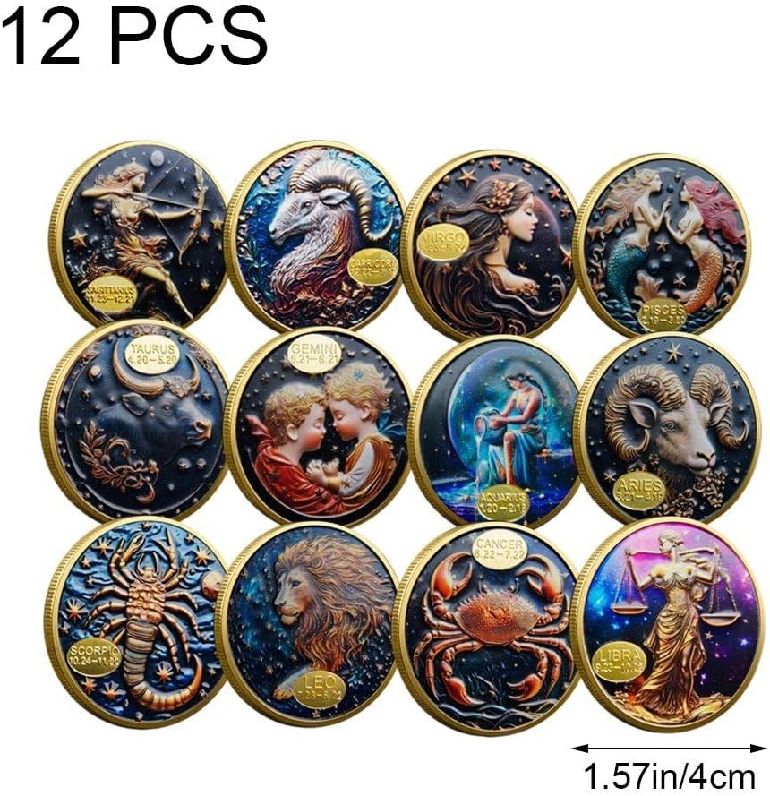 Ottima idea regalo, sono anche il regalo perfetto per un compleanno. Realizzato in metallo di alta qualità, ricco di commemorativo. Le monete commemorative raffiguranti i dodici segni dello zodiaco presentano una superficie con micro-rilievo. Perfette per collezioni, regali, souvenir, progetti scolastici, arti e mestieri e per gli appassionati. Monete commemorative delle costellazioni, monete sfida. È Un regalo fantastico per te o per ama collezionare monete.