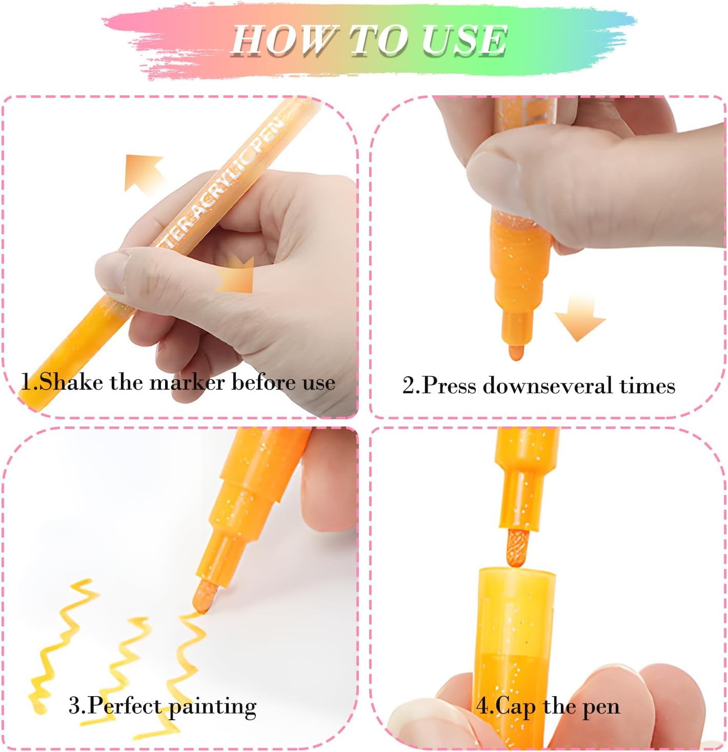 12 COLORI BRILLANTI CON EFFETTO GLITTER Set pennarelli con inchiostro a spirito glitterato che crea riflessi metallici sotto la luce, perfetti per disegni luminosi e decorazioni creative PUNTA PRECISA 3 mm PER DETTAGLI PERFETTI Design monopunta ultra-fine per contorni nitidi, scrittura precisa e disegni artistici su carta, legno, pietra e plastica SICURI PER I BAMBINI E FACILI DA USARE Inchiostro a base d'acqua non tossico, senza acidi e a rapida asciugatura, adatto a bambini dai 3 anni in su per scuola e attività creative IDEALI PER ARTI MANUALI E REGALI Pennarelli glitter essenziali per scrapbooking, biglietti di auguri, decorazioni su diverse superfici e come regalo per feste o Natale 12 penne glitterate colorate organizzate, perfetto per conservazione e trasporto