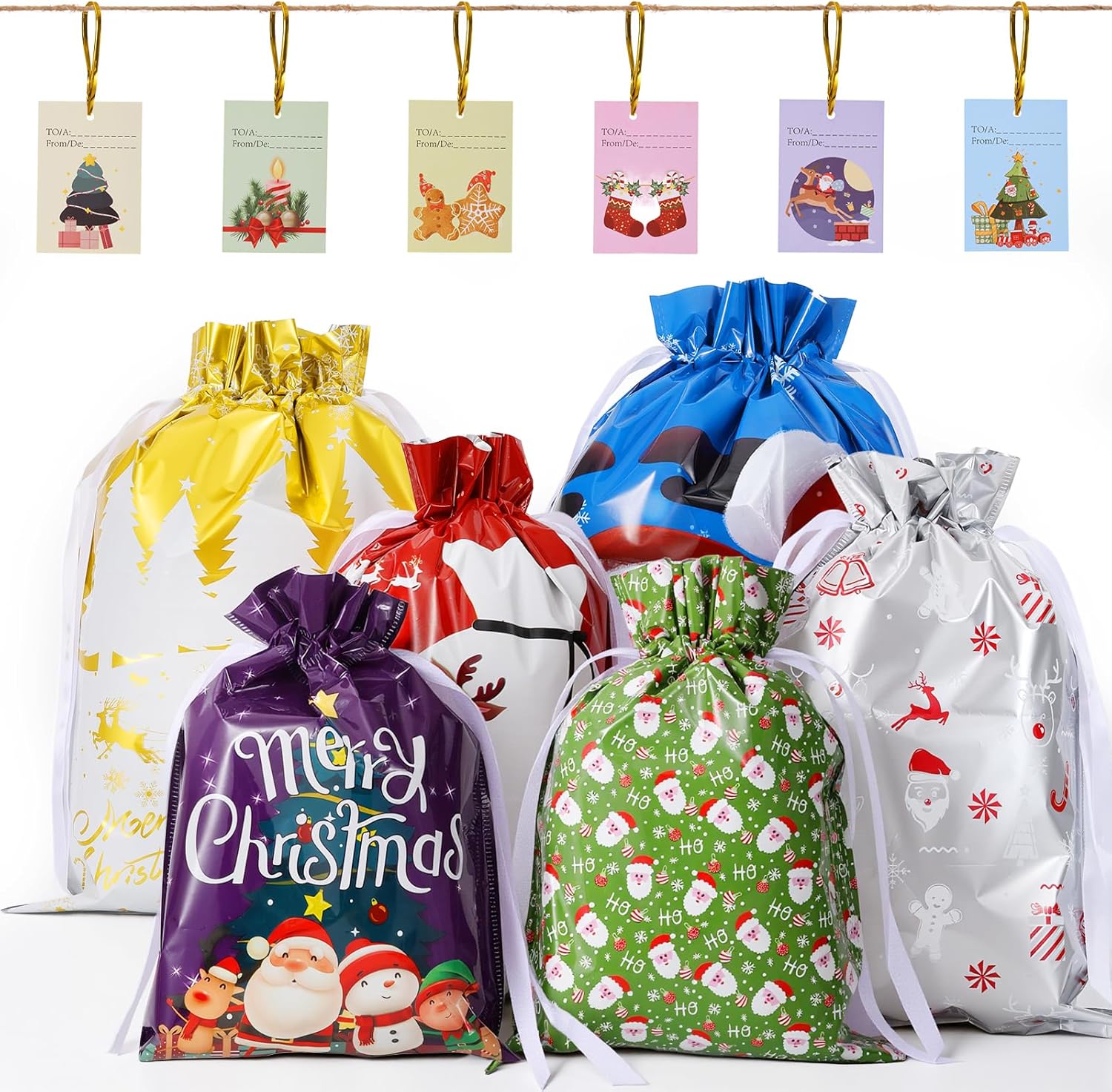 Riutilizzabile: gli interni spaziosi si adattano alla maggior parte delle dimensioni standard delle bottiglie di vino. Il design aperto semplifica l'inserimento o la rimozione di oggetti. Comodo per le feste: leggero e facile da trasportare, il che lo rende ideale per portare vino a feste, cene o incontri con gli amici. REGALO DI VINO VERSATILE: appositamente progettato per bottiglie di vino, ma funziona anche come regalo versatile per piccoli articoli per le vacanze. Design di stampa natalizia festiva: vivaci stampe a tema natalizio completano l'estetica natalizia. Porta un tocco di allegria ai regali di vino, ideale per feste, riunioni di famiglia o scambi segreti di Babbo Natale. MATERIALE NON TESSUTO PER DURATA: Realizzato in tessuto non tessuto di alta qualità, resistente agli strappi, leggero e abbastanza robusto da contenere bottiglie di vino standard.