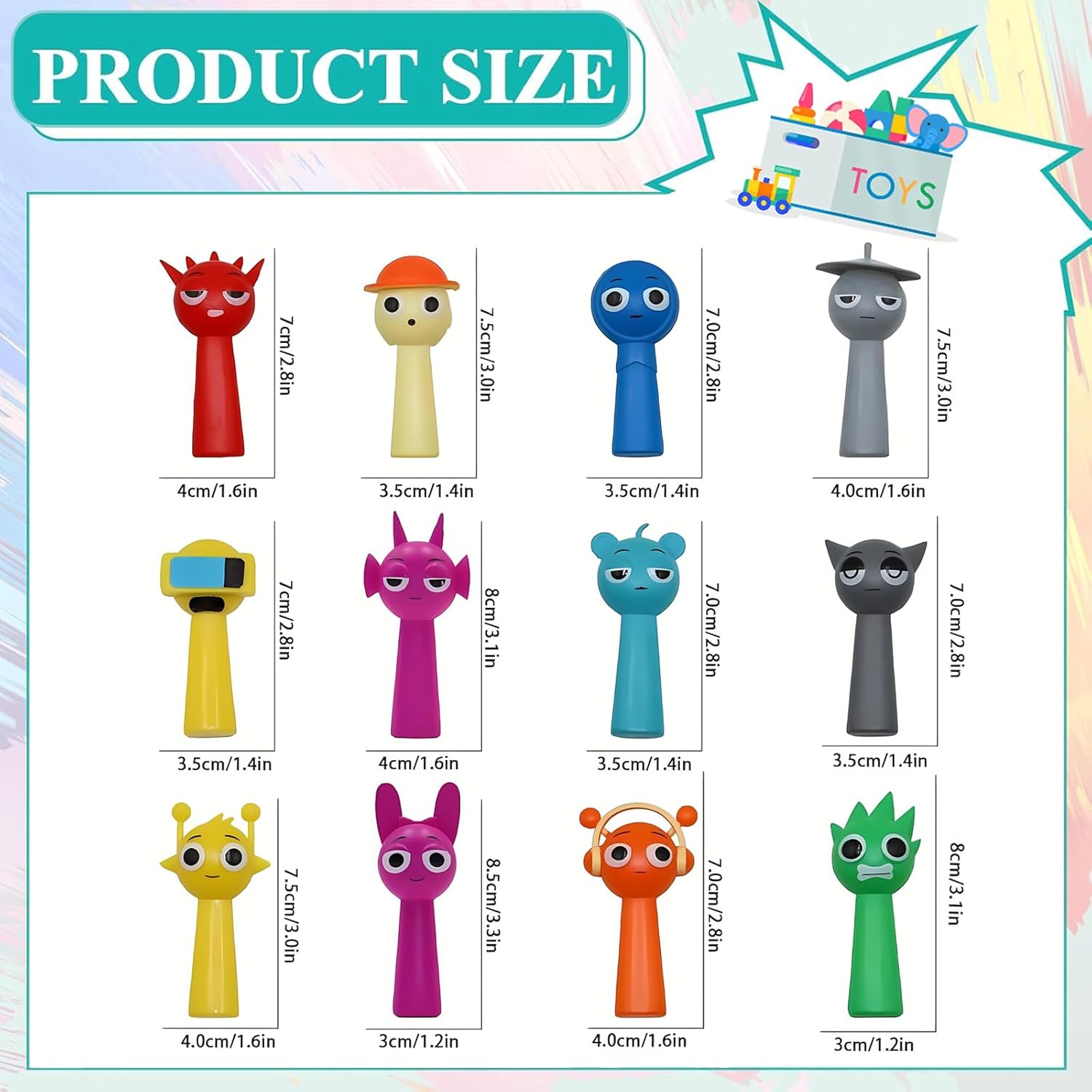 Divertimento con 12 personaggi colorati Sprunki: questo set contiene 12 personaggi Sprunki unici e ricchi di dettagli. Perfetto per collezionare, giocare e decorare! 【Facile da trasportare】: con una dimensione di circa 3,5 x 6,5 cm, i personaggi Sprunki sono ideali per le mani dei bambini. I personaggi Rainbow Friends sono facili da afferrare e portare ovunque. Un grande regalo che stimola l'immaginazione e invita a giocare! Ideale per giochi di ruolo e giochi fantasiosi con i personaggi ricchi di dettagli. Materiali di alta qualità: i personaggi Sprunki sono realizzati in PVC resistente che resiste anche a giochi intensi. I colori vivaci e i dettagli precisi rendono questi personaggi Rainbow Friends una vera attrazione. Questi personaggi sono ideali per giocare e collezionare. Personaggi squisiti: ogni personaggio Sprunki ha il suo fascino e le sue espressioni facciali individuali. I personaggi Rainbow Friends portano divertimento e gioia in ogni cameretta. Questi personaggi da collezione sono una grande aggiunta a qualsiasi collezione. Regalo ideale: per compleanno, Natale o semplicemente come piccola sorpresa di tanto in tanto, questo set di personaggi Sprunki da 12 pezzi è il regalo perfetto per tutti gli appassionati di Rainbow Friends. Un ottimo regalo per collezionisti e bambini che amano i personaggi ricchi di dettagli.