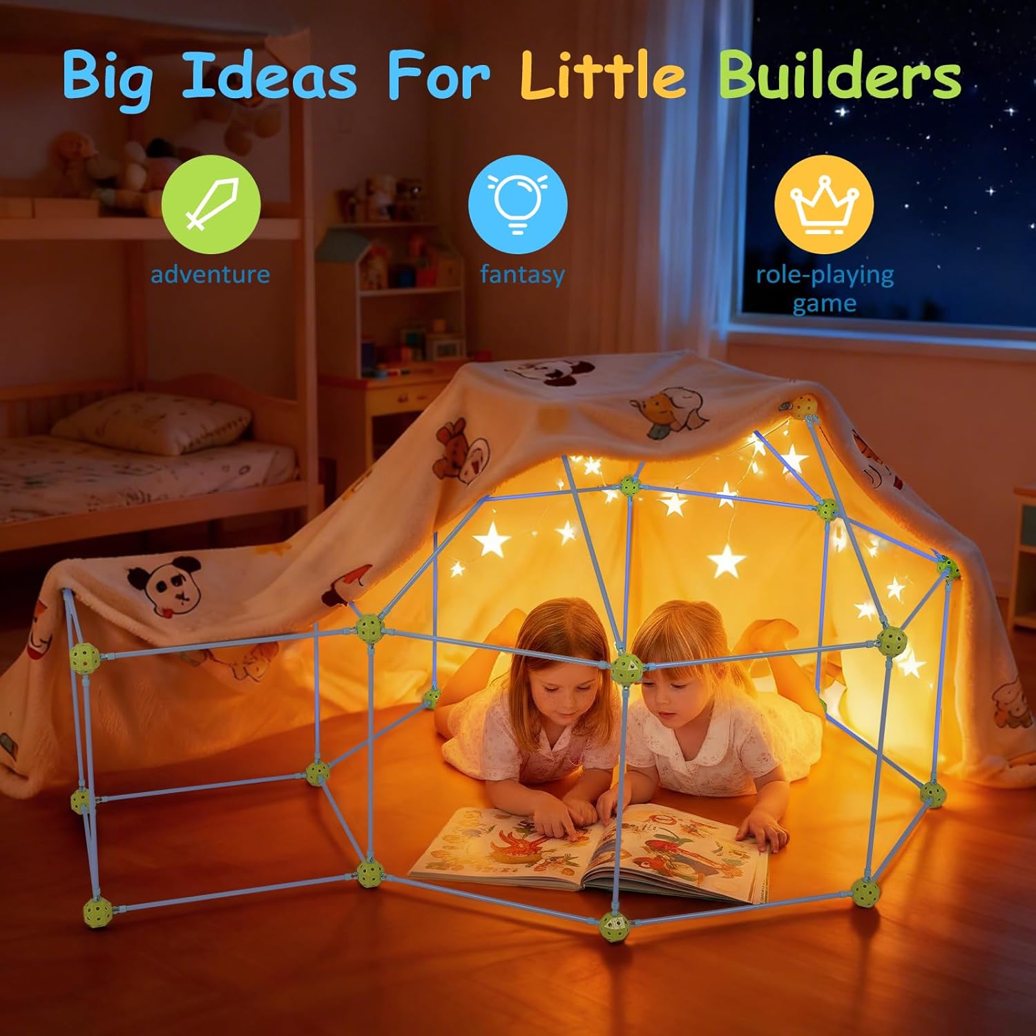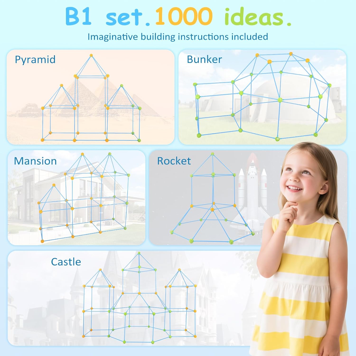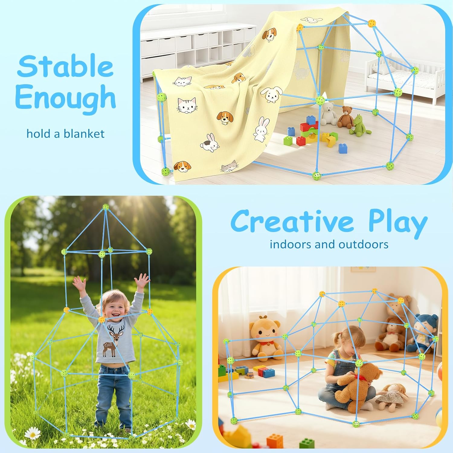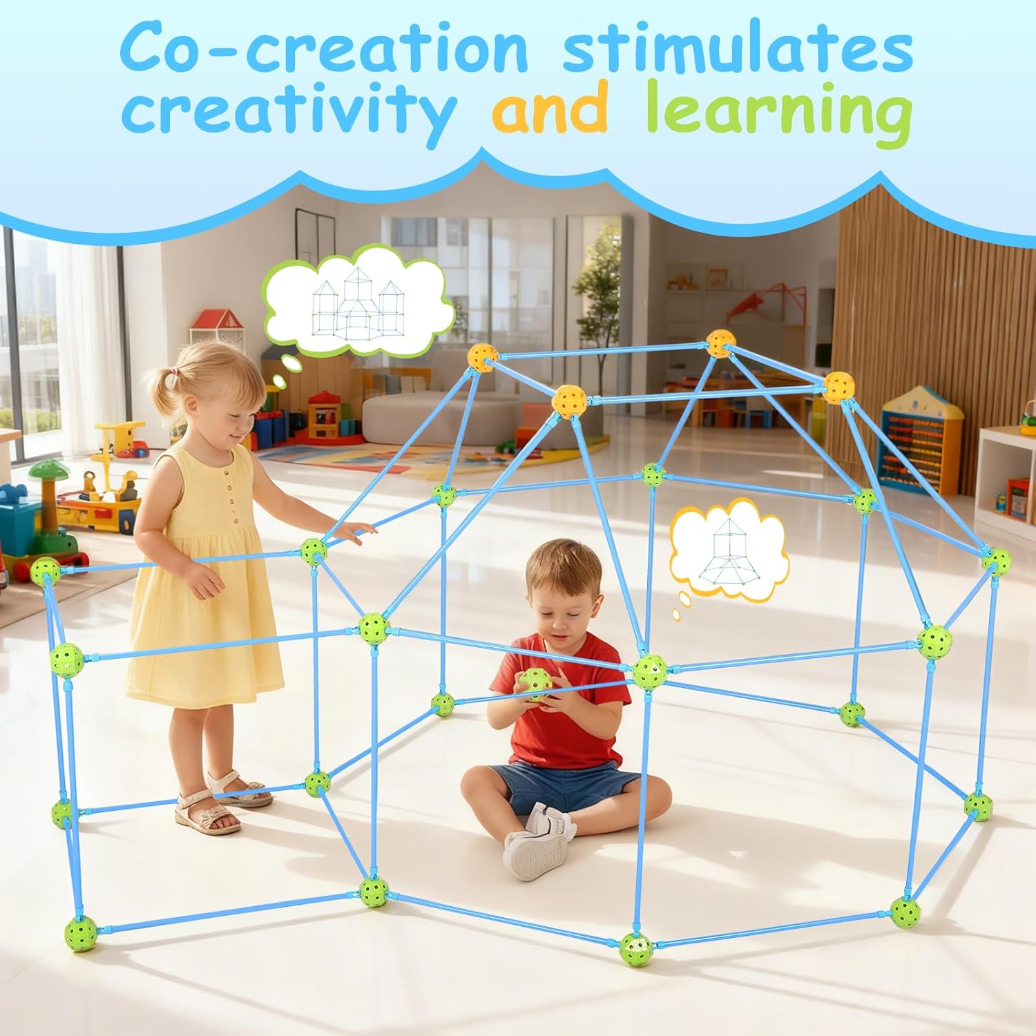 140 pezzi per bambini da costruire. Questo giocattolo educativo da costruzione a partire dai 4 anni favorisce la creatività, il pensiero spaziale e le capacità motorie. Ideale per ragazzi e ragazze come giocattolo educativo che sviluppa capacità di risoluzione dei problemi. Perfetto per i bambini che amano costruire grotte! Versatili progetti di costruzione per bambini creativi: la grotta per bambini con 140 pezzi può costruire razzi, castelli, grotte e igloo. Il giocattolo da costruzione offre possibilità illimitate per il gioco creativo e promuove l'immaginazione durante la costruzione di varie strutture. Materiale durevole premium: aste extra stabili e sfere di collegamento con struttura interna rinforzata garantiscono la massima stabilità. Questo giocattolo robusto resiste a giochi intensi ed è sempre riutilizzabile: perfetto per la costruzione di grotte frequenti Facile da montare con istruzioni (lingua italiana non garantita). Istruzioni di montaggio semplici con passaggi illustrati per un rapido divertimento. Anche i bambini piccoli dai 4 anni possono facilmente costruire varie costruzioni come grotte e tunnel. Ideale per i primi successi Set completo pronto per il gioco: il set per bambini contiene 96 aste stabili, 44 sfere di collegamento e istruzioni facili da seguire. Tutto pronto all'uso – il regalo perfetto per ragazzi e ragazze dai 4 anni in su, che garantisce un divertimento immediato