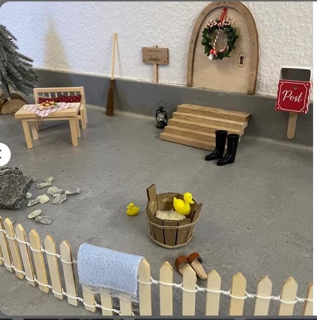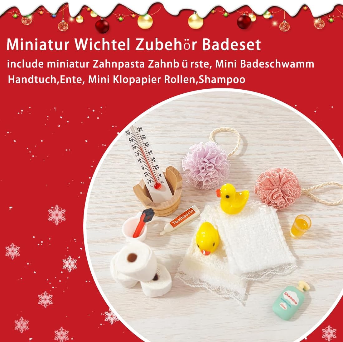 Set da bagno in miniatura con gnomo – Come un set completo da bagno come accessorio perfetto per il gnomo, include dentifricio in miniatura, mini spugna da bagno, asciugamano, anatra, mini rotoli di carta igienica, shampoo Esplora il mondo degli gnomi con i tuoi figli: l'arrivo dei gnomi è un evento magico per ogni bambino. Create il bagno dei gnomi secondo i vostri desideri e sorprendete i vostri bambini ogni giorno con nuove avventure Perfetto per accessori per porta del gnomo – Questo meraviglioso accessorio natalizio è il complemento perfetto per la porta del gnomo e lo spazio davanti. Con una decorazione in miniatura puoi ravvivare e abbellire ulteriormente la porta del gnomo di Natale Possa iniziare la magia -- Tutti devono fare il bagno, anche il gnomo. Mini utensili da bagno per il piccolo gnomo, come accessorio per colpi di gnomo o come accessorio per gnomo. Ideale per il periodo natalizio per l'inaugurazione del gnomo o una porta del gnomo. 3 mini rotoli di carta igienica come accessori per gnomi, anche gli gnomi devono essere messi in bagno (o per fare malizia) Accessorio per la casa delle bambole 1:12: un regalo ideale per i bambini che vogliono arricchire le loro case delle bambole o dei kit Barbie