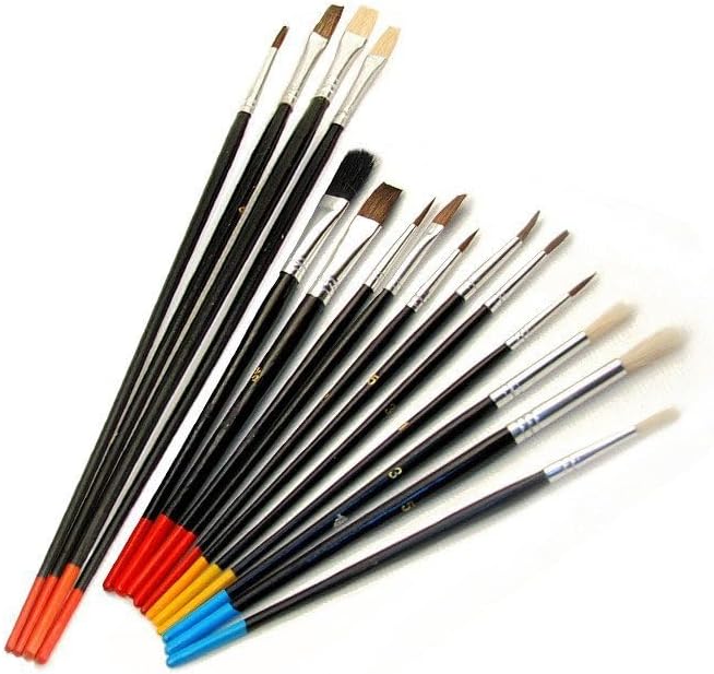 Set di 15 pennelli per pittura in blister Paletta di pittura ovale, 17 x 23 cm 9 pennelli rotondi, diverse dimensioni 6 pennelli piatti, diverse dimensioni Ergonomico, ideale per diversi colori