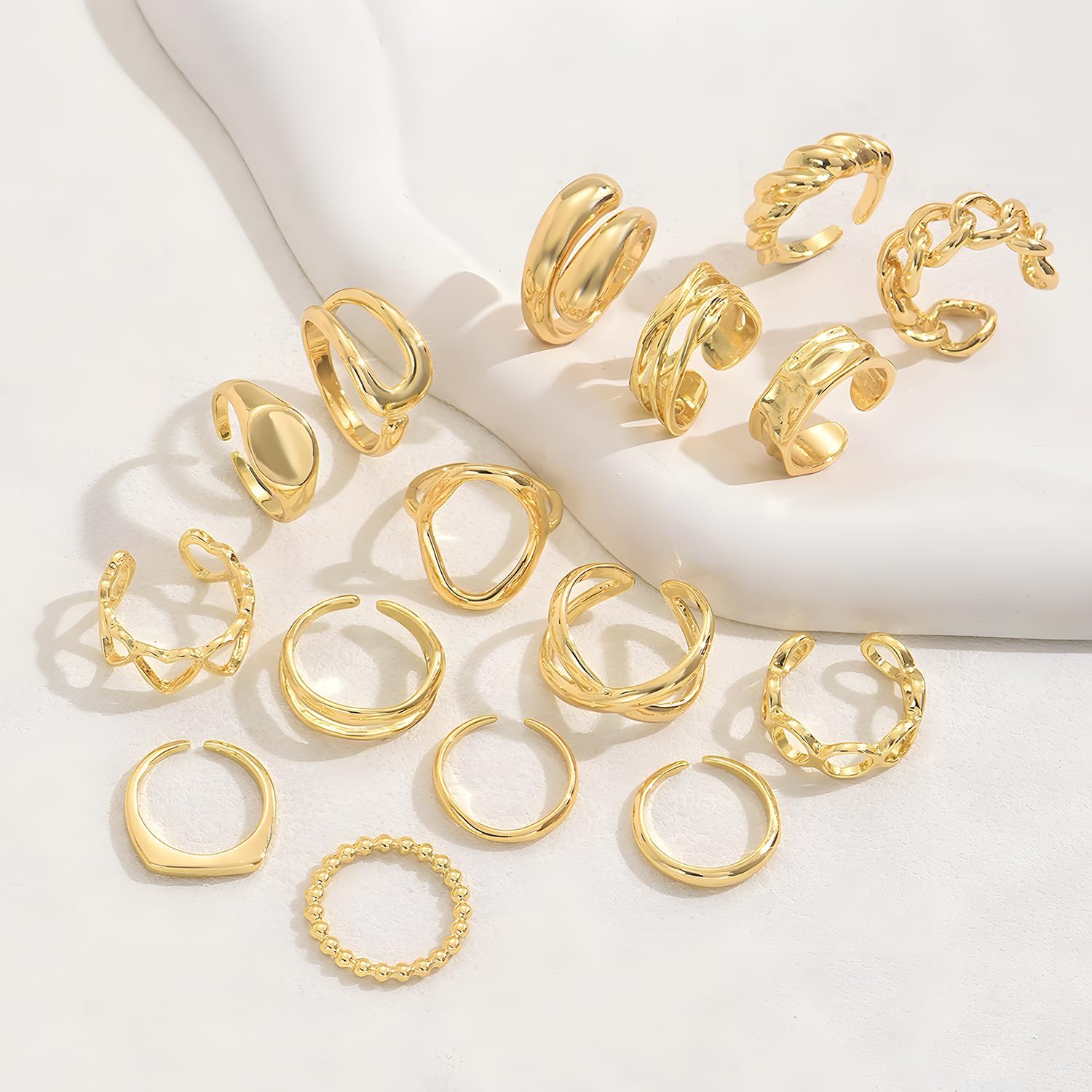 MOTIBACK - 16 pezzi anelli regolabili da donna in oro Scopri l'esclusiva collezione MOTIBACK con 16 anelli regolabili dal look elegante dorato, perfetti per il comfort quotidiano e per un tocco di stile. Ogni anello è progettato con attenzione ai dettagli e offre la massima adattabilità per una perfetta vestibilità. minimalisti o accattivanti, questi anelli impilabili si possono combinare in modo versatile e conferiscono a qualsiasi look una lucentezza speciale. nan Dettagli del prodotto: Colore: oro elegante. Diametro: 1,7 cm (vestibilità perfetta per ogni dito). ️ Peso totale: 38 g (materiali di alta qualità per chi lo indossa più esigente). Stile: 16 diversi design, da fine e sobrio a moderno ed espressivo. Perché MOTIBACK? nan I nostri anelli sono progettati per le donne esigenti che danno valore alla qualità, allo stile e alla versatilità. Ogni set combina elementi alla moda con un'eleganza senza tempo, ideale per impilare, stratificare o come solitario colpo d'occhio. I design regolabili li rendono il regalo perfetto per qualsiasi dimensione della mano. Perfetto per: Da indossare tutti i giorni. Occasioni speciali Regalo per amiche, familiari o per voi stessi. Esperimenti di stile e accenti alla moda. Nota: Gli anelli sono realizzati in materiale di alta qualità, delicato sulla pelle e sono stati accuratamente lavorati per evitare reazioni allergiche. Informazioni su MOTIBACK: Siamo sinonimo di accessori alla moda che sottolineano l'individualità e la fiducia in se stessi. Ogni prodotto MOTIBACK è progettato con dedizione e qualità testata per offrirvi un piacere duraturo. nan La vostra soddisfazione è importante per noi: Se avete domande o dubbi, non esitate a contattarci, ci occuperemo di una soluzione entro 24 ore. ️ Non perdere gli aggiornamenti! Seguici per nuovi disegni, offerte limitate e offerte esclusive. nan Ti meriti MOTIBACK – Gioielli che indosseranno il tuo stile. Aggiungete ora MOTIBACK al carrello – per un look inconfondibile e infinite possibilità!