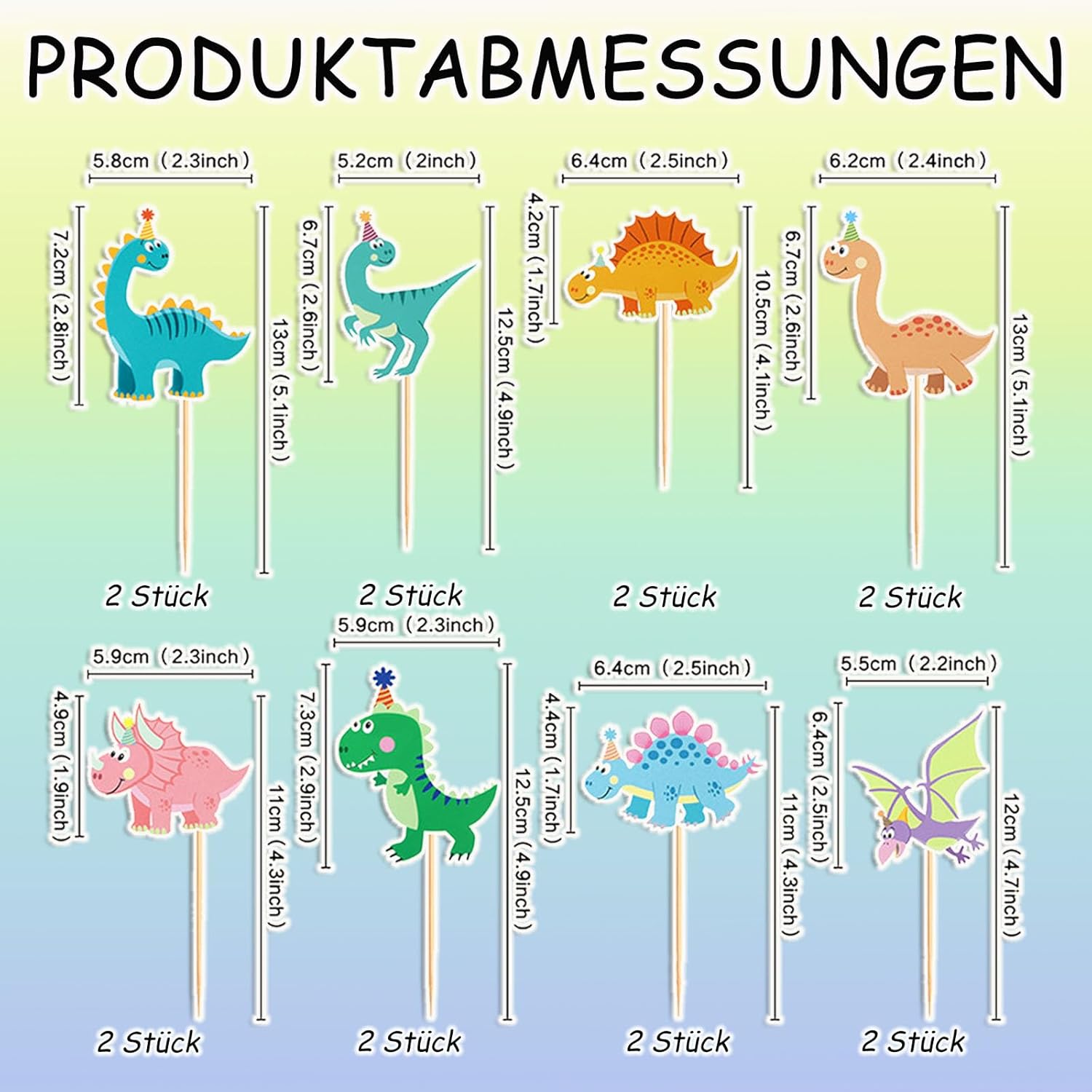 Set di 17 decorazioni di dinosauri: riceverai un set di toppers per torta. Il topper per torta con dinosauro è molto piccolo e carino, che si tratti di una torta di compleanno o di un cupcake. Materiali sicuri: cartone bianco e stecchino per stuzzicadenti, non tossici, rispettosi dell'ambiente e possono garantire che la qualità della copertura della torta abbia una lunga durata. È la scelta ideale per decorare torte e piatti di frutta. Facile da usare: basta attaccare i toppers per torta con fuochi d'artificio su bastoncini per alimenti e posizionare i toppers per torta su qualsiasi torta o pasticceria. Così tu e i tuoi amici otterrete fantastiche decorazioni per torte. Riutilizzabile: il kit di decorazioni per torte è resistente, così carino e rende facile decorare la torta di compleanno. Vengono aggiunti restauro super realistico e design di elementi carini, che è molto popolare tra i bambini Ampiamente usato - Le decorazioni sono molto adatte per fidanzamenti, matrimoni, anniversari, feste di compleanno, feste in giardino e decorazioni per la casa. È adatto per feste di compleanno per bambini, feste di Halloween, feste a tema di cartoni animati e lascia una profonda impressione sugli ospiti