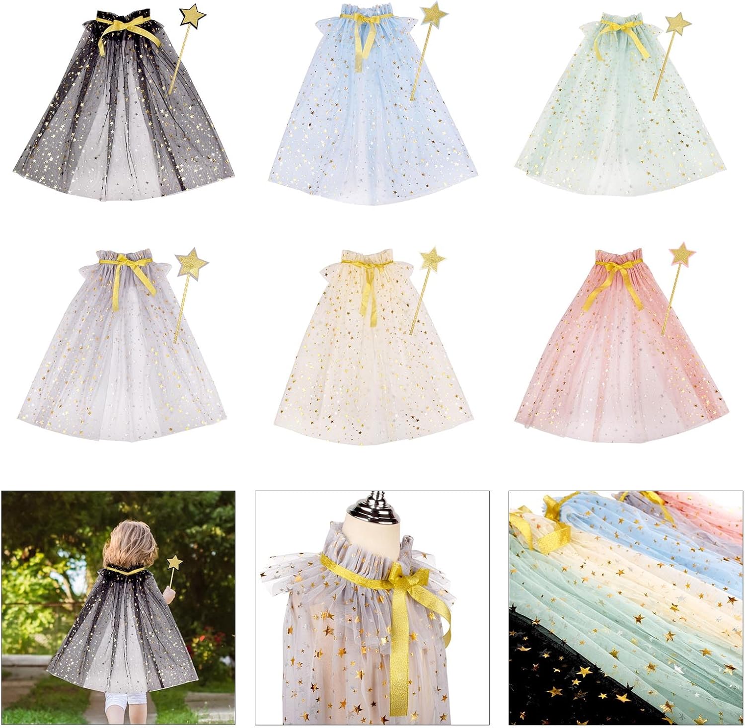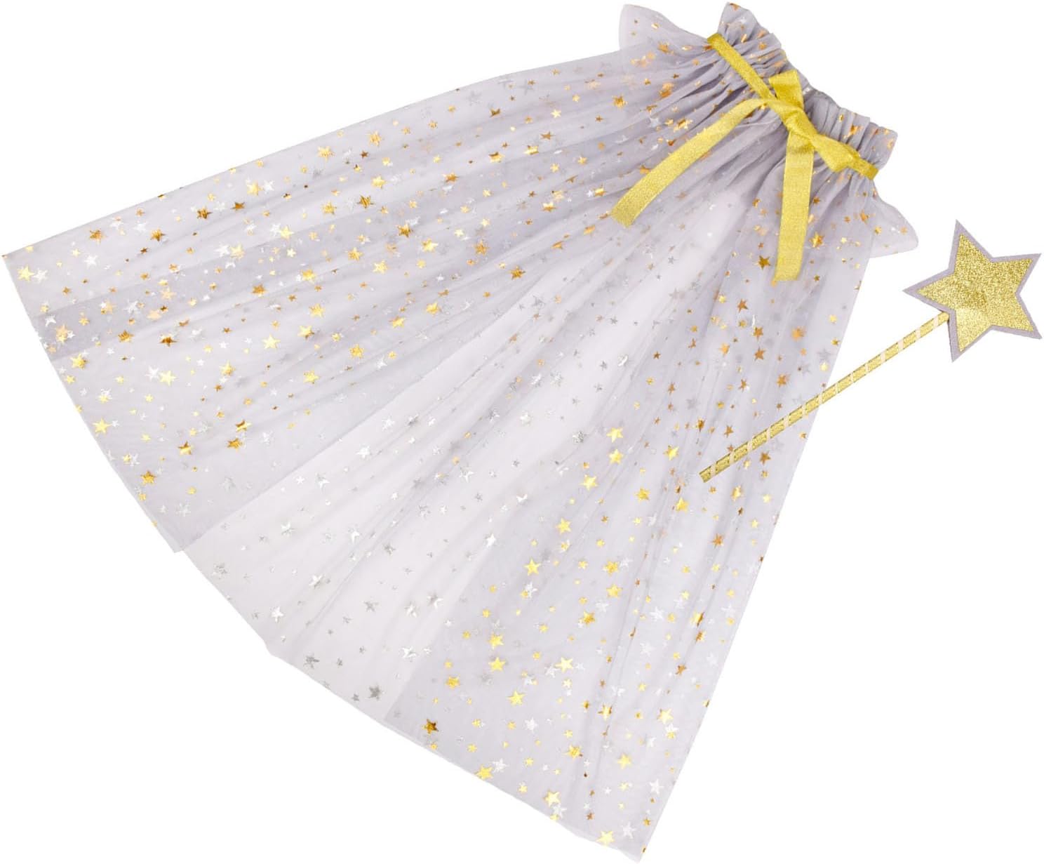 Set di 2 bacchette magiche per ragazze e un mantello in tulle, per accendere l'immaginazione Dona magia con questo set di bacchetta e mantello, un accessorio indispensabile per la collezione fantasy di ogni bambino, assicurandoti che si distinguano tra la folla in qualsiasi occasione di festival Ideale per feste di compleanno, cosplay, spettacoli teatrali o servizi fotografici, questo set di costumi promette di creare ricordi indimenticabili e momenti incantevoli Progettato per i bambini, ideale per sognatori e aspiranti fate Realizzato in tulle leggero e morbido, il mantello è decorato con stelle, mentre la scollatura regolabile garantisce una vestibilità comoda