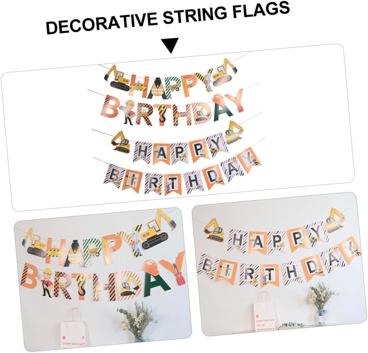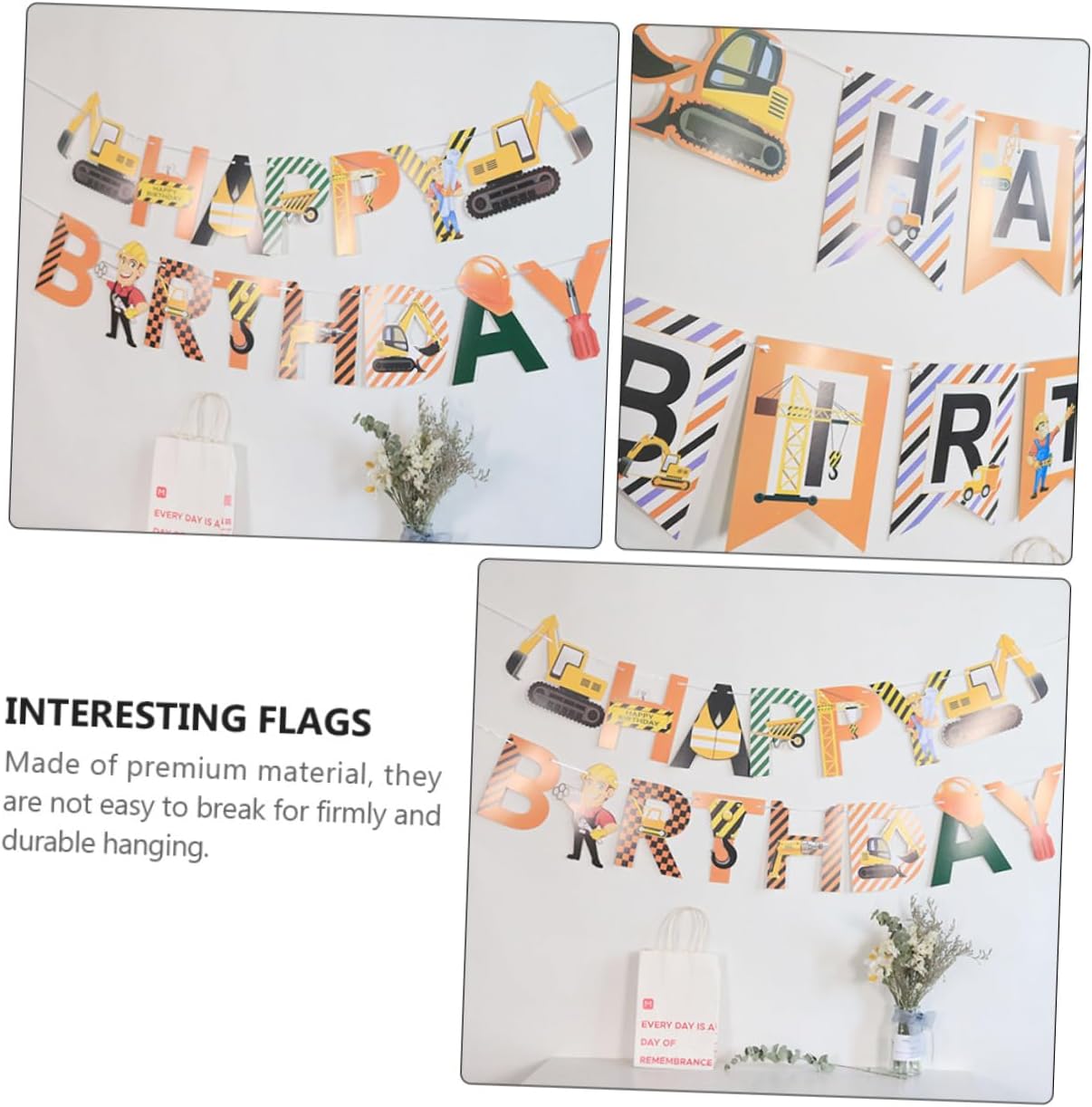 Bandiere interessanti: fatte di, non sono facili da rompere per essere fissate e appese, ornamento per autocarro con cassone ribaltabile. Ornamento per bambini: appenderlo alla finestra, giardino, agli alberi, portico, alla porta o muro, ecc., muro di compleanno. Striscione di buon compleanno: forniture per feste e decorazioni per aggiungere atmosfera alla festa di compleanno, appendere bandiere. Decorazione per feste a tema veicolo: auto da costruzione, escavatore come tema, design innovativo, preferito ragazzi, ornamenti per camion. Bandiere da appendere per compleanno: facili e comode da usare e da appendere muro, decorazioni da appendere.
