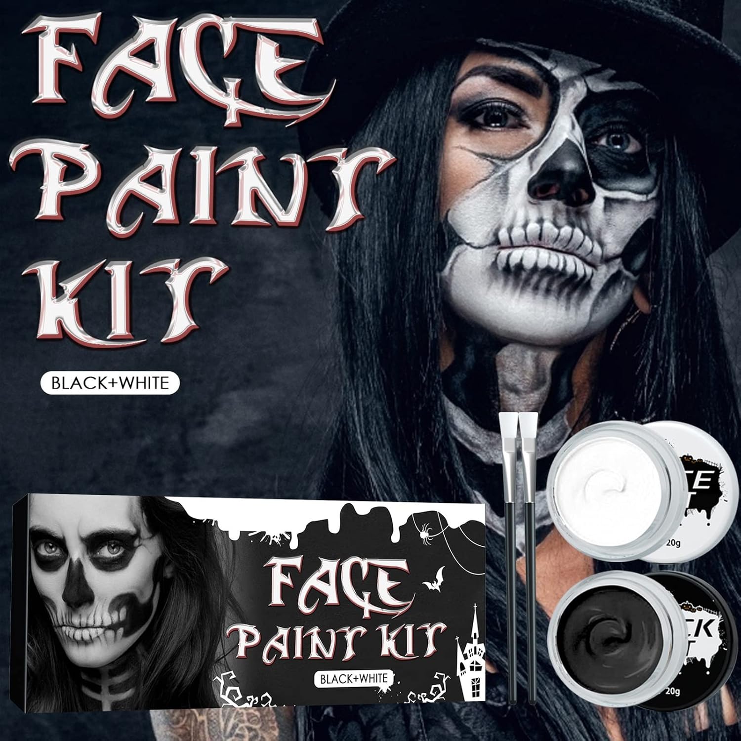 🎃【KIT DI VERNICE BIANCA E NERA DI GRANDE CAPACITÀ】Come colore di base, questo kit di trucco per la pittura del corpo del viso bianco e nero contiene una vernice bianca da clown e una vera vernice per il viso nera, che potrebbe soddisfare tutte le richieste. 🎃【CREMOSO, IMPERMEABILE E FACILE DA FONDARE】Consistenza cremosa, alta pigmentazione, colore intenso dall'ottimo rendimento, solo un po' basterà a lungo, è molto facile da sfumare senza sgualciture. Ecco un consiglio, non sarà asciutto, hai bisogno di una cipria fissante per mantenerlo senza sbavature. 🎃 【PIGMENTO BASE BIANCO NERO】 La vernice bianca e nera può essere utilizzata direttamente o mescolata con altri colori per creare i colori che preferisci. È meglio eseguire un patch test prima dell'uso. 🎃【AMPIA GAMMA DI PRODOTTI】Adatto per creare look perfetti nella vita di tutti i giorni e in occasioni speciali, come Clown, Joker, Zombie, Vampiro, Scheletro, Teschio, La Catrina, Trucco gotico al tuo prossimo carnevale scolastico, Halloween, Effetti speciali, SFX, Cosplay, Compleanno, Sport d'oro, Spettacoli teatrali, Costumi a tema, Spettacoli teatrali e altro ancora! 🎃【VEGAN E CRUELTY FREE】Totalmente vegano e cruelty free, delicato sulla pelle, adatto a tutti i tipi di pelle, fornisce un'applicazione uniforme e una copertura completa con i pigmenti di colore più puri. Non testato sugli animali.