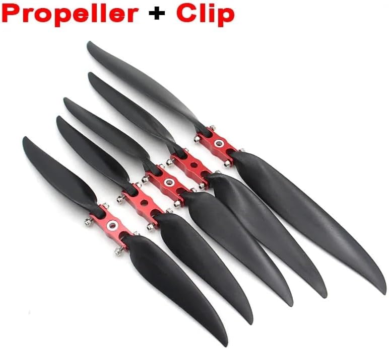 Set di 2 eliche pieghevoli e clip per pagaia rossa, morsetto adattatore 5 mm 6 mm apertura 1060 1160 RC aereo ad ala fissa fai da te (10 x 6 e clip rossa)