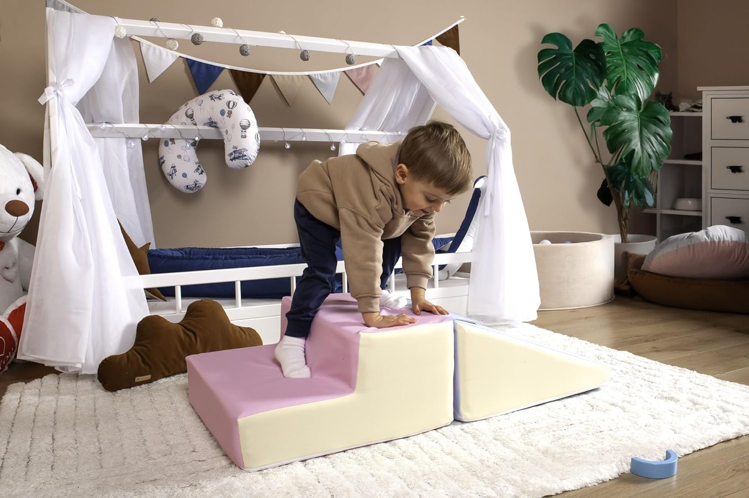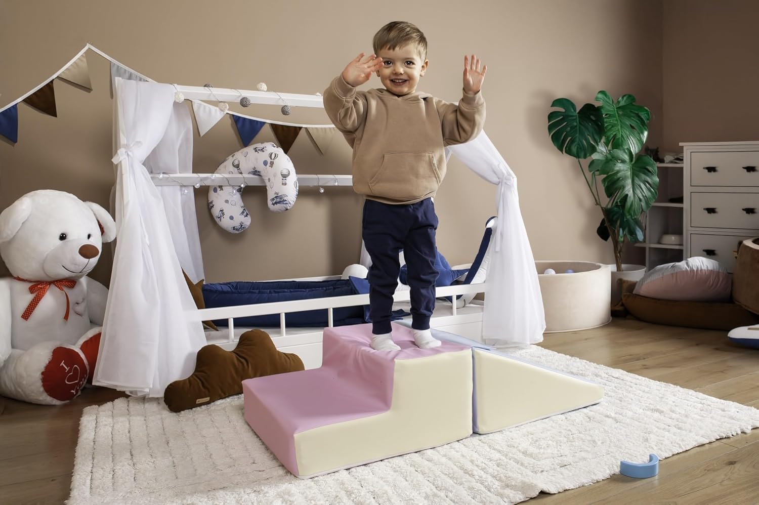Il mini set di scivoli in schiuma è composto da due blocchi di schiuma di colore diverso. I blocchi in schiuma sono perfetti per asili nido, scuole materne e sale giochi, sia durante le attività correttive o terapeutiche, sia durante le attività quotidiane, influenzando positivamente lo sviluppo complessivo del bambino. Possono essere utilizzati sia per giocare che per sedersi. Permettono la creazione di varie strutture, stimolando la creatività del bambino. Tutti gli elementi sono leggeri, morbidi e soprattutto sicuri per i bambini. Imbottitura con schiuma T-21 resistente alla deformazione, con certificato di sicurezza igienica.