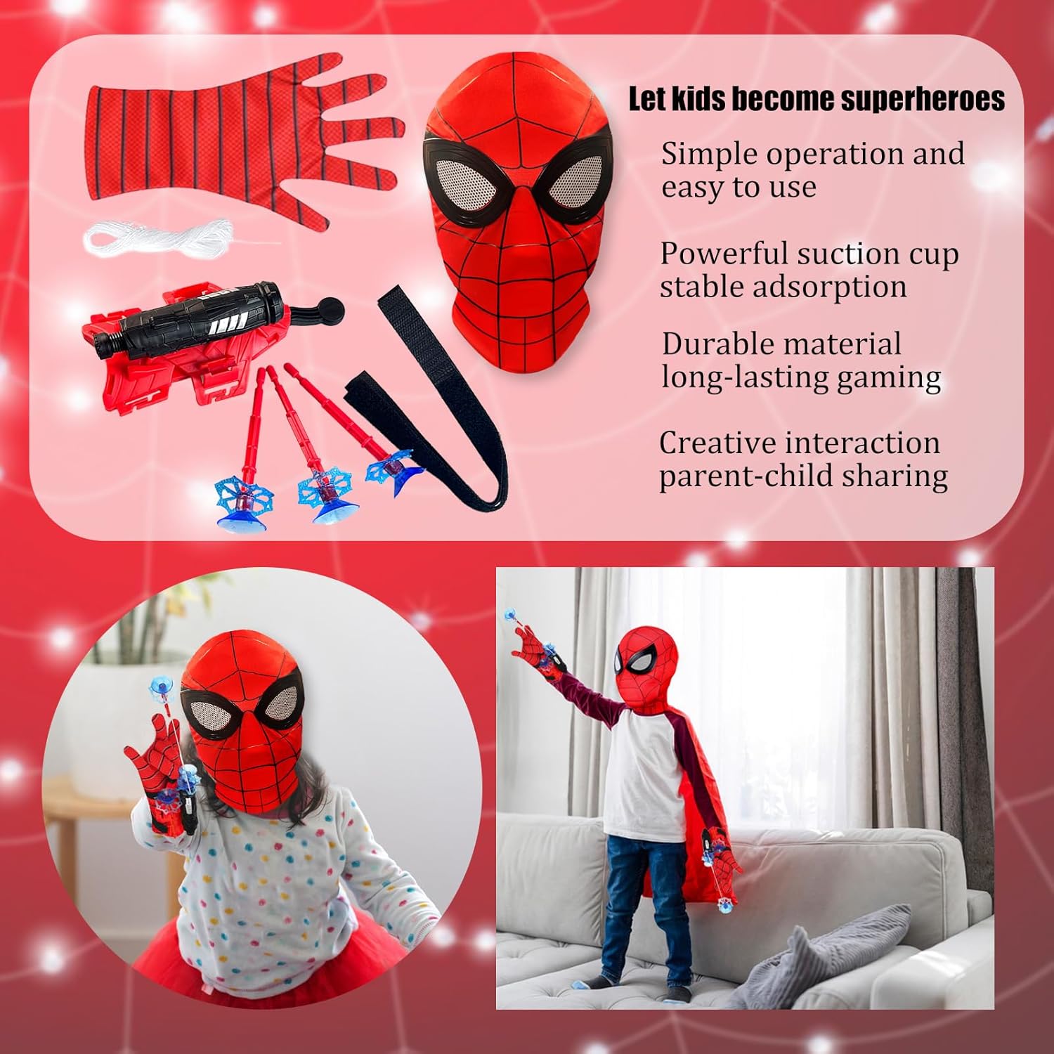 【Set di giocattoli sorprendenti】Contiene 1 maschera, 1 lanciatore, 1 guanto, 3 dardi a ventosa. Il lanciatore di ragnatele sul guanto consente di sparare ragnatele e impressionare gli amici. 【Materiali di qualità】 Il nostro lanciatore Spiderm è realizzato in plastica di alta qualità, ben realizzato e comodo da indossare, non tossico e innocuo per il corpo umano e può essere utilizzato in sicurezza dai bambini, è un giocattolo essenziale per gli appassionati del film Spiderm. 【Lanciatore di eroi】 Sentiti un eroe quando tuo figlio indossa questo lanciatore di guanti da ragno. Può aumentare l'interazione dei bambini e farli crescere felici. 【Giocattoli interattivi genitore-figlio】 - Questo giocattolo lanciatore di ragnatele per guanti da ragno per bambini non è solo un giocattolo, è una profonda connessione emotiva tra te e tuo figlio. Puoi giocare a giochi di ruolo con i tuoi figli per dare loro una comprensione più profonda del ruolo degli eroi e rafforzare l'interazione tra genitori e figli. 【Occasione adatta】 Puoi indossare il nostro guanto Spiderm per tutti i tipi di attività divertenti, ad esempio giochi di ruolo, feste per bambini, carnevale, feste di Natale, feste di Halloween, feste di compleanno, mascherate, feste a tema, ecc.