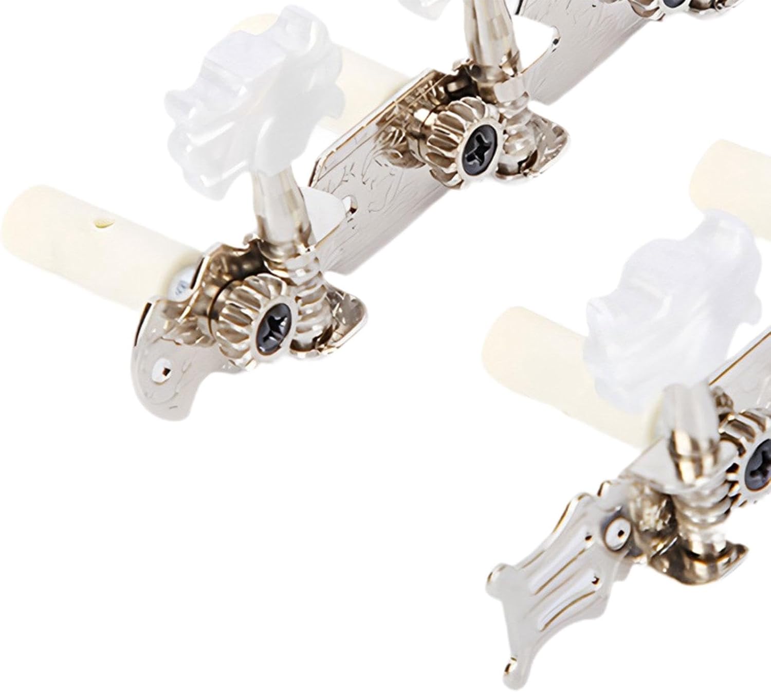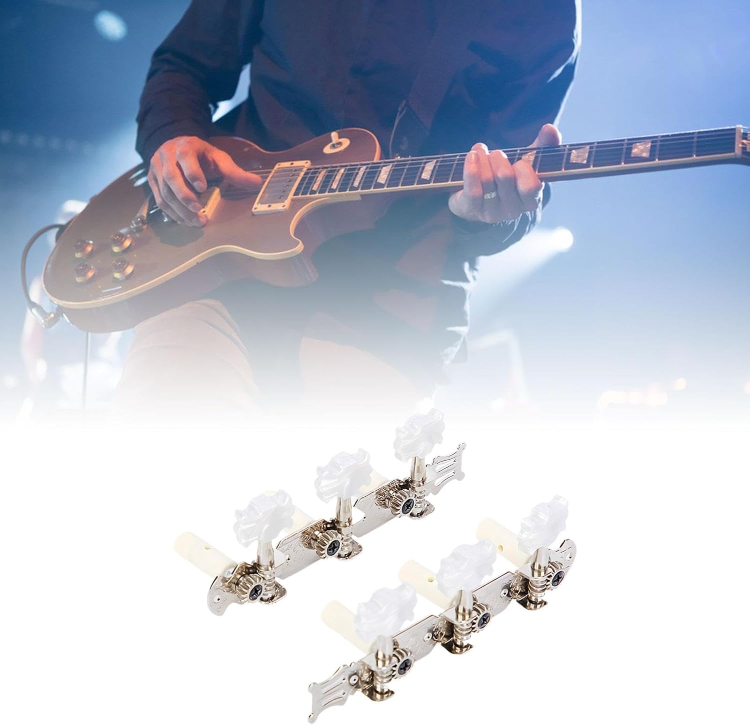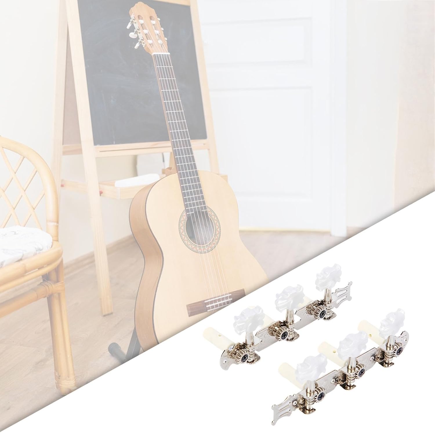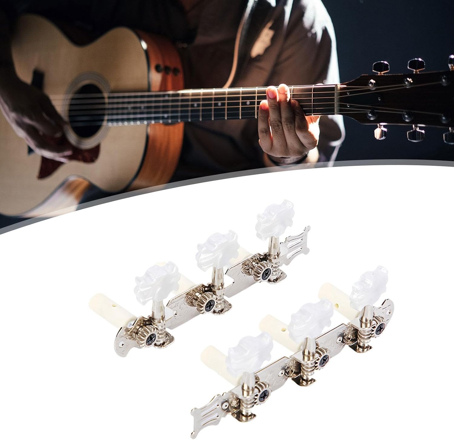 【Accessori di ricambio】: piroli per corde di chitarra, ideali per sostituire piroli vecchi e sporchi, ideali per accordare la chitarra 【Pacchetto】: tre palette sono disposte in fila, con due manopole per corde di chitarra, una per la mano sinistra e l'altra per la mano destra 【Versatilità】: questi accordatori per chitarra sono adatti per chitarre classiche e sono una scelta versatile per gli amanti della chitarra
