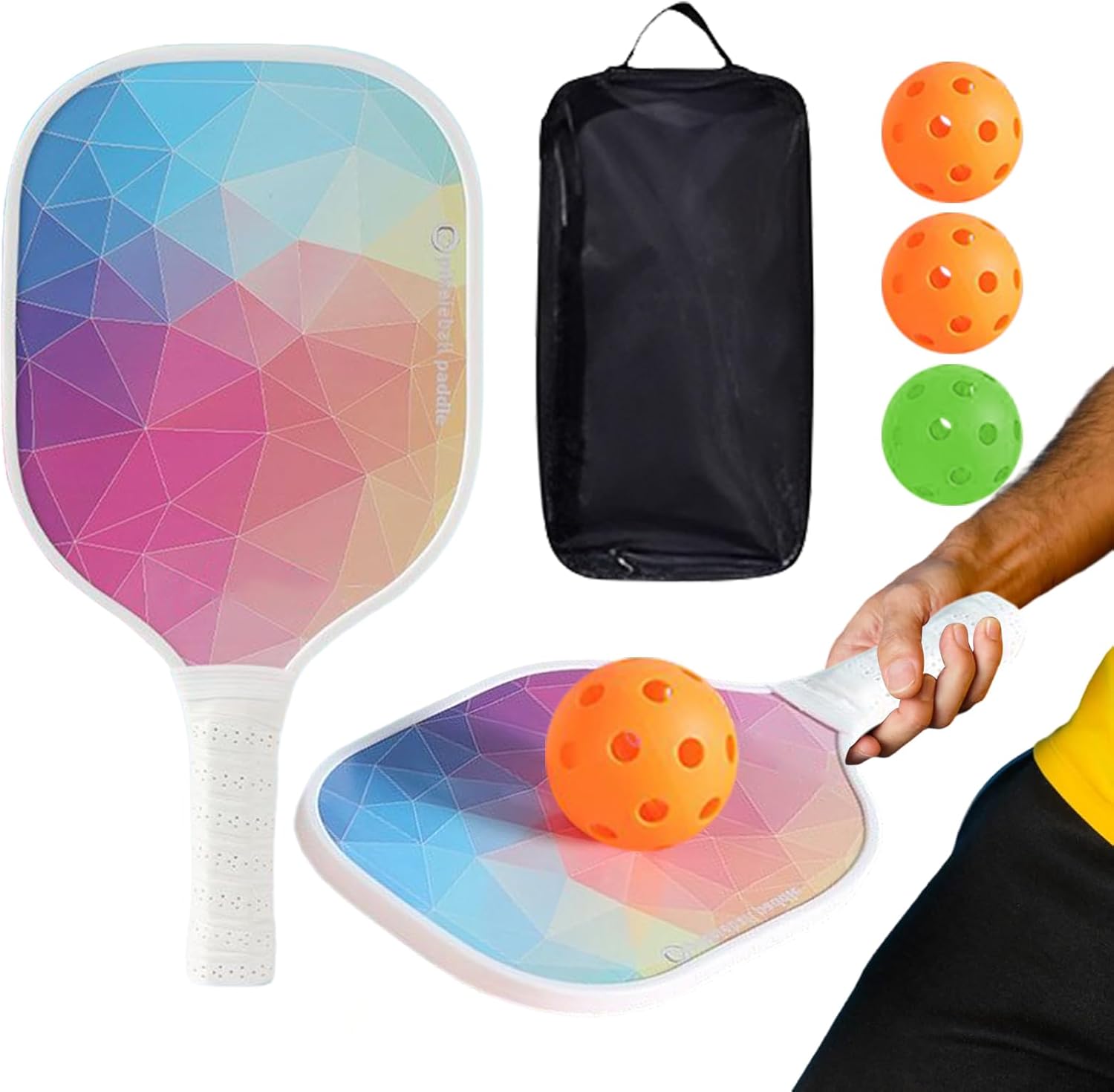 Maggiore durata: pagaia con 7 strati per prestazioni durature, rimbalzo stabile e protezione dei bordi in PVC ispessita per un uso intensivo nell'allenamento quotidiano Organizzazione pratica: la tasca portaoggetti per paddle e palline standard garantisce una facile conservazione e un facile trasporto. Perfetto per giochi ricreativi o competizioni in parchi, scuole e altri ambienti. Aumenta l'esperienza di gioco: la struttura ergonomica della racchetta supporta un funzionamento semplice per ogni abilità, accelera il progresso dell'apprendimento e crea gioia condivisa nella cerchia familiare o nel gioco della squadra, rafforzata da un'azione vivace con forte rimbalzo Riduzione della fatica: la tecnologia dell'impugnatura antivibrante riduce al minimo l'affaticamento della mano durante le partite lunghe. Promuove colpi più precisi in partite temporanee grazie a una migliore distribuzione della forza Tenuta e resistenza costanti: l'impugnatura testurizzata antiscivolo migliora il controllo e il comfort, riduce l'affaticamento della mano durante i giochi lunghi, supportato da cuciture rinforzate ad alta densità e superfici in PU stabili che resistono all'usura da sudore e abrasioni