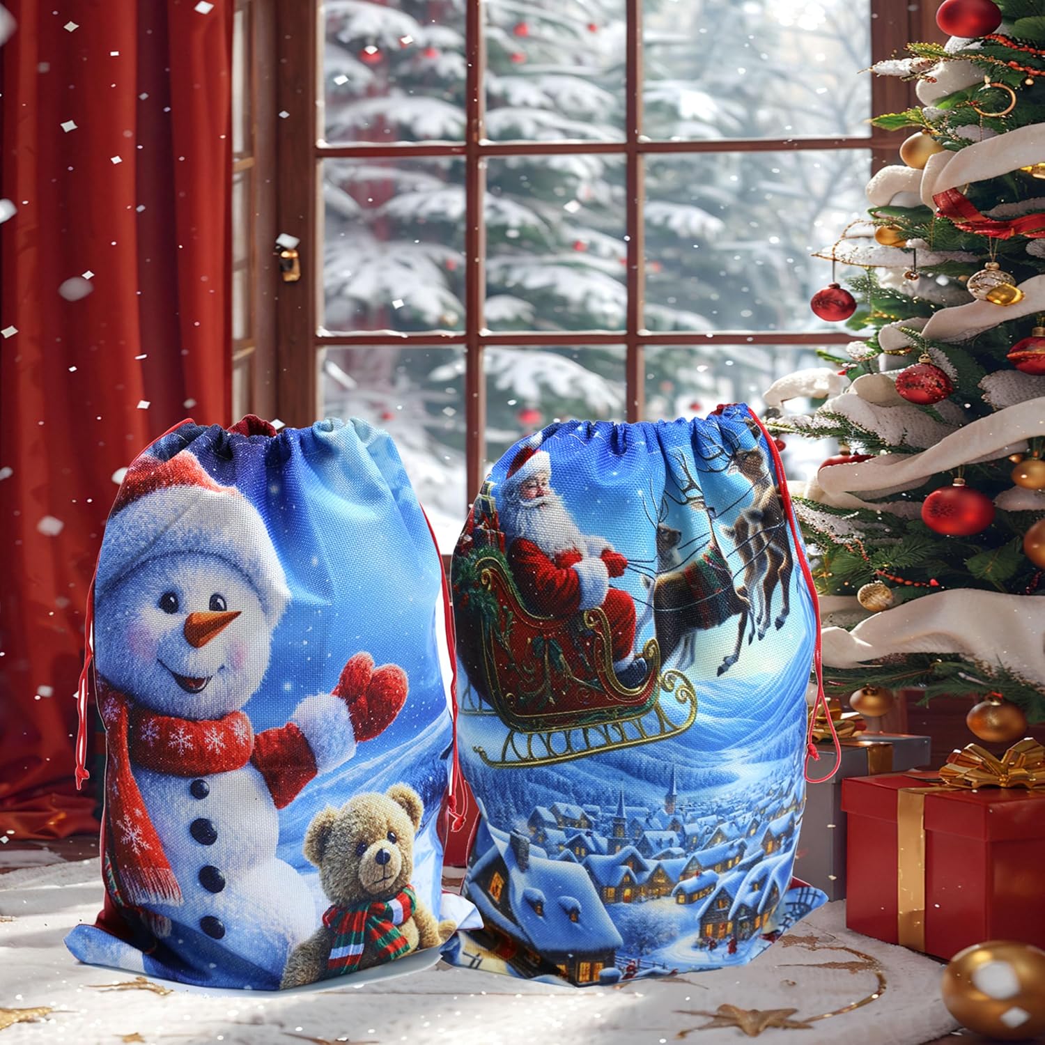 DIMENSIONI SPAZIOSE E GENEROSE - Ogni borsa natalizia misura 50x70 cm, offrendo ampio spazio per regali di tutte le forme e dimensioni. Perfetto per contenere di tutto, dai giocattoli ai vestiti, dai dolcetti alle decorazioni per le feste. MATERIALE DUREVOLE E RIUTILIZZABILE - Ogni borsa è realizzata in finta tela di alta qualità per un aspetto rustico e tradizionale. Questi sacchetti regalo sono robusti ed ecologici. Usali anno dopo anno per una celebrazione delle vacanze duratura. COMODA CHIUSURA CON COULISSE - Dotato di un cordoncino facile da usare per un imballaggio rapido e una chiusura sicura. Mantieni i regali nascosti e festosi fino al momento di rivelarli! DISEGNI A TEMA DI NATALE – La confezione include due adorabili design: la slitta di Babbo Natale e l'orso pupazzo di neve. Questi classici design natalizi aggiungono un tocco allegro a qualsiasi stanza e rendono i regali ancora più speciali. UTILIZZO VERSATILE PER LE VACANZE - Oltre ad essere eccezionali sacchetti regalo, servono anche come deliziose decorazioni natalizie. Usali come affascinanti soluzioni di archiviazione, basi per alberi di tendenza o allegri accenti decorativi in tutta la casa.