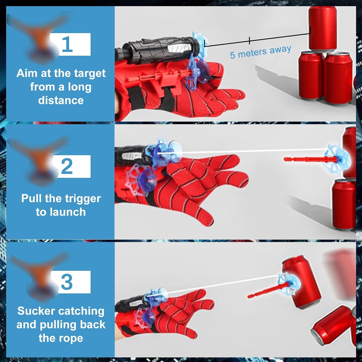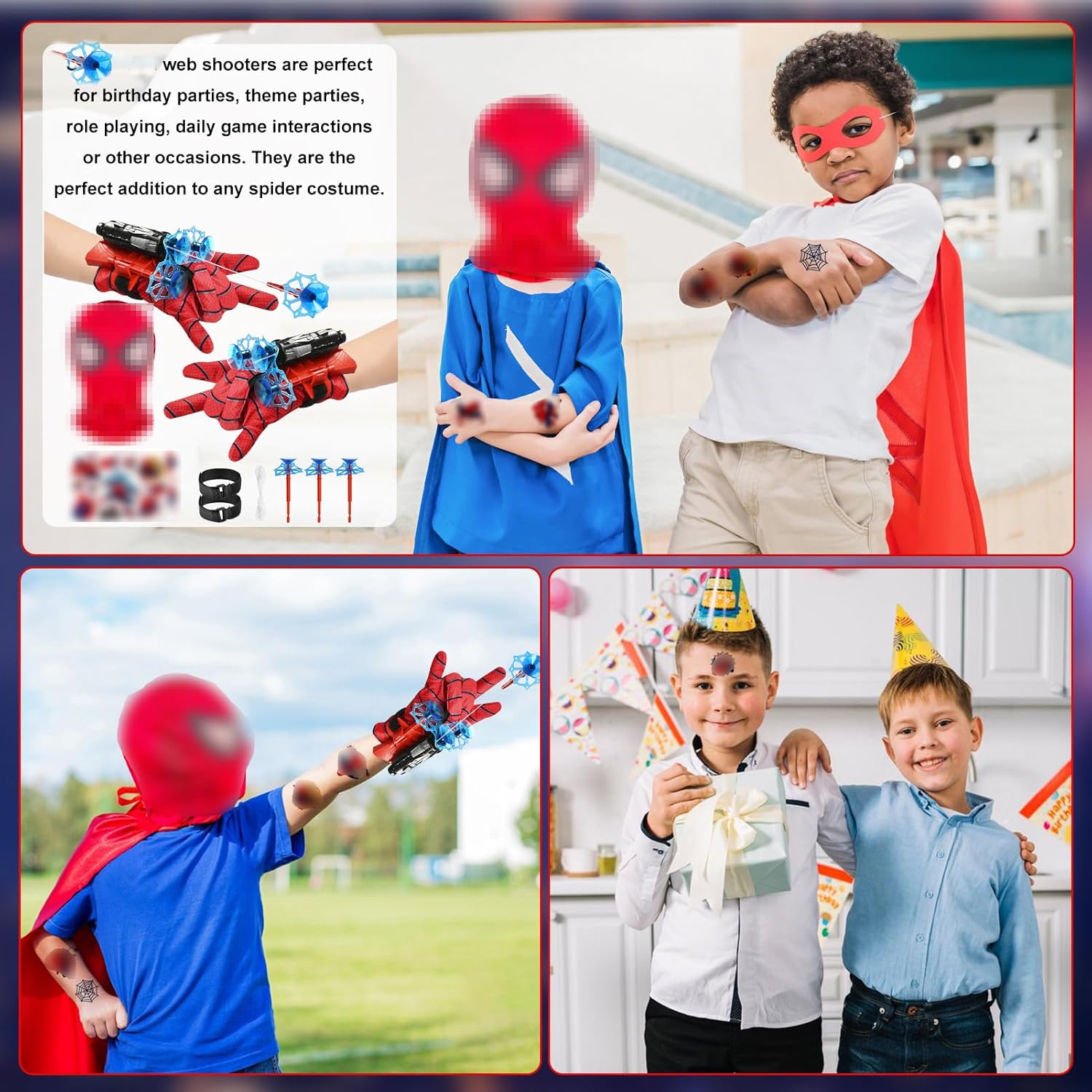 Supereroe a portata di mano: Il set spid-er guanti bambino include 2 spara ragnatele spid-er, 2 guanti spid-er launcher glove, 1 maschera, 3 dardi, 2 tatuaggi e 2 corde. Con questo spid-er giocattolo, vivi vere avventure da eroe ogni giorno Materiali sicuri e durevoli: I guanti spid-er launcher glove sono realizzati in plastica leggera e resistente, adatta all'uso quotidiano. Questo spid-er giocattolo è comodo da indossare anche a lungo. Spid-er guanti bambino in materiale delicato sulla pelle, ideali per piccoli eroi Facile da usare: Basta fissare il dardo sul spara ragnatele spid-er, legarlo e sparare! Ogni bimbo può diventare un eroe con il suo spid-er giocattolo. I guanti spid-er launcher glove rendono ogni gioco realistico, rendendolo uno dei migliori spid-er giochi Gioco in famiglia: Condividi momenti speciali con il tuo piccolo eroe grazie al spid-er giocattolo. I spid-er guanti bambino sono ideali per giochi di ruolo e avventure in famiglia. I guanti spid-er launcher glove rafforzano il legame tra genitori e figli nei spid-er giochi Regalo perfetto: I spid-er guanti bambino sono ideali per feste, Halloween o Natale. Ogni giorno diventa una missione eroica con il spara ragnatele spid-er