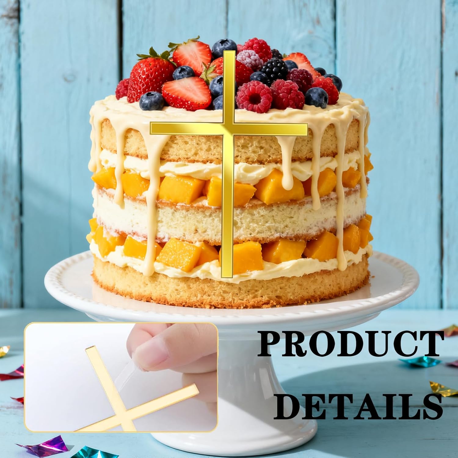 Configurazione speciale: set di 2 croci d'oro: il set contiene solo due croci d'oro di alta qualità, perfette per decorazioni di torte mirate ed eleganti per battesimi, comunioni, matrimoni, feste di compleanno e il giorno di Natale. MATERIALE ACRILICO PREMIUM CON ASPETTO ORO: Realizzata in acrilico resistente e brillante, ogni croce fornisce un lussuoso effetto dorato che aggiunge immediatamente un carattere festoso alle torte, durevole e stabile per un posizionamento sicuro. Versatile come cake topper e cake topper: le croci dorate possono essere utilizzate in modo flessibile come cake topper o cake topper, si adattano a diversi stili di torte (bianche, colorate) e sono adatte per feste di ragazze e ragazzi. Facile da pulire e riutilizzare: dopo la festa, basta pulire la decorazione con un panno umido - Ecologico ed economico, ideale per un uso ripetuto in future occasioni speciali. Adatto per decorazioni dorate per la Cresima e occasioni festive: il colore dorato è perfetto per feste di Cresima e altre occasioni festive, trasforma la tua torta nel momento clou della festa e suscita reazioni positive da parte degli ospiti.
