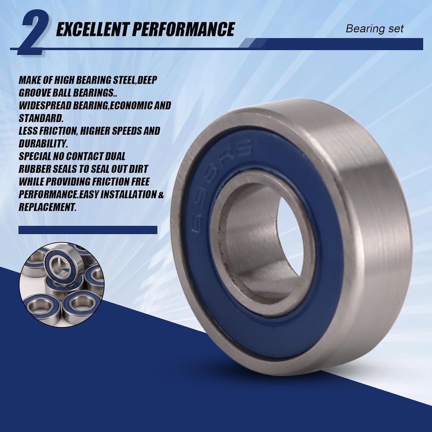 Cuscinetto ampiamente usato, economico e standard. Meno attrito, velocità più elevate e durata. di acciaio ad alto cuscinetto, cuscinetti a sfere profondi. 100% e durevole. Speciali guarnizioni in gomma doppia contatto per sigillare lo sporco fornendo prestazioni attrito. Facile installazione e sostituzione.